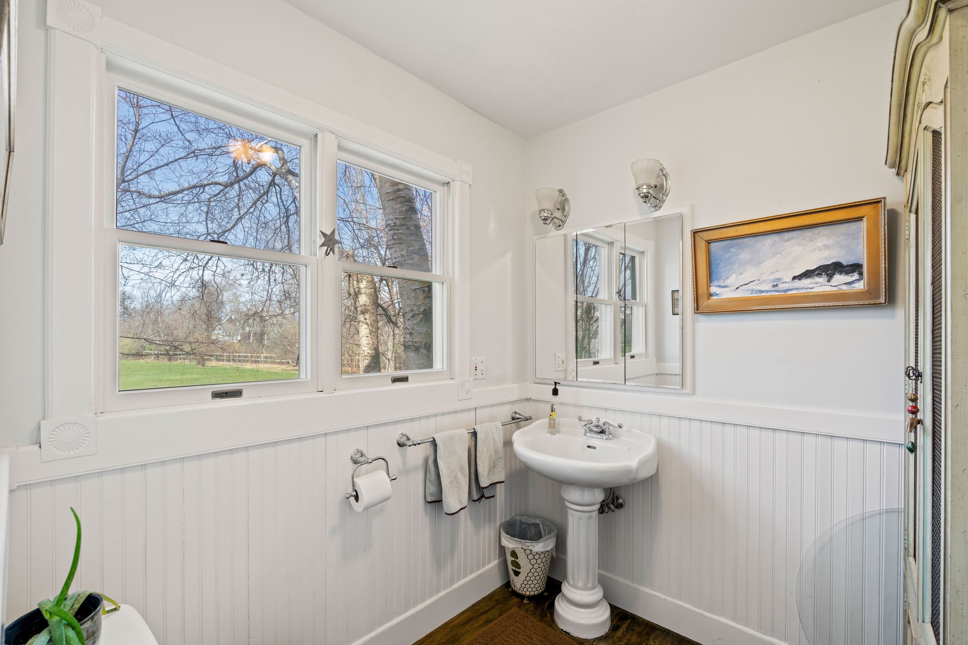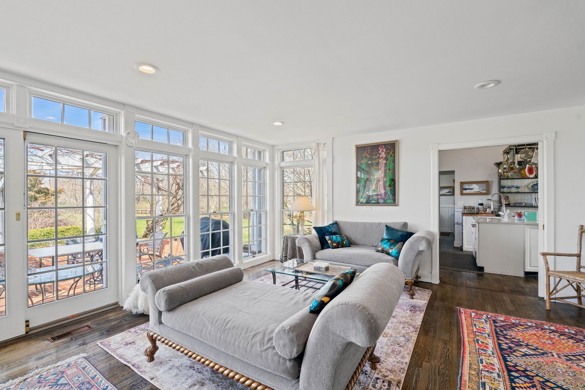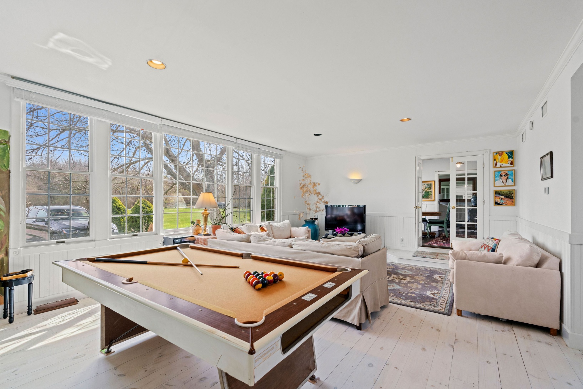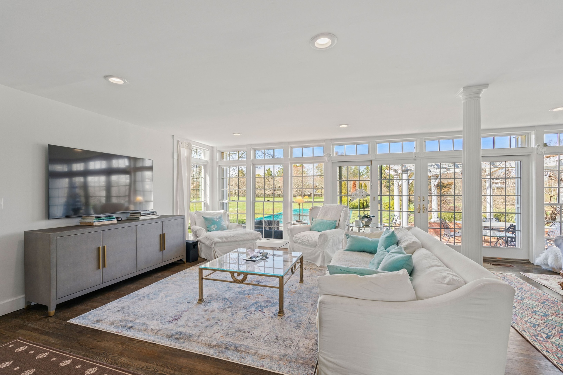 Beautiful horse country location, close to village, offering 4 private acres. Well-appointed family home with 4 bedrooms, 3 full baths, 2 half baths, new kitchen, large living spaces, and central air. Exterior amenities include a huge barn for sports and gym, as well as a heated 20×40 pool.