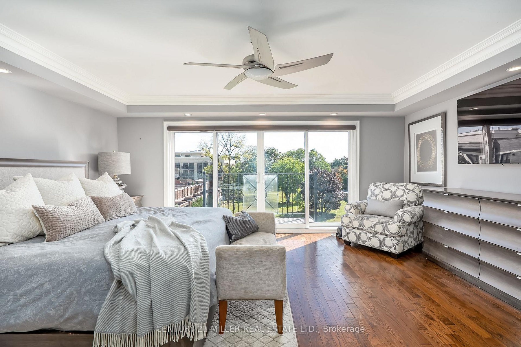 Step into this exceptional freehold townhome, offering nearly 3,400 sq ft of comfort, style + convenience with 3 beds + 2.5 baths. A meticulously appointed home a short stroll to downtown Oakville + the shores of Lake Ontario. Double car garage, private elevator, two rooftop terraces w/hot tub + lounge + generous outdoor entertaining space, this sophisticated residence is sure to impress.The sun-filled main level features hardwood floors, high ceilings + a clever floor plan w/both a formal dining room + a contemporary open-concept eat-in kitchen + great room. The custom kitchen includes white quartz counters, central island w/seating + ample storage. The spacious great room offers a cozy fireplace feature wall + expansive glazing w/sliders that open to the rear terrace. This south-facing terrace is a private escape, ideal for al fresco dining or relaxing with friends+family.The second level offers two generously sized bedrooms - one with a Juliette balcony + ample storage, perfect as a home office; the other with expansive glazing + a walk-in closet. A stylish main bathroom + laundry complete this floor. The primary spans the entire third level, offering a luxurious private haven. The bedroom is oversized, w/two dressing rooms + a spa-like bathroom that feels hotel-worthy: it really is a private retreat. The lower level features high ceilings, a versatile gym or rec room with chic fireplace, mudroom + direct garage access. A private elevator connects every levelincluding the rooftop terrace with hot tub. With parking for four vehicles, convenience abounds for both residents + guests alike. Outside your door lies a vibrant neighbourhood waiting to be explored. Take a stroll to trendy Kerr Village or downtown Oakvilles lively bistros + charming boutiques. The lake + marina are just minutes away + offer endless adventure. This is highly walkable location & a tremendous lifestyle opportunity.