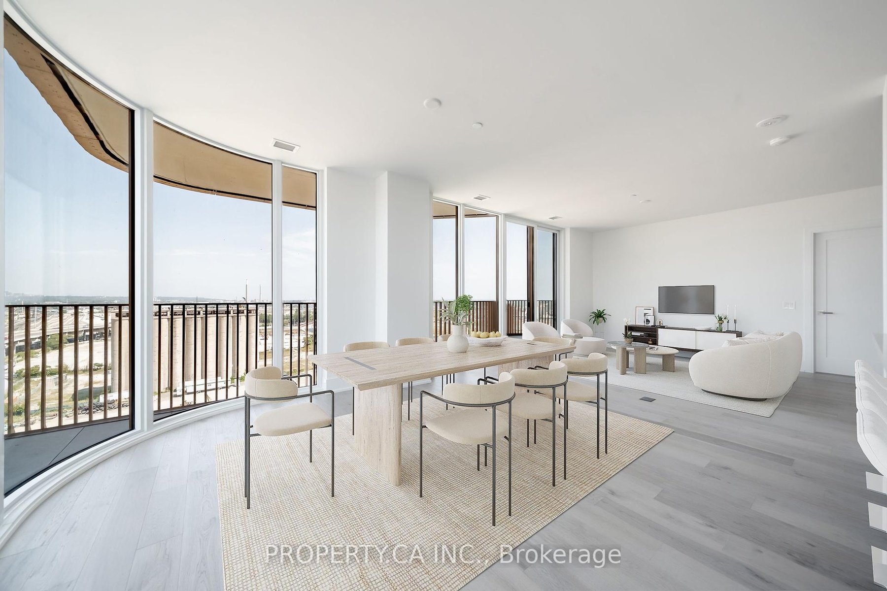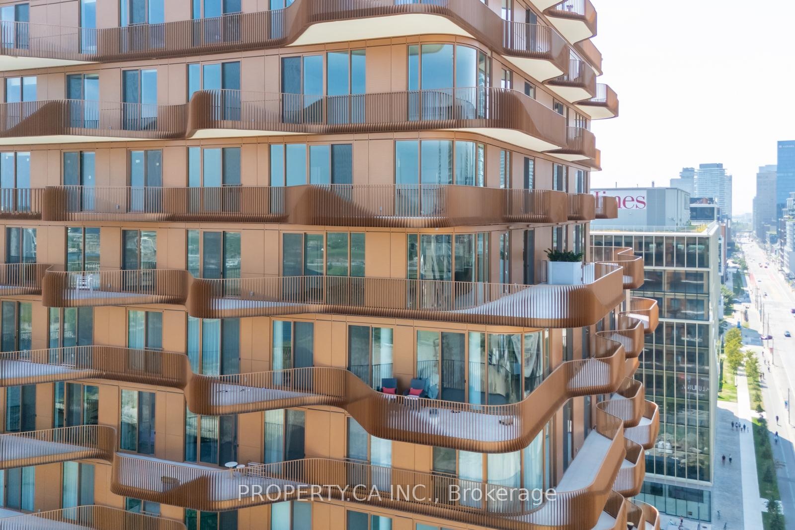 Welcom to the Astounding Aqualuna, the 4th building and final opportunity to live in the highly sought-after Bayside Toronto community, the Pinnacle of luxurious waterfront living. Designed by renowned Danish architects 3XN, Aqualuna's bold balconies, sweeping terraces, and striking architecture is a waterfront showpiece and has become a signature landmark on Torontos skyline. This Breathtaking suite offers 1465 sq. ft. of interior space, paired with a 455 sq. ft. private terrace with a gas connection for BBQ. Outstanding luxury with Soaring 10 ft. smooth ceilings, wide rich-wood plank floors, and luxury Miele appliances with a large island. The split-bedroom layout ensures privacy, with both bedrooms featuring their own ensuites with heated floors, walk-in closets and balconies. One owned parking space with EV Charging and Locker is included. Aqualuna offers first-class amenities: a state-of-the-art fitness centre, yoga/stretch studio, outdoor pool, rooftop patio, entertainment and games rooms, steam rooms, and guest suites. East Bayfront Community Recreation Centre with basketball, pickleball, table tennis, running track and much more...Lake Ontario, Sugar Beach, Distillery District, St. Lawrence Market, LCBO, Loblaws, and Queens Quay, with easy access to the DVP and PATH. Condo Fee Includes Internet.********THIS IS NOT AN ASSIGNMENT SALE********* some Images are virtually staged.