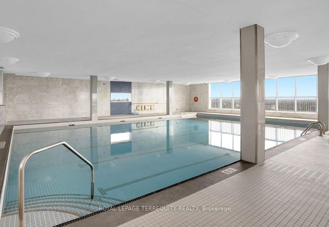 Exceptional corner unit with 3 piece ensuite and 3 piece main washroom located in this fabulous building, This Unit has been upgraded and shows like a model home, Friedrich Air Conditioner in living room window (no drip unit) The Kitchen has granite counter tops and Stainless Steel appliances, Porcelain tiles in the main bathroom, The glass shower has a built-in Solid Teak Seat, Access to Subway through private gate. Fabulous South West Balcony to sit and enjoy the view, Building offers indoor pool, Sauna & Party Room, TV Security System
