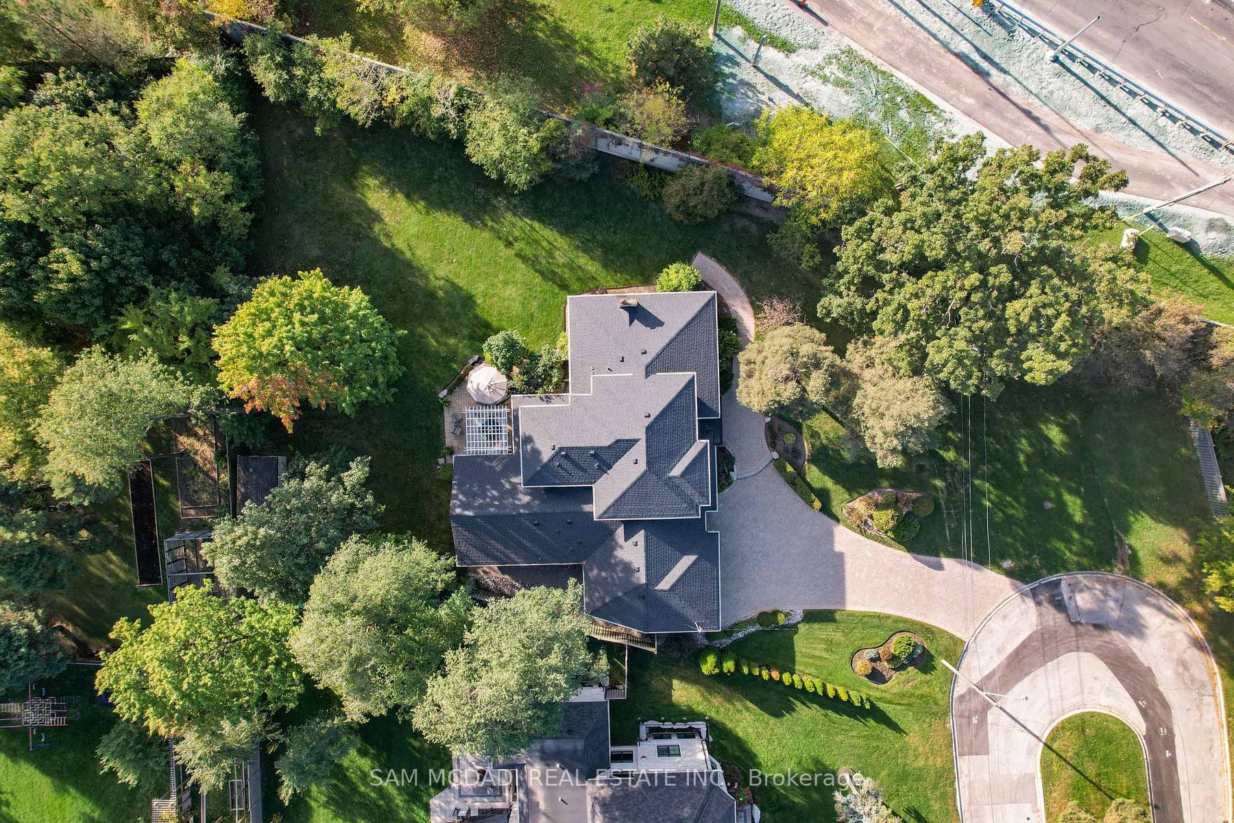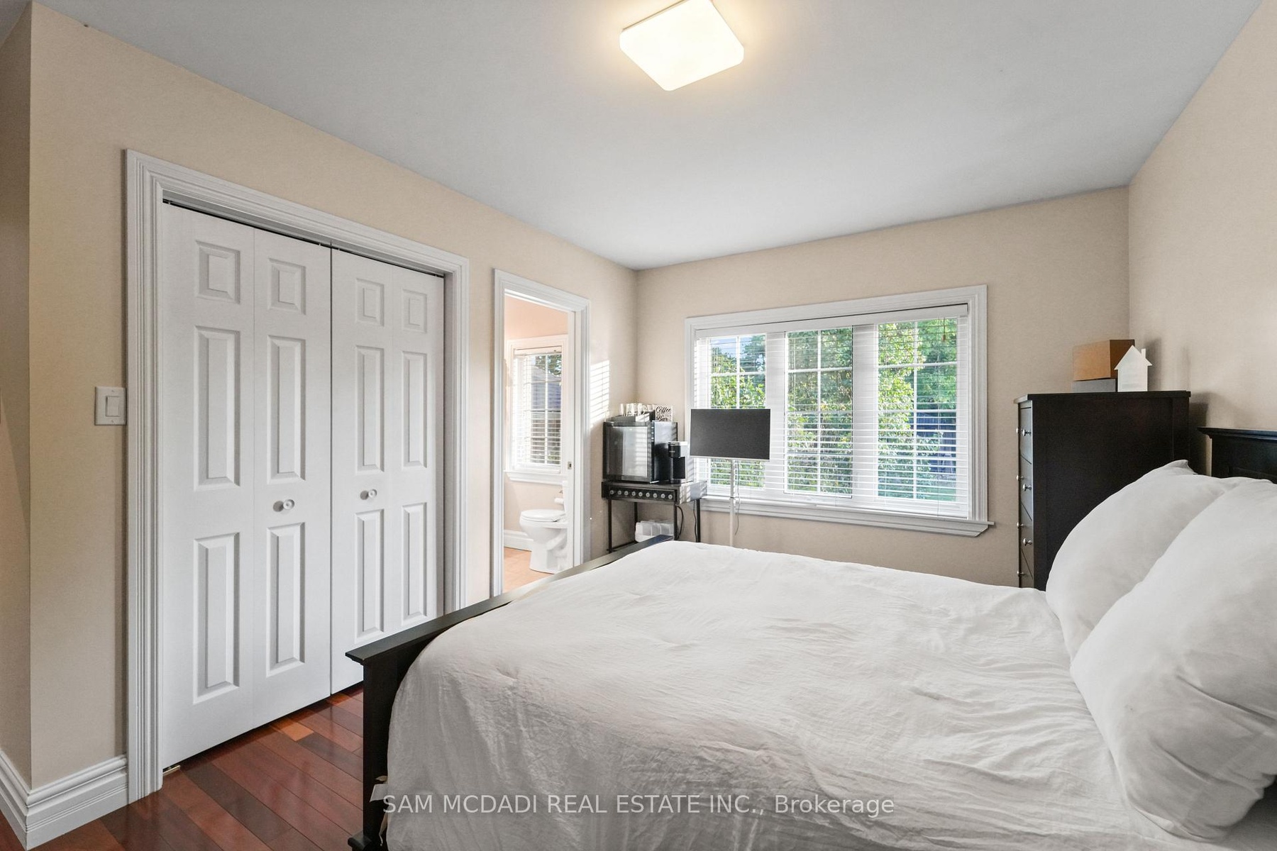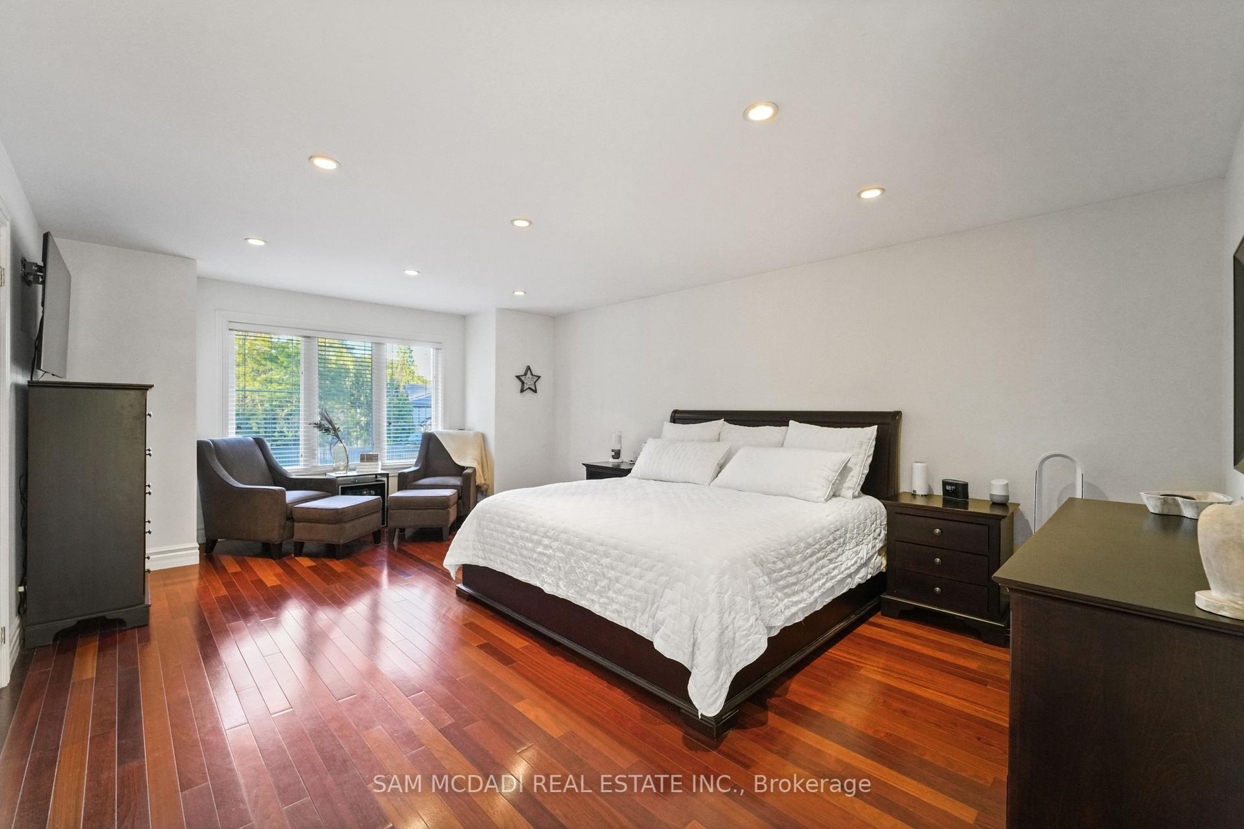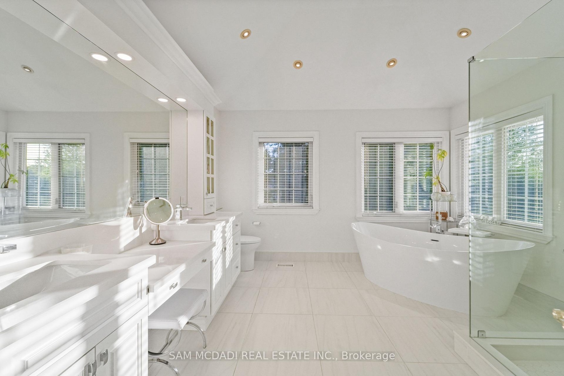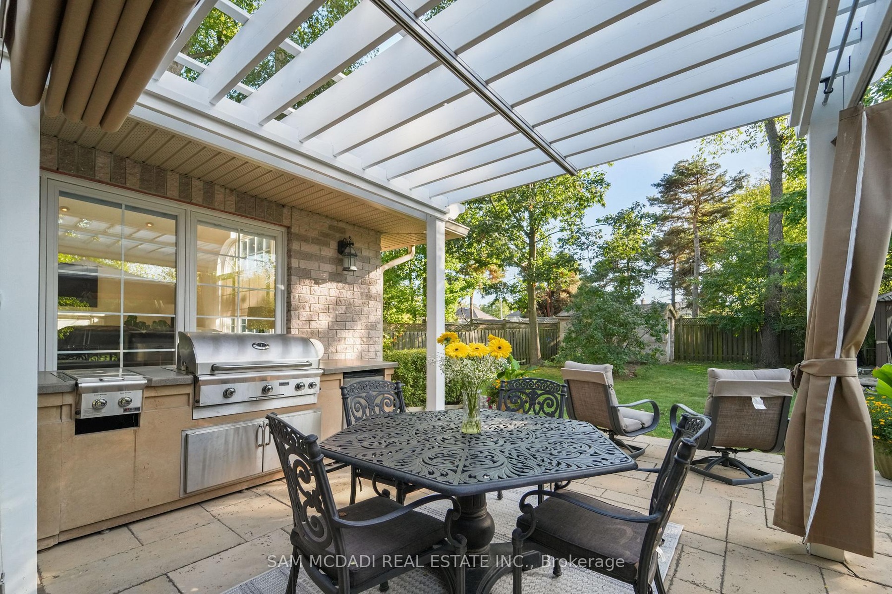 Welcome to 724 Atoka Drive, a rare offering in prestigious Lorne Park, tucked quietly at the end of a private cul-de-sac. This residence boasts nearly 4500 SF and rests on a sprawling half-acre lot with a landscaped pond, cascading water feature, and multiple outdoor living zones designed for both entertaining and quiet retreat. As you enter, soaring 9' - 15' ceilings and oversized windows flood the home with natural light. The main floor features formal living and dining rooms with rich hardwood floors, a cozy family room with gas fireplace and vaulted ceilings, a bright home office, and a gourmet granite kitchen with stainless steel appliances, custom cabinetry, and an expansive island, perfect for hosting or everyday living.Above, four spacious bedrooms await, including a luxurious primary retreat with pot lights, large walk-in closet, and a spa-inspired ensuite featuring heated floors, dual vanities, glass shower, and a freestanding tub. The three additional bedrooms include ensuite / semi-ensuite access and ample closets, promising privacy and comfort.The finished lower level provides a versatile rec room, fitness area, and a private bedroom with ensuite ideal for guests, in-laws, or teens and a separate entrance.Outdoors, enjoy a covered patio, fire pit lounge, hot tub cabana, and open lawns where children can play. The tranquil pond and mature trees create a private, resort-like atmosphere. Yet, just minutes away are the winding trails of Rattray Marsh, lakeside sunsets at Jack Darling Park, boutique dining in Port Credit Village, and quick QEW/GO access for effortless downtown commute.