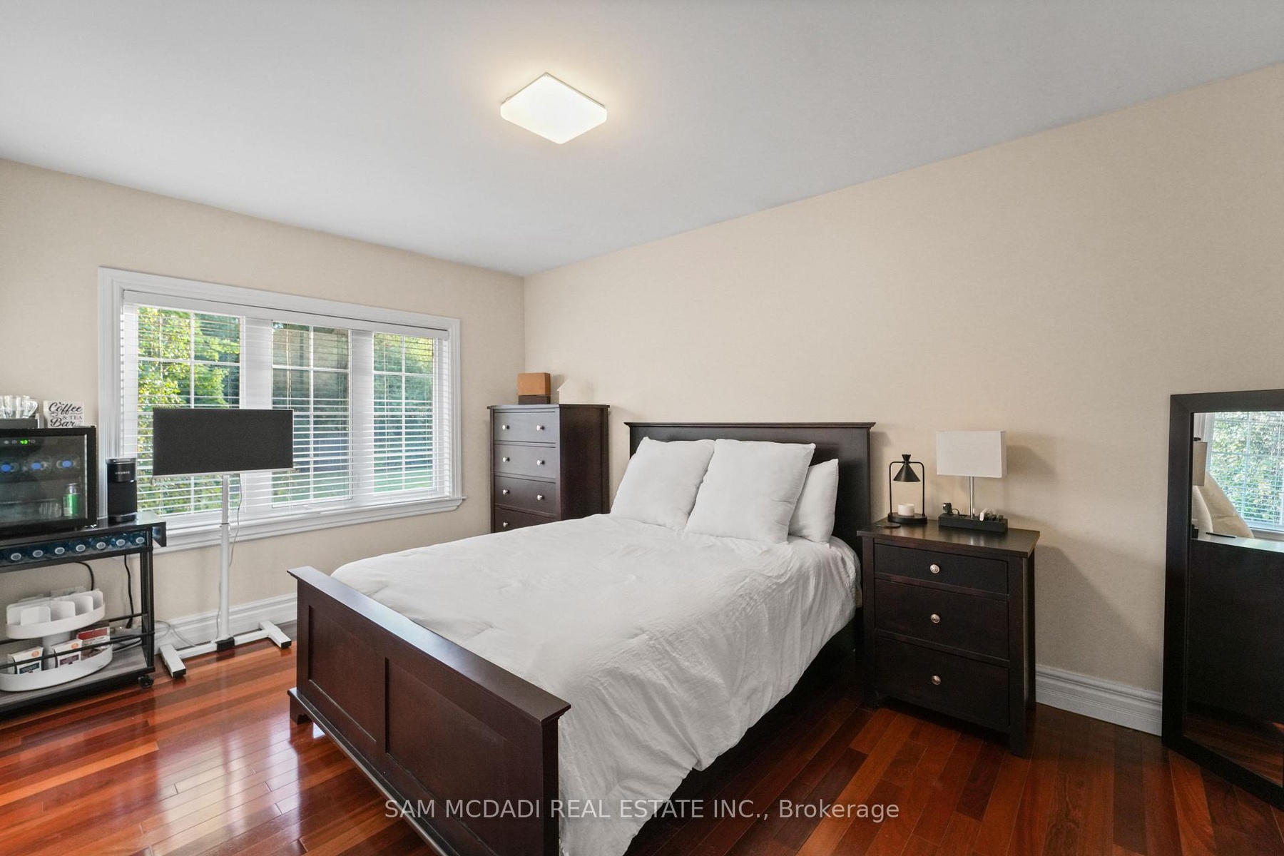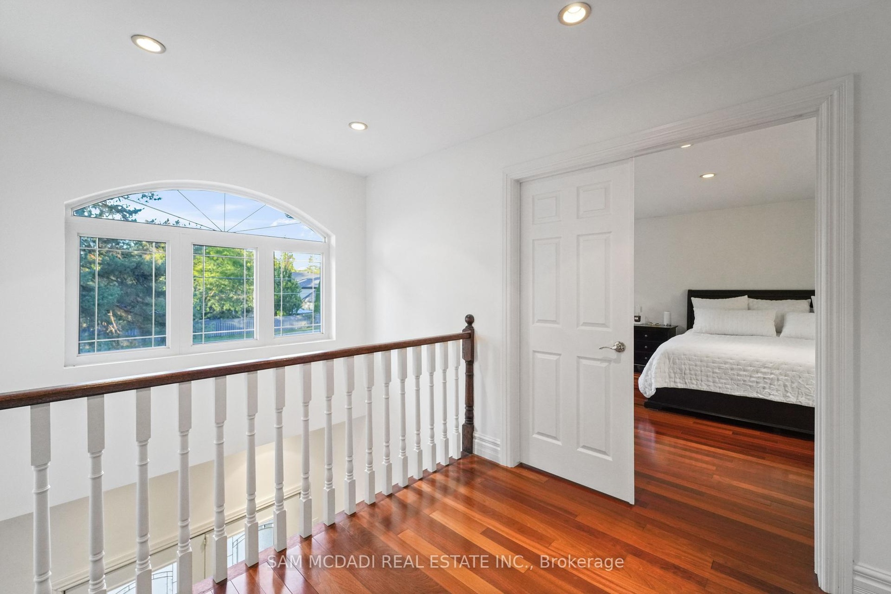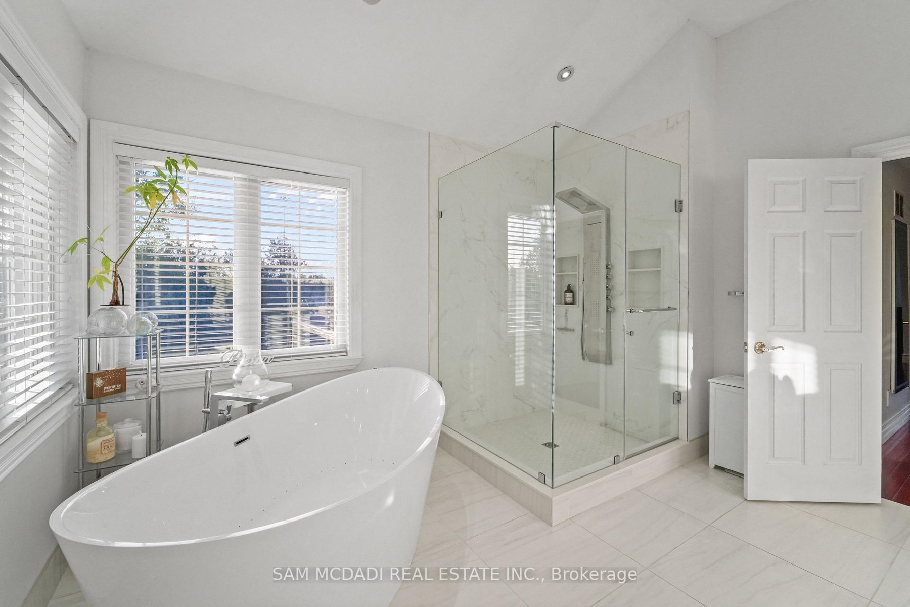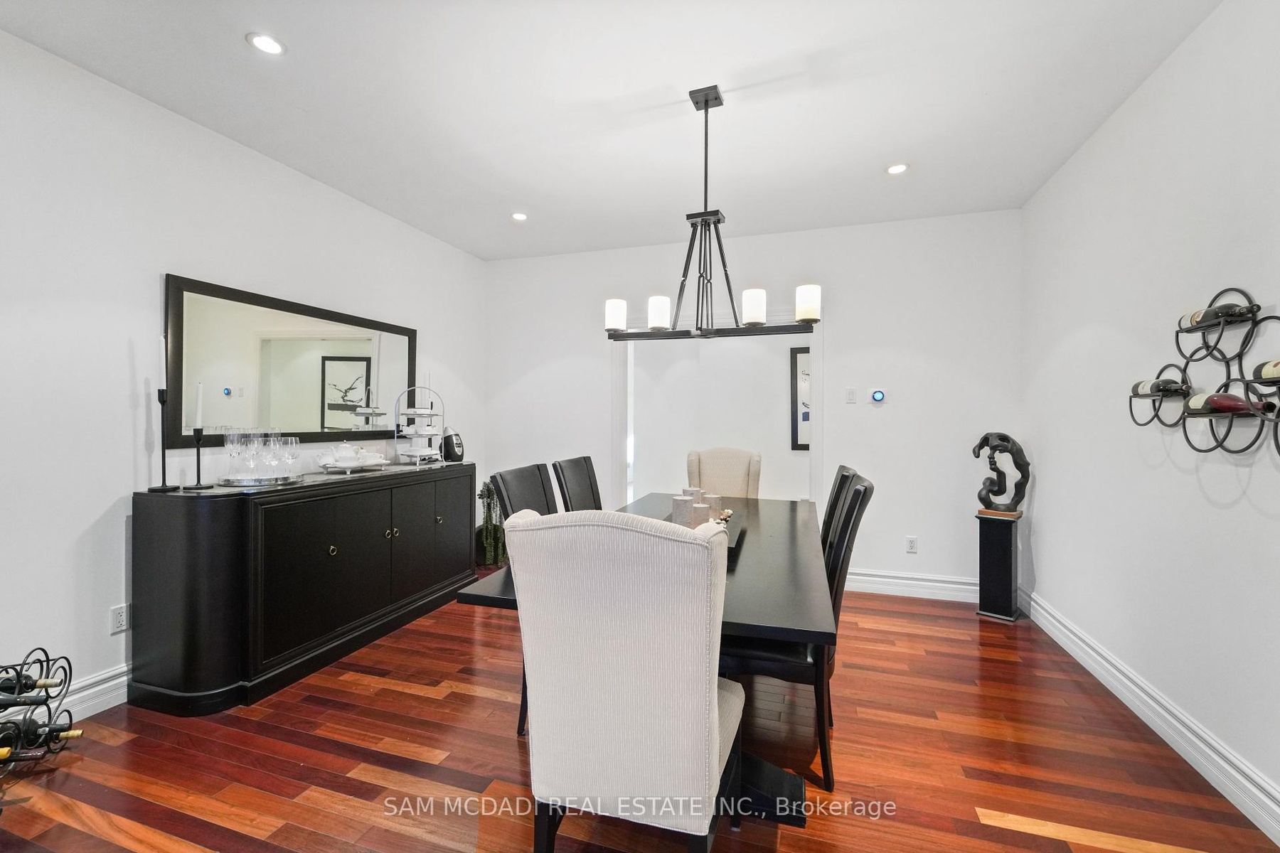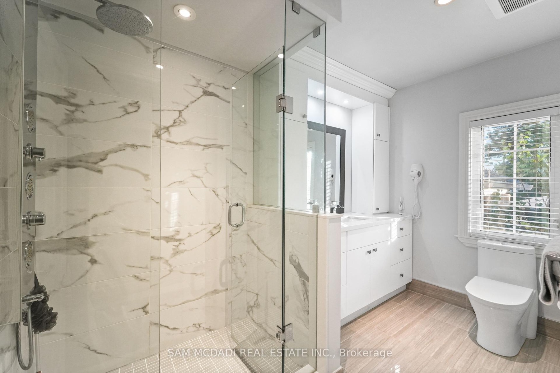 Welcome to 724 Atoka Drive, a rare offering in prestigious Lorne Park, tucked quietly at the end of a private cul-de-sac. This residence boasts nearly 4500 SF and rests on a sprawling half-acre lot with a landscaped pond, cascading water feature, and multiple outdoor living zones designed for both entertaining and quiet retreat. As you enter, soaring 9' - 15' ceilings and oversized windows flood the home with natural light. The main floor features formal living and dining rooms with rich hardwood floors, a cozy family room with gas fireplace and vaulted ceilings, a bright home office, and a gourmet granite kitchen with stainless steel appliances, custom cabinetry, and an expansive island, perfect for hosting or everyday living.Above, four spacious bedrooms await, including a luxurious primary retreat with pot lights, large walk-in closet, and a spa-inspired ensuite featuring heated floors, dual vanities, glass shower, and a freestanding tub. The three additional bedrooms include ensuite / semi-ensuite access and ample closets, promising privacy and comfort.The finished lower level provides a versatile rec room, fitness area, and a private bedroom with ensuite ideal for guests, in-laws, or teens and a separate entrance.Outdoors, enjoy a covered patio, fire pit lounge, hot tub cabana, and open lawns where children can play. The tranquil pond and mature trees create a private, resort-like atmosphere. Yet, just minutes away are the winding trails of Rattray Marsh, lakeside sunsets at Jack Darling Park, boutique dining in Port Credit Village, and quick QEW/GO access for effortless downtown commute.