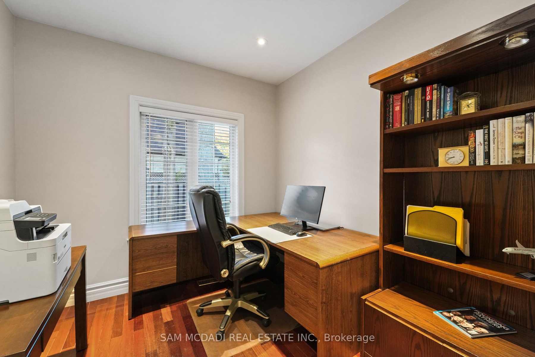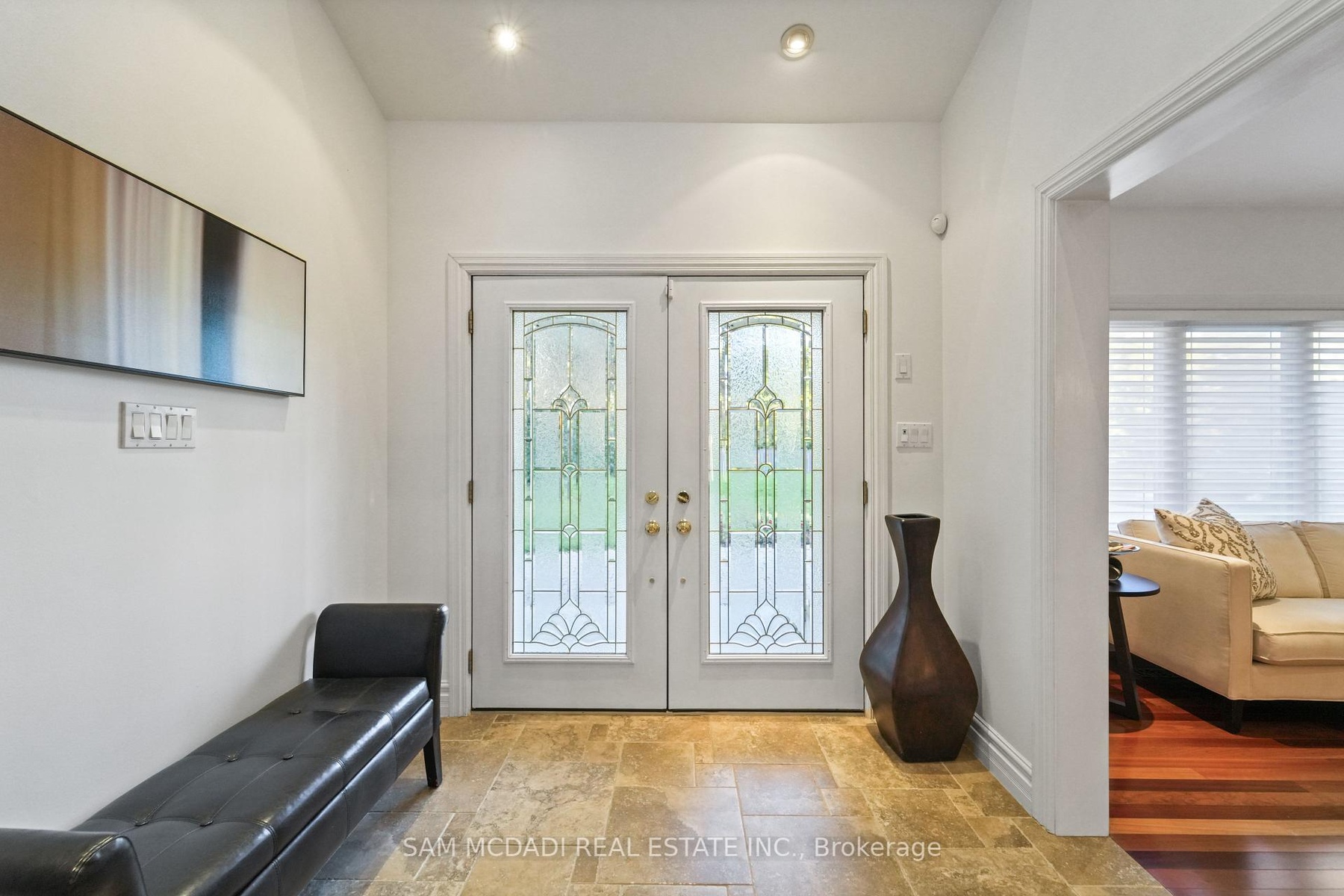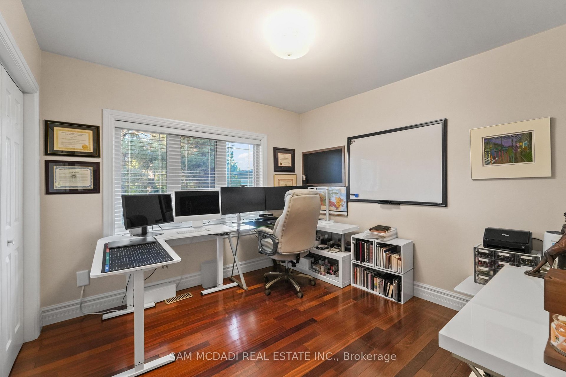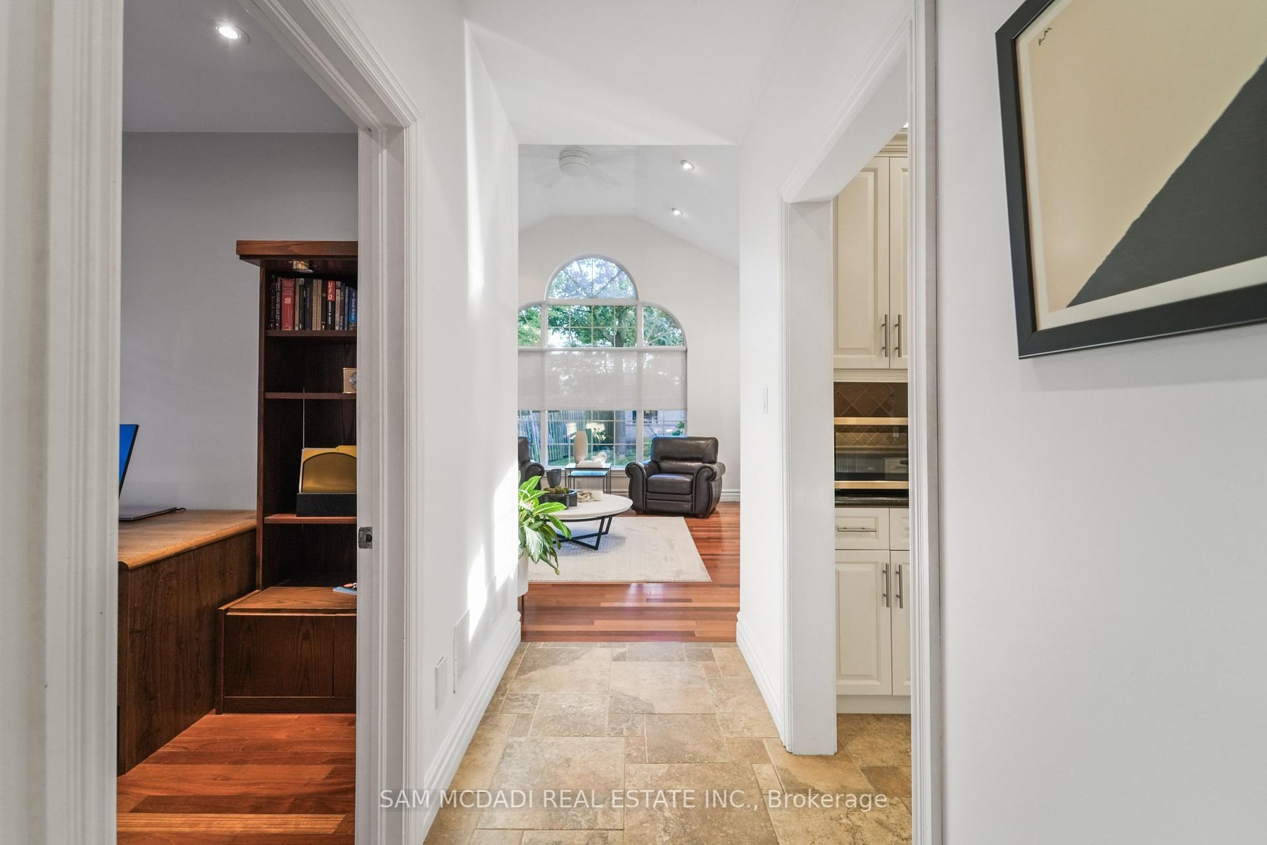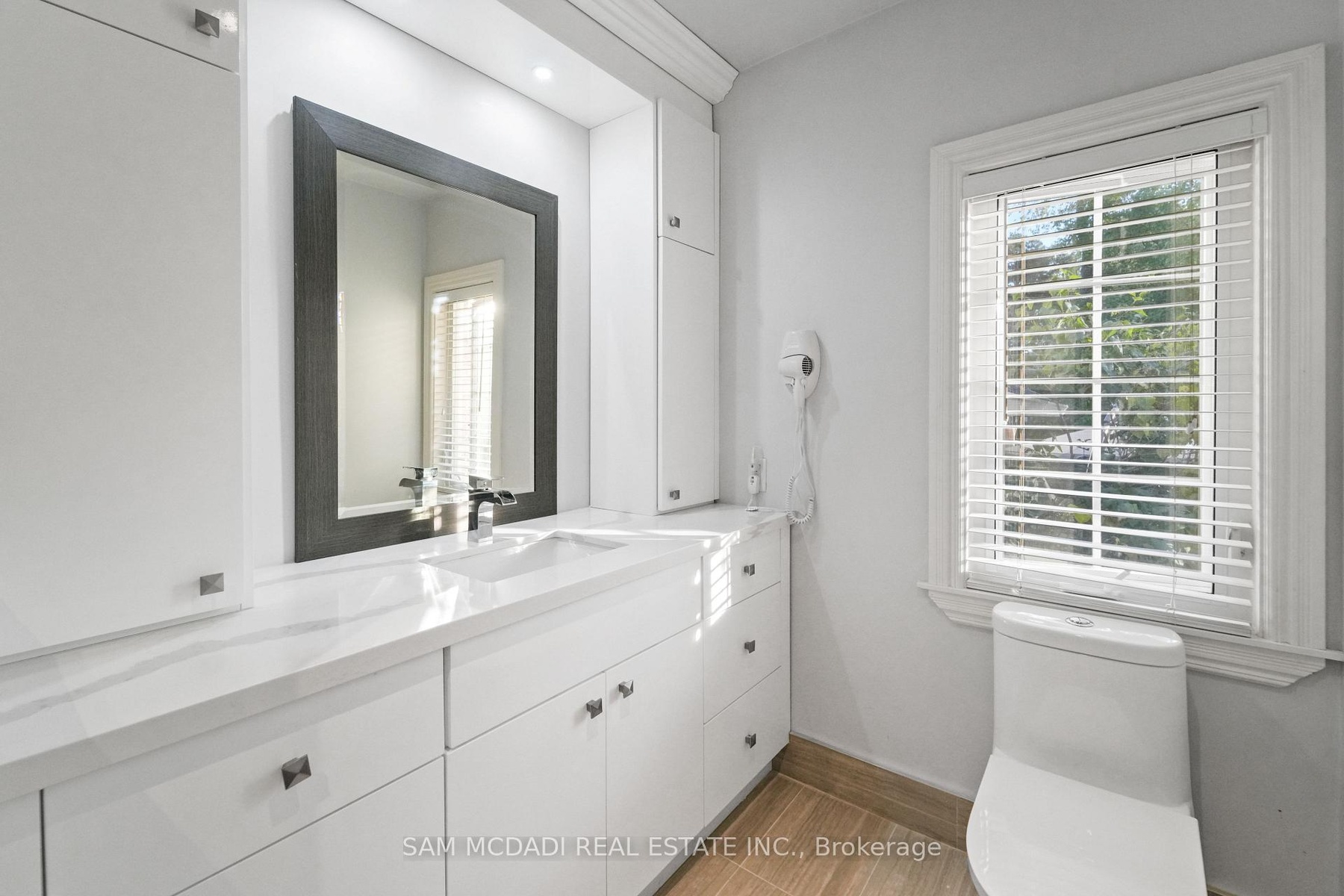 Welcome to 724 Atoka Drive, a rare offering in prestigious Lorne Park, tucked quietly at the end of a private cul-de-sac. This residence boasts nearly 4500 SF and rests on a sprawling half-acre lot with a landscaped pond, cascading water feature, and multiple outdoor living zones designed for both entertaining and quiet retreat. As you enter, soaring 9' - 15' ceilings and oversized windows flood the home with natural light. The main floor features formal living and dining rooms with rich hardwood floors, a cozy family room with gas fireplace and vaulted ceilings, a bright home office, and a gourmet granite kitchen with stainless steel appliances, custom cabinetry, and an expansive island, perfect for hosting or everyday living.Above, four spacious bedrooms await, including a luxurious primary retreat with pot lights, large walk-in closet, and a spa-inspired ensuite featuring heated floors, dual vanities, glass shower, and a freestanding tub. The three additional bedrooms include ensuite / semi-ensuite access and ample closets, promising privacy and comfort.The finished lower level provides a versatile rec room, fitness area, and a private bedroom with ensuite ideal for guests, in-laws, or teens and a separate entrance.Outdoors, enjoy a covered patio, fire pit lounge, hot tub cabana, and open lawns where children can play. The tranquil pond and mature trees create a private, resort-like atmosphere. Yet, just minutes away are the winding trails of Rattray Marsh, lakeside sunsets at Jack Darling Park, boutique dining in Port Credit Village, and quick QEW/GO access for effortless downtown commute.