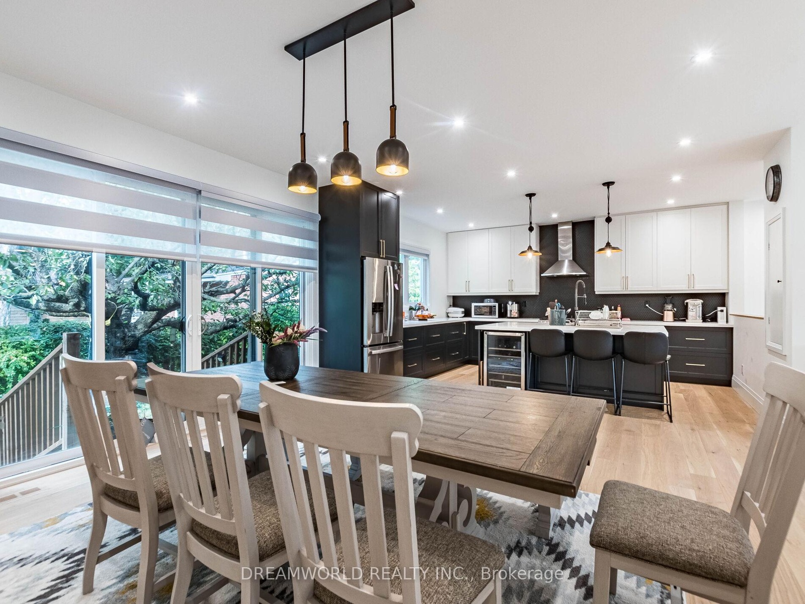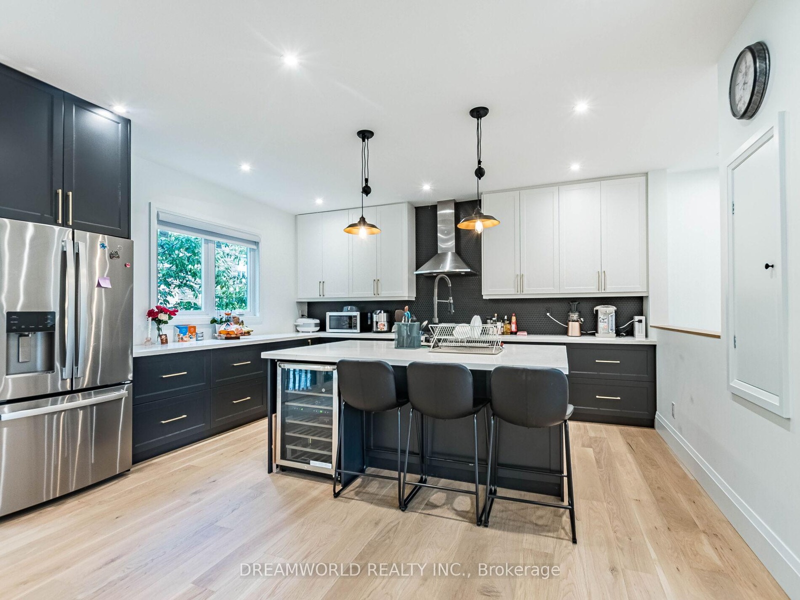 DescriptionStunning Custom-Built Detached Bungalow nestled on a quiet, child-friendly street near Royal York & St Phillips. This exceptional home sits on a premium 75 x 138 ft lot in the highly exclusive sought-after Humber Heights neighborhood. Featuring a modern open-concept layout, the main floor boasts a gorgeous custom kitchen with shaker-style cabinets, stylish backsplash, stainless steel appliances, and a seamless flow into the spacious living & dining area with walkout to the backyard. Elegant hardwood floors, pot lights, and wrought iron railings enhance the homes appeal. Offering 3+3 bedrooms and 4 beautifully finished bathrooms, this home is perfect for families of all sizes. The fully finished basement includes a large recreation room, wet bar, 3 bedrooms, and a unique walk-through 2-piece bath ideal for entertaining or an in-law suite. Located close to excellent schools, parks, shops, and transit, this property combines luxury with convenience.Amenities- Auto Garage Door Remote