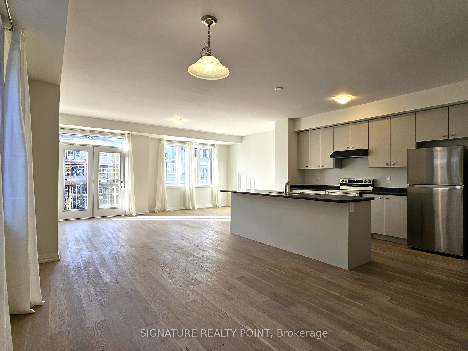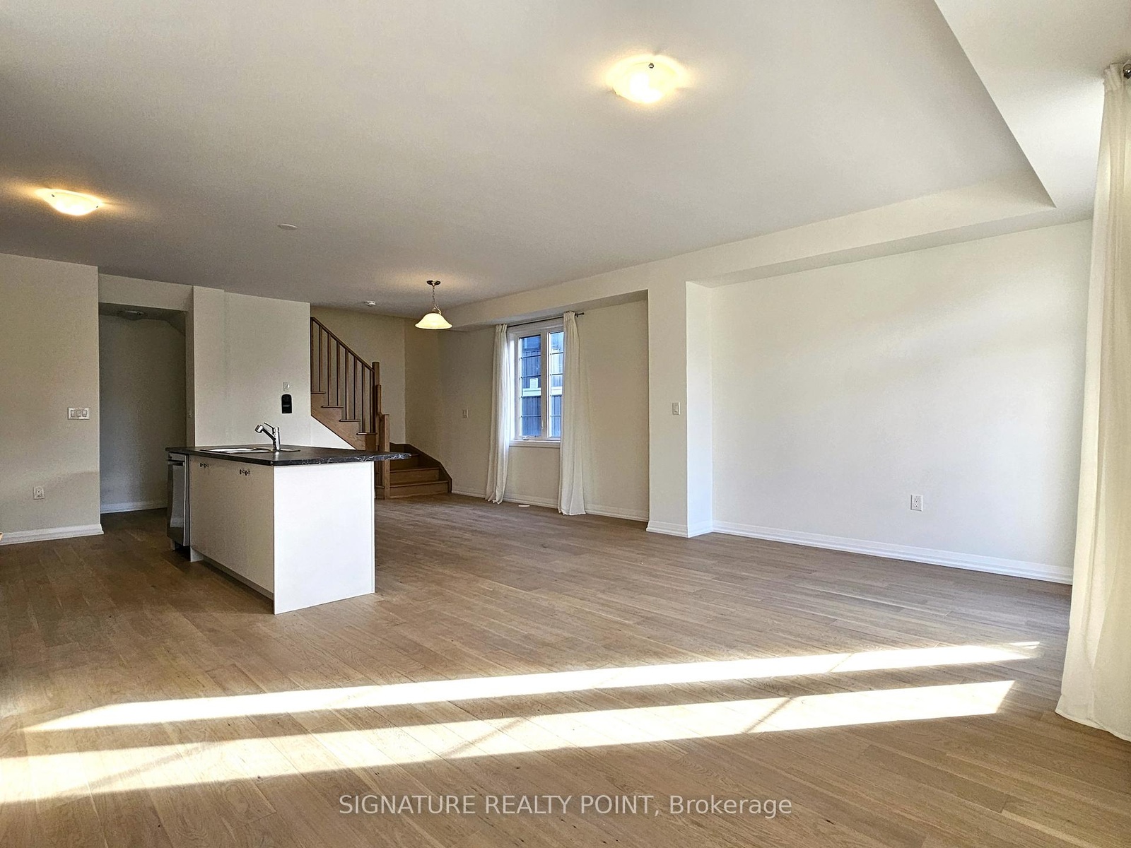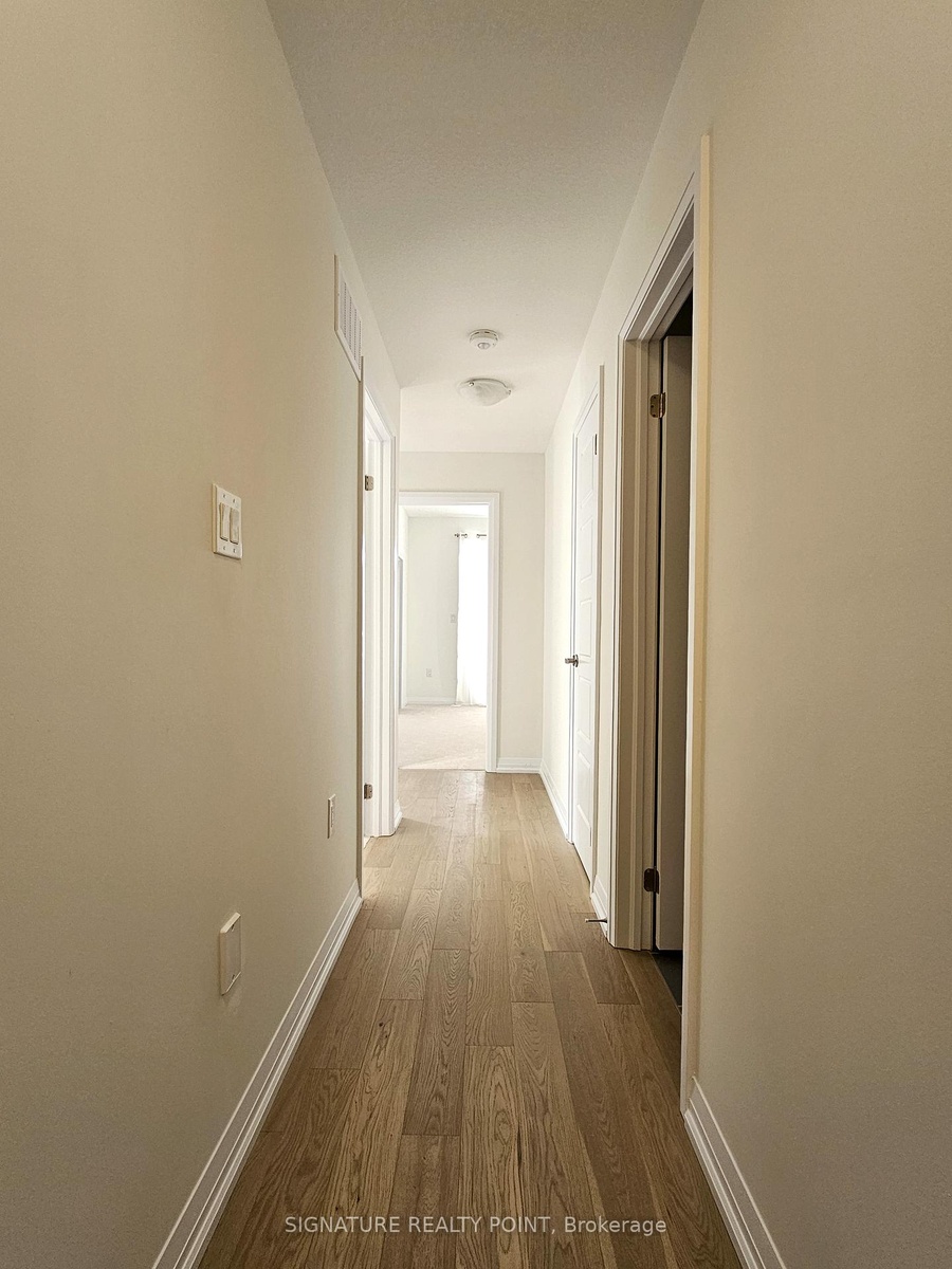 Brand new end-unit townhome in beautiful Caledonia, on a pie-shaped lot. This 1700 sqft modern home offers an open-concept great room, kitchen, and dining area, along with a large balcony. The main floor features 9 ft ceiling and hardwood flooring throughout, including the staircase. The large primary bedroom offers ample space, 9 ft ceiling and an additional balcony. There's also a main 4 pc bathroom and a primary ensuite with a standing shower. The ground floor provides an additional flex space/den for your enjoyment. Includes 2 parking spaces and entry from the garage. This is a great home for young professionals and families. Close to shops, groceries, walking trails, and local amenities in Caledonia, while being only 10 minutes from Hamilton.