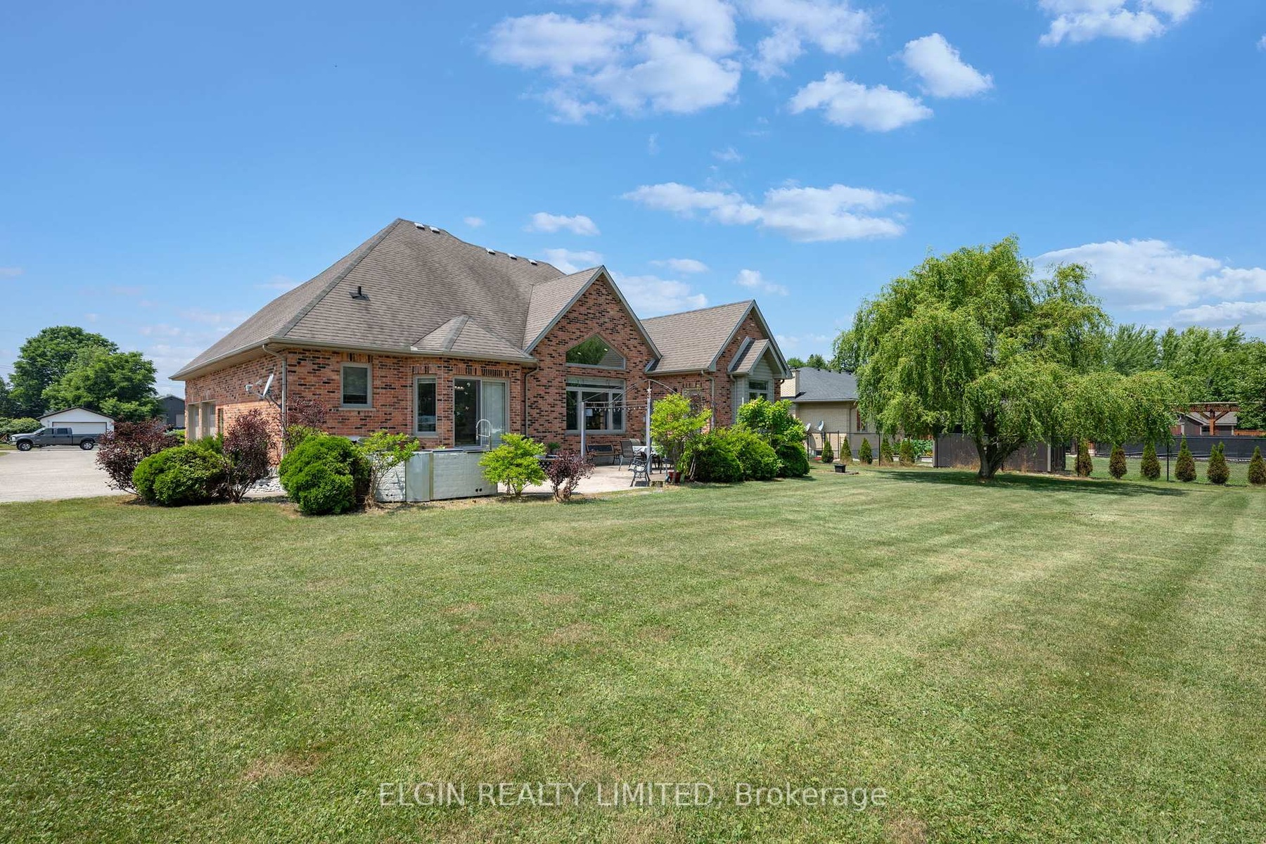 DescriptionWelcome to 9538 Tower Road where comfort, and functionality come together in perfect harmony. This thoughtfully custom-built ranch-style beauty offers nearly 4,000 sq. ft. of impeccably finished living space. With curb appeal plus, it's nestled on a well landscaped 0.88-acre lot just outside St. Thomas. Step into a sun-filled space where large windows and transoms flood and embrace the open-concept main floor with natural light. Vaulted ceilings, gleaming hardwoods, tile floors, and built-in cabinetry in the great room add both style and practicality. With 5 spacious bedrooms and 3 full bathrooms, there's plenty of room for the whole family - and guests too. The thoughtfully designed layout includes three main-level bedrooms, including a private primary suite complete with a large walk-in closet, jetted tub bathroom and its own walkout to the rear patio - perfect for quiet mornings or relaxing evenings. Love to cook or entertain? The freshly updated kitchen boasts stone countertops, a breakfast bar, and a generous dining area with backyard views. From here, step outside to the expansive stamped concrete patio, complete with a built-in outdoor kitchen - a dream setup for summer BBQs or peaceful nights under the stars. The finished lower level adds even more living space, including a recreation room, two more bedrooms, a full bath, and a walk-up to the extended oversized two-car garage. Outside, enjoy the huge backyard lined with evergreens offering year-round greenery and a large shed great for storing those work or garden tools. Bonuses include Municipal Water, Newer Furnace and A/C, Septic Alarm System, Centralized Water Shutoff Panel, Driveway with parking for multiple vehicles including an RV and more. With the added potential to build a shop, this immaculately kept home offers the best of both worlds - peaceful country living with modern comforts and easy access to urban amenities and major roadways. It's a rare find that checks all the boxes, don't miss out!Amenities- 32 Inch Min Doors