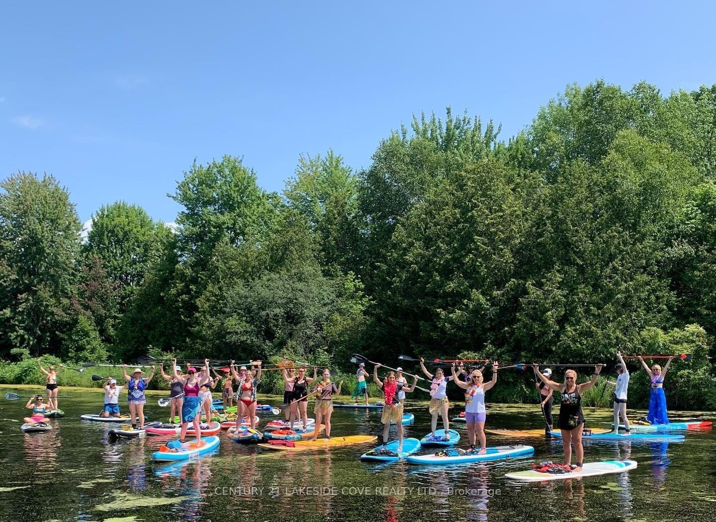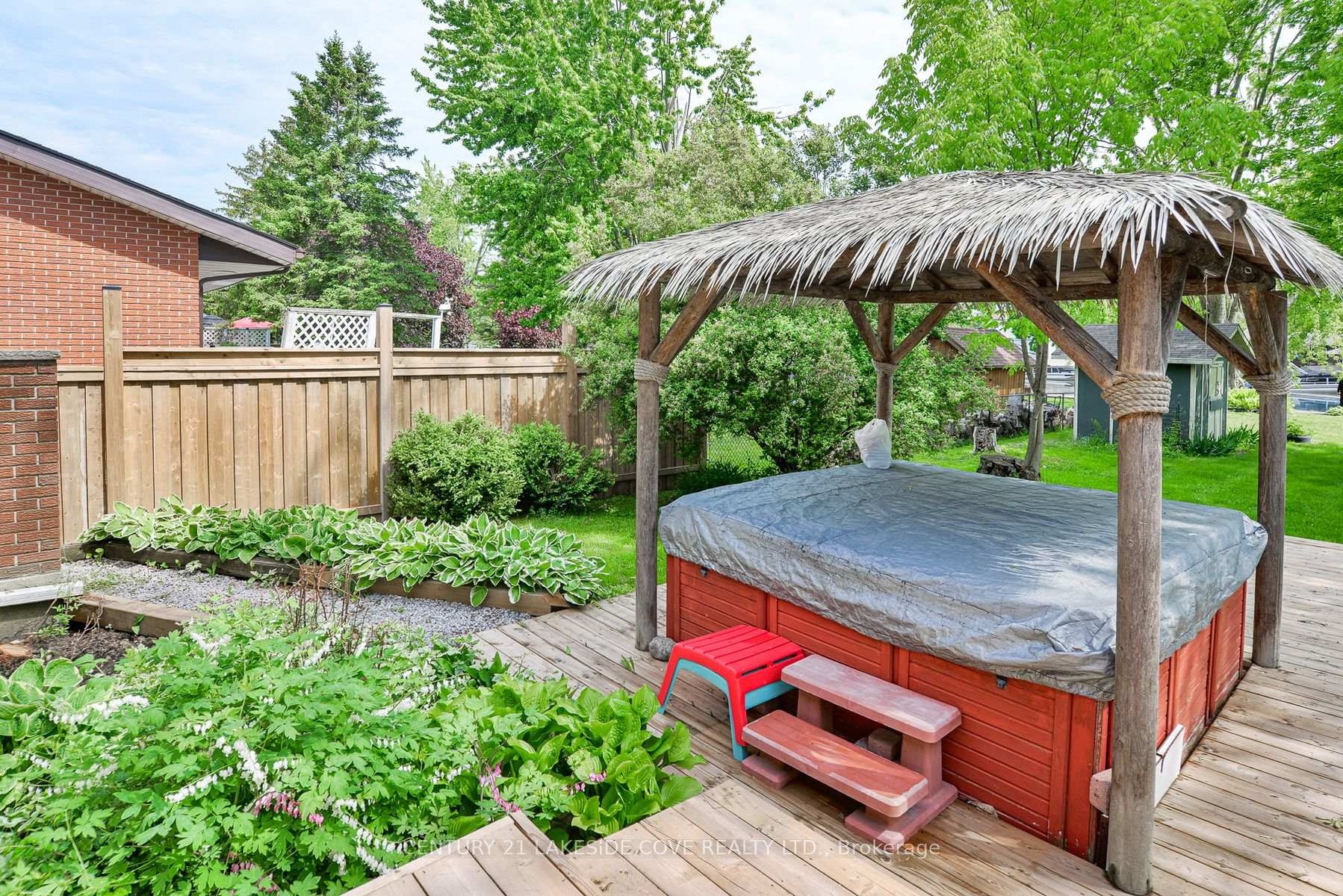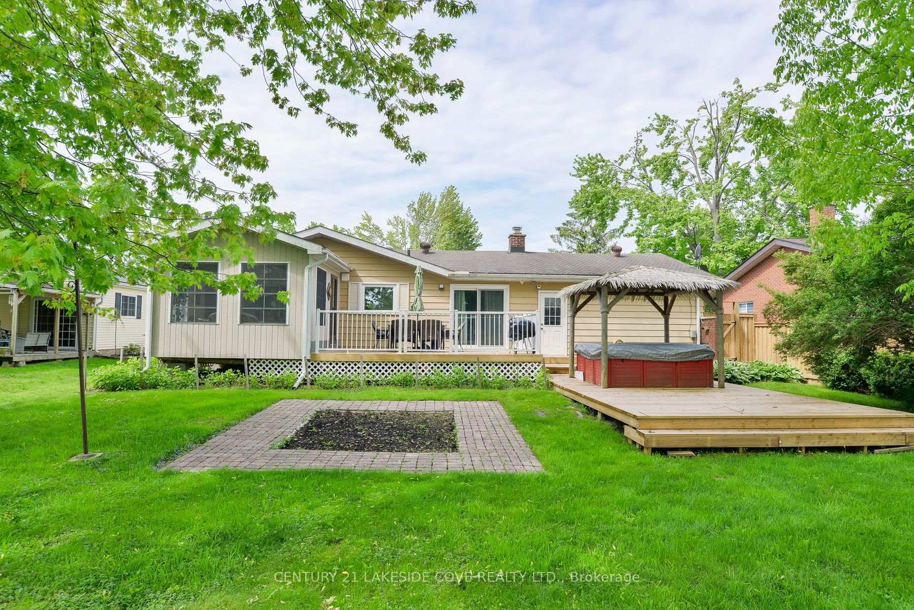 Discover the Charm of this Immaculate Waterfront Bungalow, Which Boasts an Impressive 70 feet of Picturesque Waterfront, Perfect for Enjoying Serene Fall Views. The Meticulously Manicured Yard is a True Gem, Featuring a Waterfront Deck, a Delightful Tiki Hut and a Luxurious Hot Tub, All Set on a Beautifully Level Lawn. This Outdoor Space is Ideal for Cozy Fall Gatherings, Where You can Sip Warm Beverages While Taking in the Stunning Autumn Foliage. Step Inside to Find Elegant and Inviting Interiors that Include Three Exquisitely Designed Bedrooms Prioritizing Comfort and the Enjoyment of Life's Simple Pleasures. Two Modern Three-Piece Bathrooms have been Thoughtfully Updated to Enhance Your Everyday Experience. Throughout the Home, You'll be Captivated by Bright, Beachy Colours and Tasteful Lighting, Harmonizing with Decor that Adds a Touch of Sparkle, Perfect for the Season.The Inviting Family Room Showcases a Striking Teal Brick Feature Wall and a Cozy Propane Fireplace, Creating the Perfect Ambiance for Relaxation on Chilly Fall Evenings. Engineered Flooring Leads a Seamless Flow Through the Space, while the Kitchen Dazzles with Chic Subway Tiles and an Antique-Inspired Electric Stove, Complemented by Tiled Flooring and a Convenient Butler Window for Effortless Service. Situated on a Quiet Cul-De-Sac, this Bungalow Epitomizes Idyllic Living, Complete with a Manicured Lawn that Invites You to Unwind and Enjoy the Serene Surroundings as the Leaves Change. This is More than Just a Home; it is a Sanctuary Designed for Those who Appreciate the Finer Details of Life, Especially as You Embrace the Cozy Beauty of Fall.