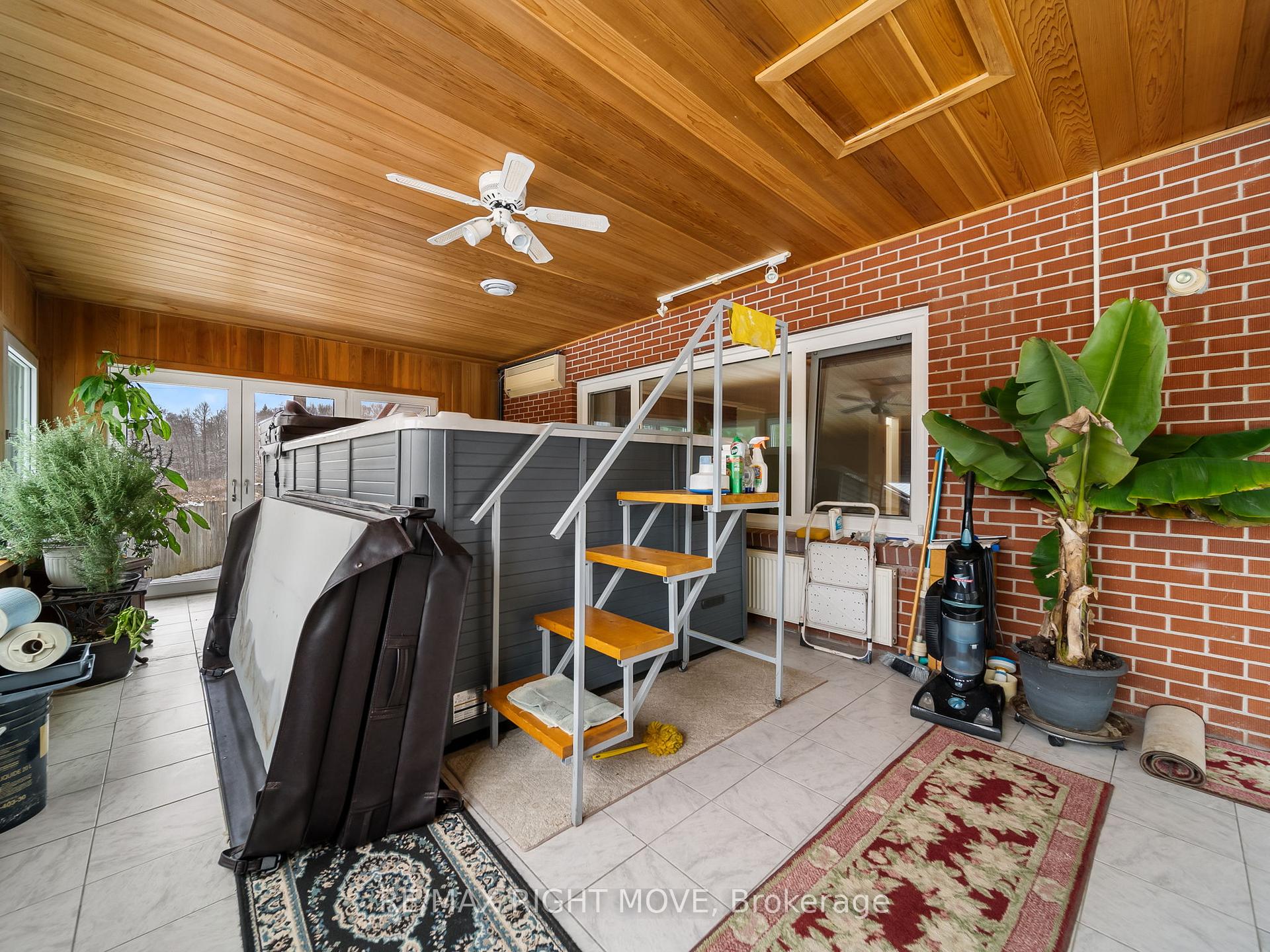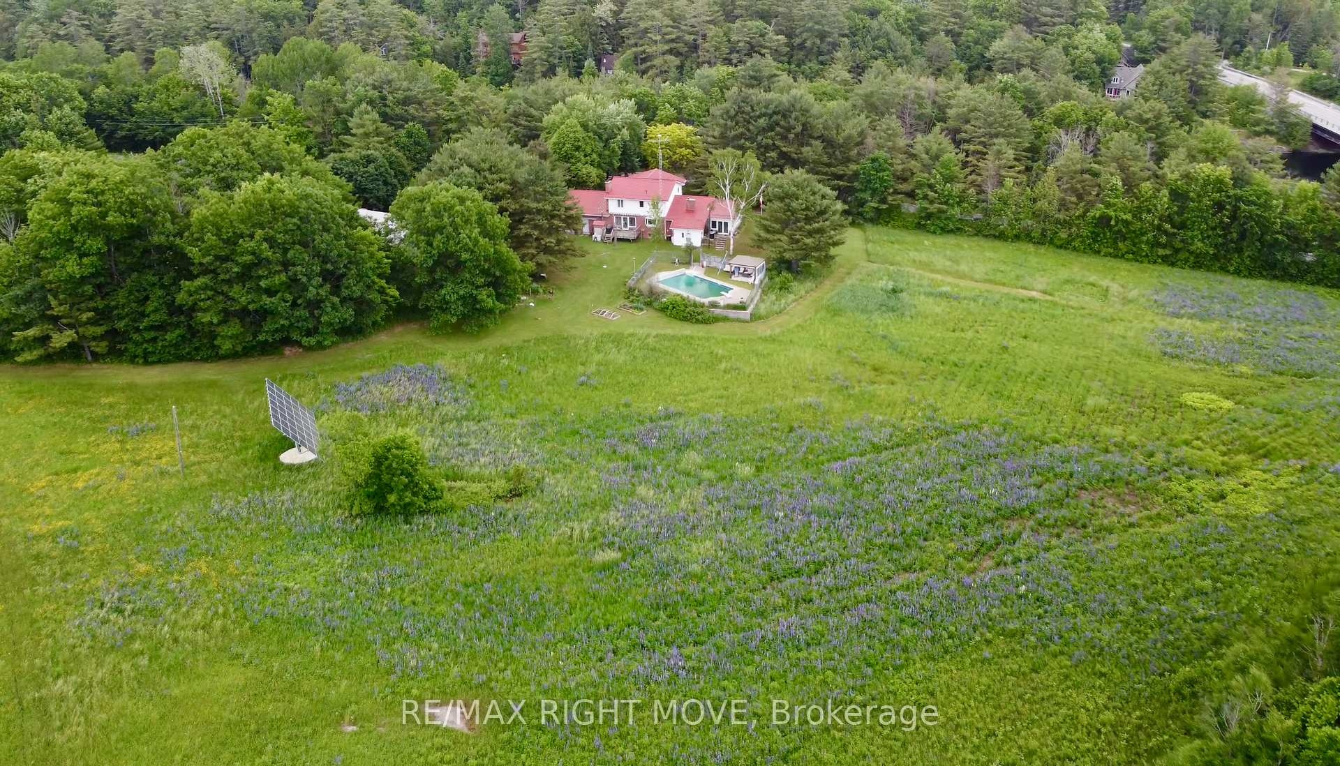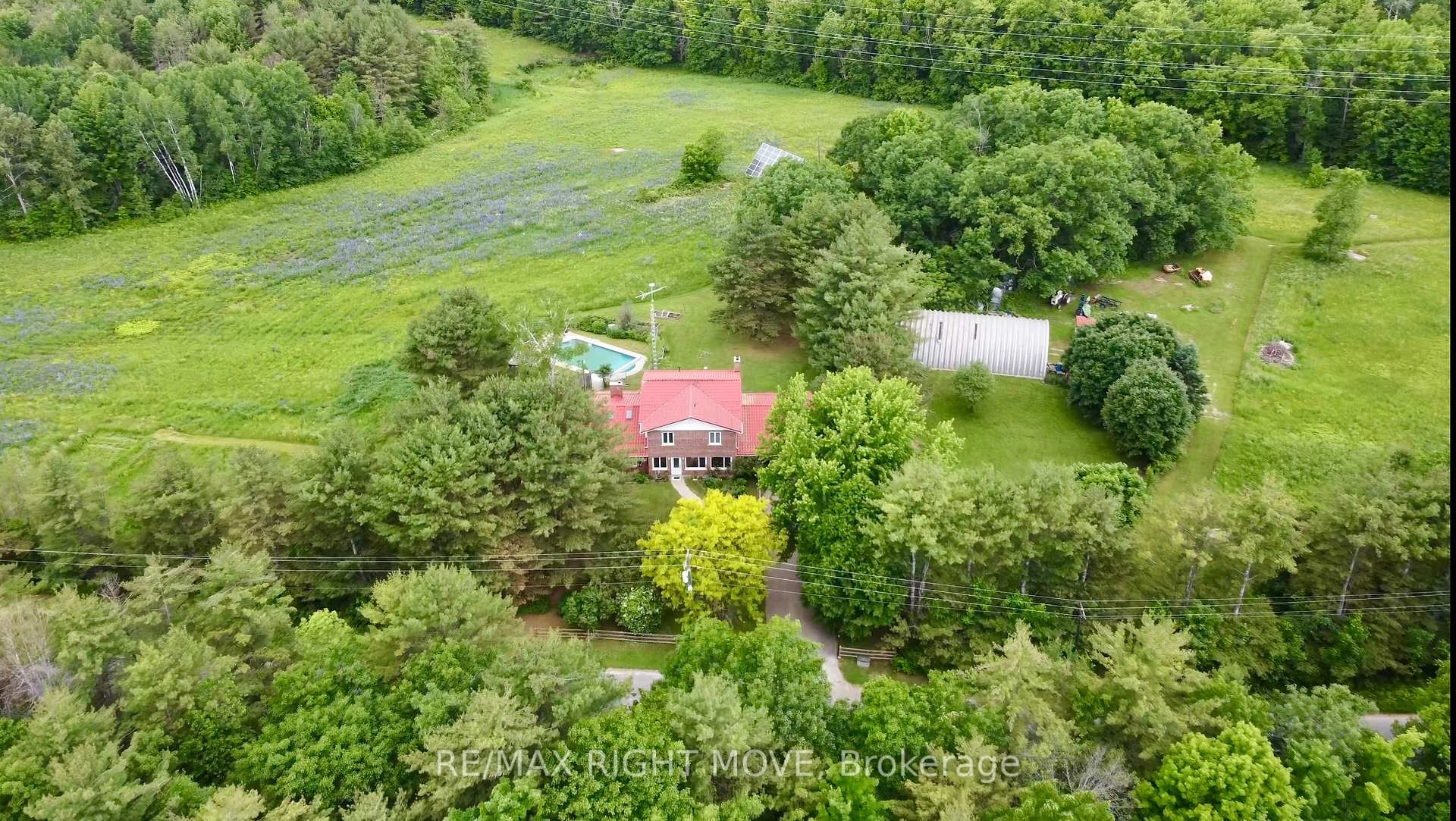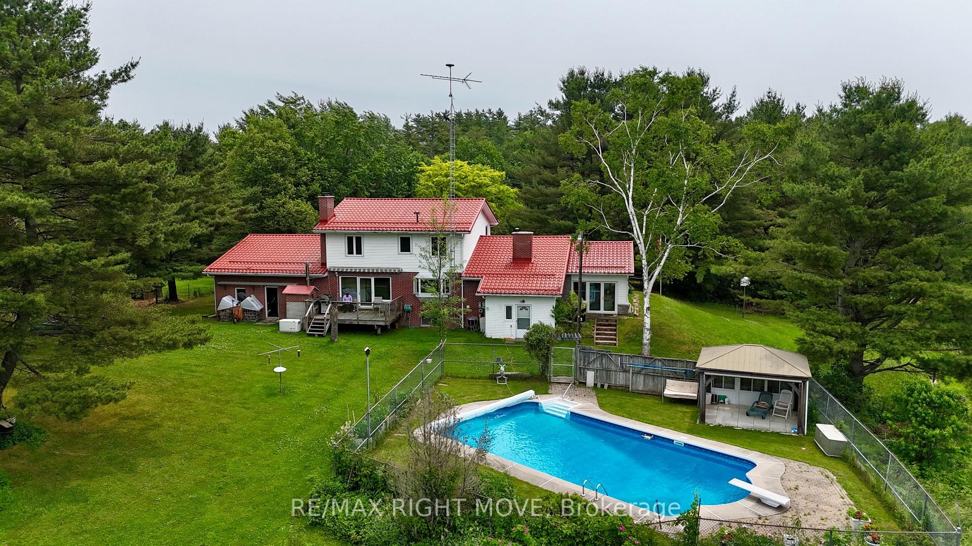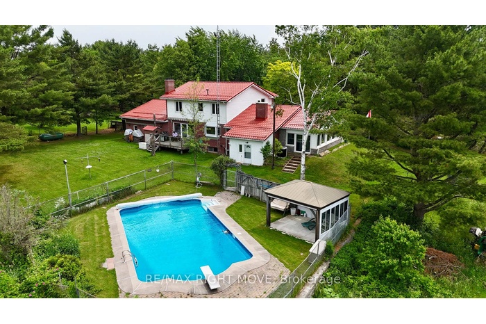 Welcome to your dream property! Nestled on 41 sprawling acres and directly across from the Severn River, this 4+1 bedroom, 4.5-bath home is a true retreat. With 3340 sq. ft. of total living space, this two-story beauty offers everything you need for both relaxation and adventure.Step through the charming front porch and into the main level, where a spacious family room, dining area, and an inviting kitchen with backyard views await. Skylights flood the family room with natural light, while a cozy wood-burning fireplace adds warmth and ambiance. A stylish bar connects the kitchen to the family room, making it perfect for entertaining. Adjacent to the family room is a large sunroom featuring a swim spa, a great spot to unwind year-round. A convenient 2-piece bath is also on this level.Upstairs, you'll find two luxurious primary suites, each with walk-in closets and en suites. Two additional bedrooms share a spacious 4-piece bathroom. The fully finished basement is another highlight, offering a large family room with a second wood-burning fireplace, and an elevator that services all three levels, making it easy to get around. There's also a separate entrance from the basement to the pool area, with a 3-piece bath perfect for rinsing off after a swim.Step outside to your own private oasis! Enjoy summer days by the saltwater pool, recently upgraded with a pump and liner. A large deck with a built-in pizza oven sets the stage for outdoor cooking and entertaining. Plus, the detached shop with an attached chicken coop, as well as over $40,000 worth of tractors and tools, are all included to help you run your hobby farm.An added bonus: a fully-owned solar panel system generates approximately $8,000 to $10,000 in annual income, providing both sustainability and a solid return on investment. include a Generac generator, a giant C can for extra storage, and easy highway access for commuting to Toronto. seller willing to do a Vendor take back mortgage with 75% down