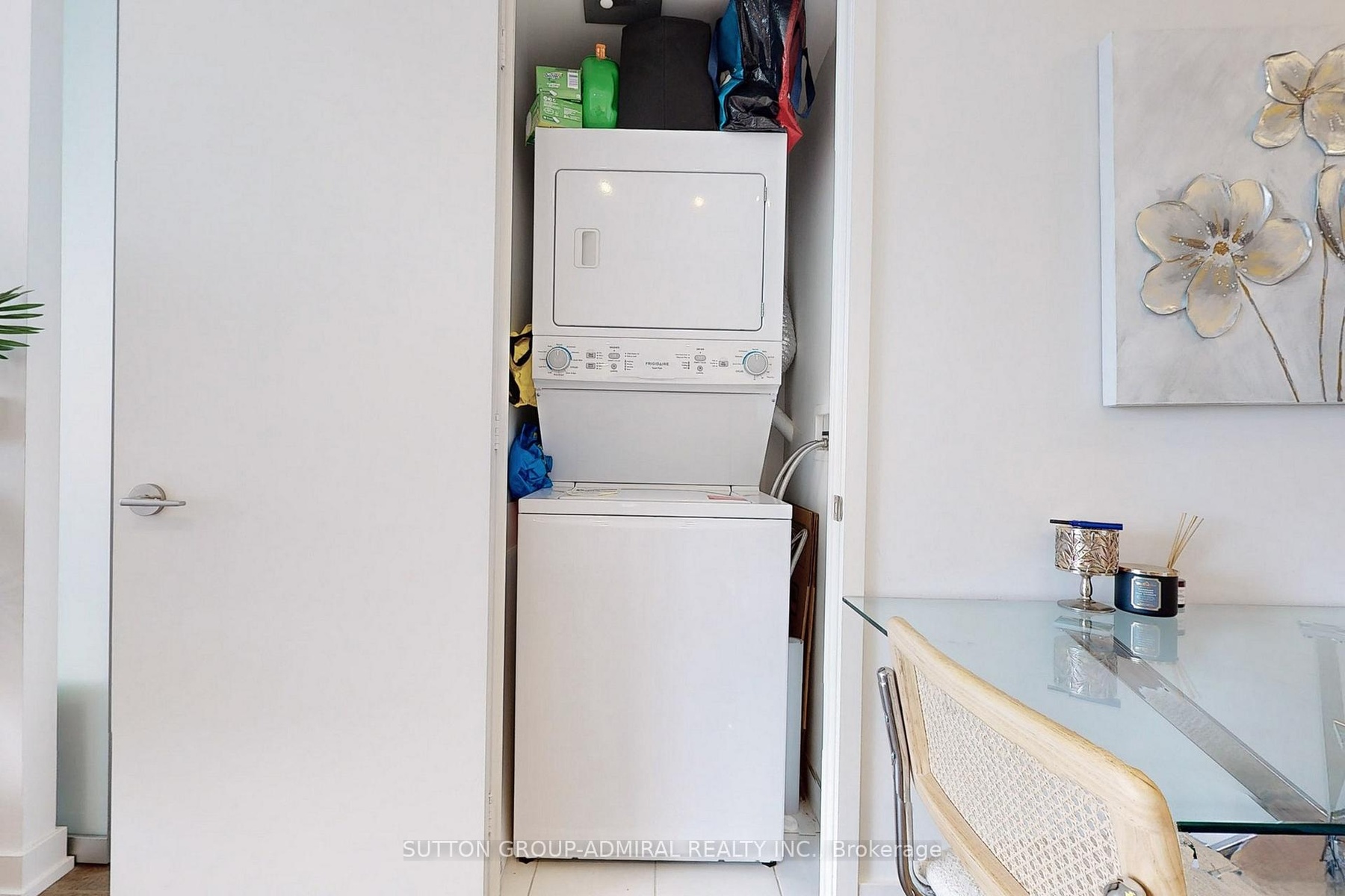 The One You Have Been Waiting For! East Facing 554 Square Feet, 1 Bedroom + Den Featuring Floor-To-Ceiling Windows, 9ft Smooth Ceilings, Vinyl Wide Plank Flooring, Custom Roller Shades And A Spacious Balcony. Thousands Spent On Builder Upgrades! Large Four-Piece Bathroom With Upgraded Porcelain Tiles. Separate Den That Is Perfect For A Home Office. Oversized Primary Bedroom With Large Closet And Floor-To-Ceiling Windows. Sleek And Modern Kitchen With Quartz Countertops, Porcelain Backsplash, Under-Cabinet Lighting, Integrated Kitchen Appliances W/ Glass Cooktop, Stainless Steel Microwave And Oven. Unit Is Distinctively Located On The Same Floor As The Rooftop Pool! Located Steps From Union Station, St. Lawrence Market, Financial District, GB College, U of T, TMU And Diverse Shops And Eateries. Amenities Include 24-Hour Security, Rooftop Outdoor Pool, Gym, Party Room, And Guest Suites.