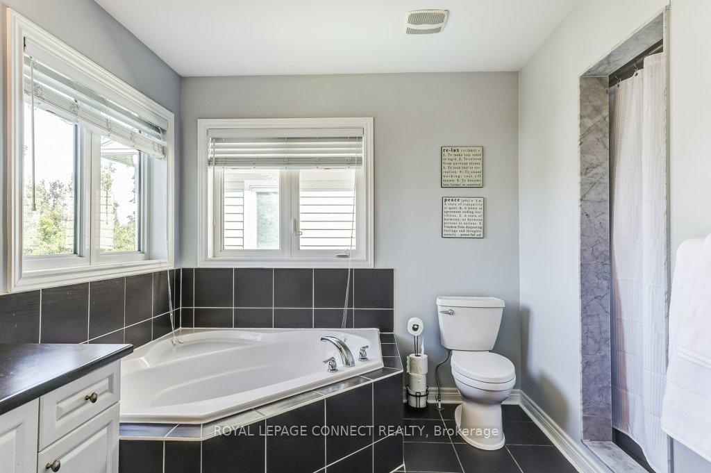 This is it! A home that actually lives up to the photos. The open-concept main floor gives you space to cook, host and still see what everyone's up to. Quartz counters, gas fireplace and fresh paint set the tone, with brand-new broadloom carrying upstairs. Four bedrooms up, including a primary with its own ensuite and a semi-ensuite off the main bath, plus the laundry room where you actually need it  on the second floor. The finished basement is set up for real life: a rec room with electric fireplace, 3-pc bath, wet bar, and a separate room with window and closet that works as a bedroom, office or flex space. Out back, the fully fenced yard features a deck, gas BBQ hookup and a hot tub that stays. Double garage with EV rough-in and parking for two more. Port of Whitby location puts you minutes to the lake, trails, GO and the 401.