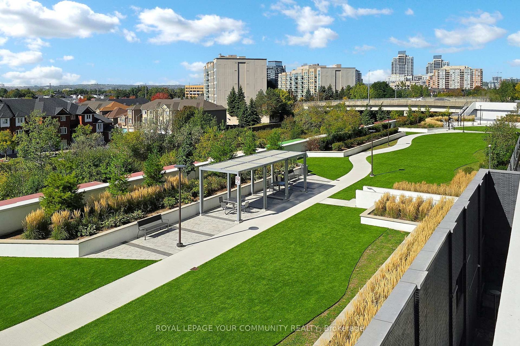 Welcome to Unit 503 at 95 Oneida Crescent A sun-filled 2+1 bedroom corner suite offering 935 sq.ft. of thoughtfully designed living space in the heart of Richmond Hill.This beautifully maintained home features floor-to-ceiling windows, 9-ft ceilings, and premium laminate flooring throughout. The modern open-concept kitchen is equipped with upgraded cabinetry, quartz countertops, a stylish tile backsplash, and stainless steel appliances, perfect for everyday cooking and entertaining.The spacious living and dining areas extend seamlessly to a large L-shaped private balcony with open, uncbstructed views. The primary bedroom boasts a walk-in closet and a 3-piece ensuite with upgraded tile finishes. The versatile den offers flexibility as a home office or potential third bedroom with a separate door.This suite also includes one parking space and one locker.Located steps from Langstaff GO Station, VIVA/YRT transit, and minutes to Hwy 7/407/404, shopping, dining, parks, and schools the convenience is unmatched.Residents enjoy access to luxury amenities including a 24-hour concierge, fitness centre, indoor pool, party room, rooftop garden, and more.