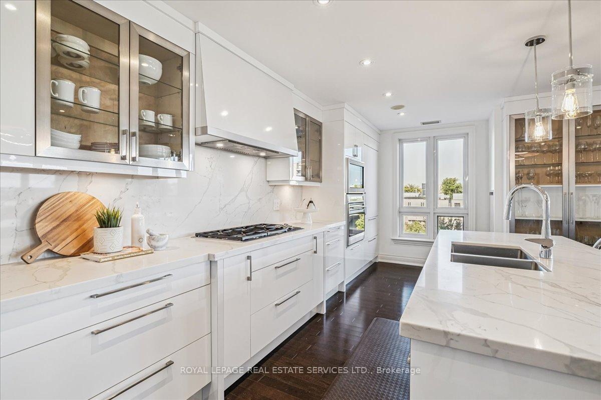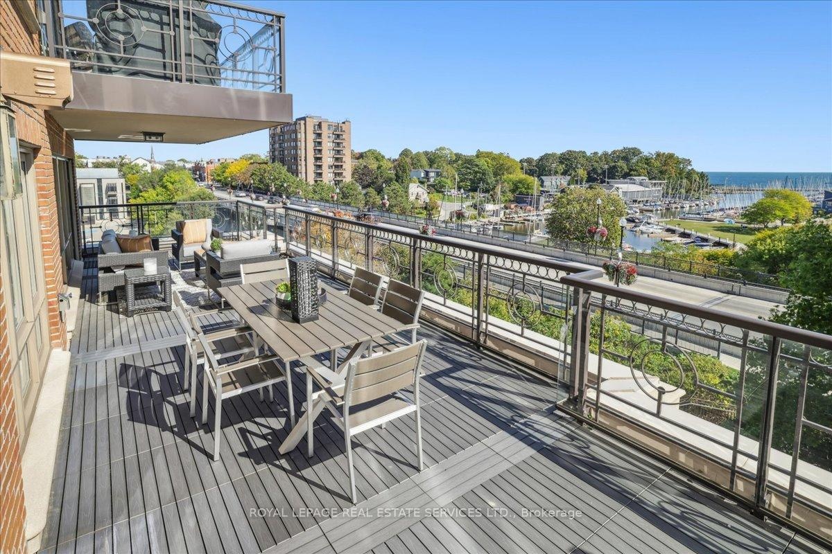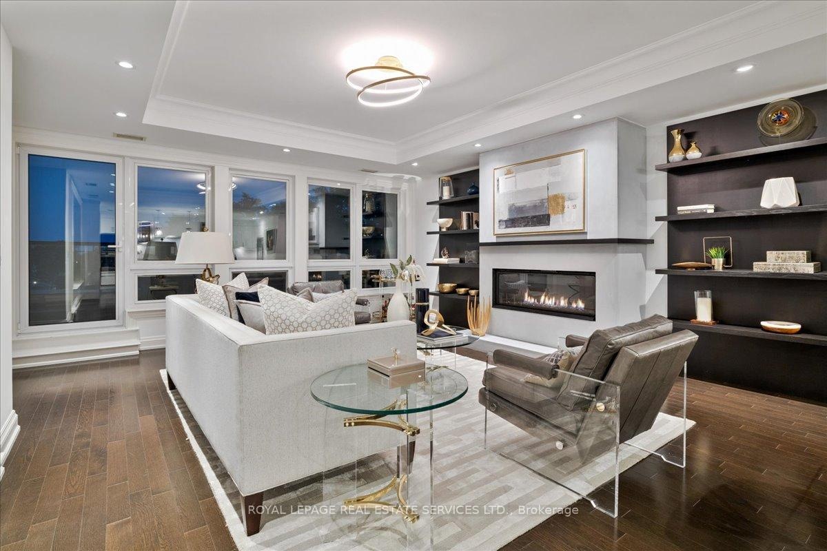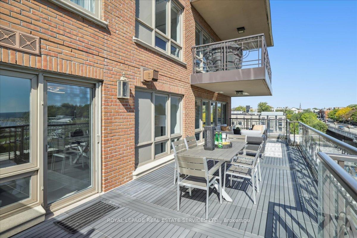 A truly rare opportunity awaits the discerning few. Imagine securing one of only two sprawling, south-facing terraces at the prestigious One Eleven Forsythe Street, presenting an unparalleled panorama over the shimmering waters of Lake Ontario and the charming cityscape of downtown Oakville. This is more than a residence; it is a statement of unrivaled luxury and position. Spanning over 2,335 square feet of exquisitely appointed living space, this remarkable 2+1 bedroom, 2.5 bathroom unit seamlessly blends functional brilliance with sumptuous finishes. The open-concept main floor is an entertainers masterpiece, centered by a custom gourmet kitchen that would inspire any chef. It is anchored by a magnificent oversized island and features a suite of top-tier appliances, including a Wolf gas range, Sub-Zero refrigerator.The adjacent open-concept living room is bathed in natural light, thanks to floor-to-ceiling windows that frame the magnificent views. A captivating gas fireplace provides a warm, sophisticated focal point, and the space offers seamless access to two spacious balconies, further enhancing the indoor-outdoor living experience. Prepare to be utterly captivated by the astounding 445 square foot south-facing terrace. The sun-filled primary suite is a haven of relaxation, also offering direct walk-out access to the magnificent terrace. Ownership here grants you immediate access to the finest amenities Oakville has to offer. Step outside and immerse yourself in the vibrant local culture from enjoying your morning espresso at a favorite café to enjoying live music in the park, indulging in fine dining, and taking rejuvenating lakeside strolls. This is, unequivocally, a one-of-a-kind opportunity to secure a piece of Oakville's most exclusive real estate. It is an experience not to be missed.