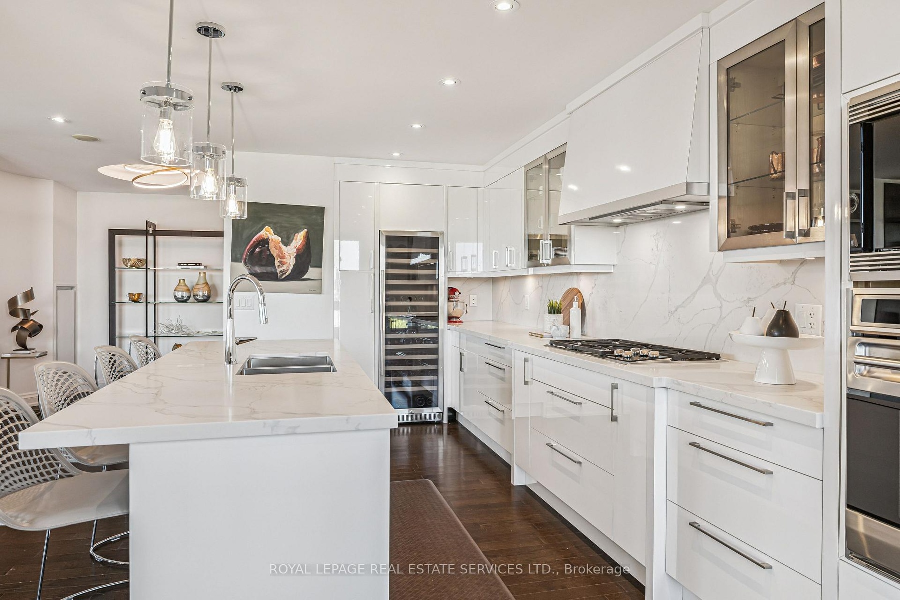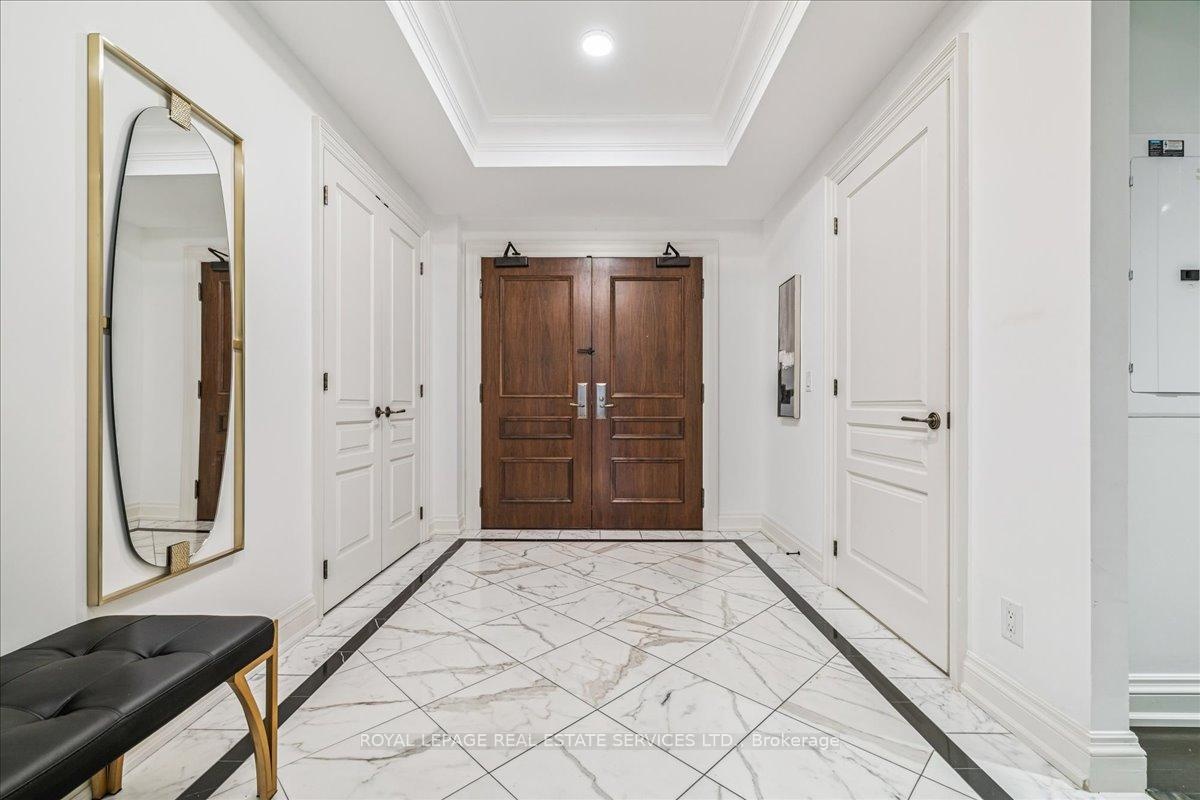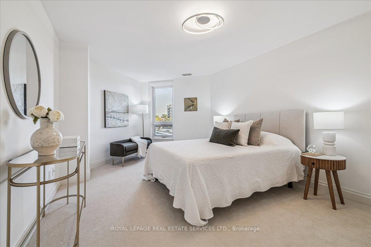 A truly rare opportunity awaits the discerning few. Imagine securing one of only two sprawling, south-facing terraces at the prestigious One Eleven Forsythe Street, presenting an unparalleled panorama over the shimmering waters of Lake Ontario and the charming cityscape of downtown Oakville. This is more than a residence; it is a statement of unrivaled luxury and position. Spanning over 2,335 square feet of exquisitely appointed living space, this remarkable 2+1 bedroom, 2.5 bathroom unit seamlessly blends functional brilliance with sumptuous finishes. The open-concept main floor is an entertainers masterpiece, centered by a custom gourmet kitchen that would inspire any chef. It is anchored by a magnificent oversized island and features a suite of top-tier appliances, including a Wolf gas range, Sub-Zero refrigerator.The adjacent open-concept living room is bathed in natural light, thanks to floor-to-ceiling windows that frame the magnificent views. A captivating gas fireplace provides a warm, sophisticated focal point, and the space offers seamless access to two spacious balconies, further enhancing the indoor-outdoor living experience. Prepare to be utterly captivated by the astounding 445 square foot south-facing terrace. The sun-filled primary suite is a haven of relaxation, also offering direct walk-out access to the magnificent terrace. Ownership here grants you immediate access to the finest amenities Oakville has to offer. Step outside and immerse yourself in the vibrant local culture from enjoying your morning espresso at a favorite café to enjoying live music in the park, indulging in fine dining, and taking rejuvenating lakeside strolls. This is, unequivocally, a one-of-a-kind opportunity to secure a piece of Oakville's most exclusive real estate. It is an experience not to be missed.