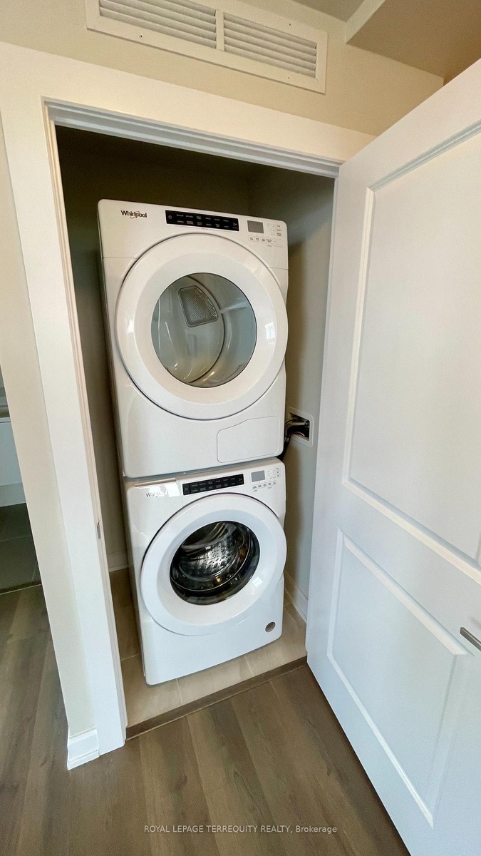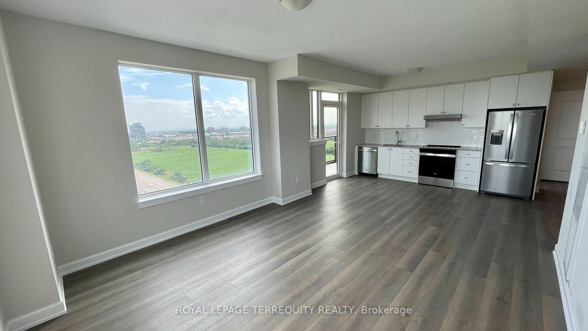 Exceptional Corner Suite at Upper West Side Condos by Branthaven Joshua Meadows. Step into contemporary elegance with this bright and spacious 960 sq. ft. corner unit, thoughtfully designed for modern living. Located in the highly sought-after Upper West Side Condos, this 2-bedroom, 2-bathroom residence offers a rare combination of functionality, style, and comfort. This open-concept suite features 9-foot ceilings, large South East facing windows that flood the space with natural light, and a private balcony, perfect for relaxing or entertaining. The timeless white kitchen boasts generous cabinetry, stainless steel appliances, and a sleek, modern aesthetic that complements any décor. Full-sized in-suite laundry adds everyday convenience. Equipped with SmartONE home technology, enjoy features such as keyless digital entry, integrated smart locks, and a geothermal heating and cooling system offering energy efficiency and year-round climate control for peace of mind. Included with the unit: TWO (2) side by side underground parking spaces. One secure storage locker. Residents have access to resort-style amenities, including: Stylish social lounge with an entertainment kitchen, Yoga studio and a fully equipped fitness center, Impressive 11th-floor chefs kitchen and rooftop terrace with panoramic views. Perfectly situated in the heart of North Oakville, this condo is just steps away from shopping centers, restaurants, grocery stores, parks, and public transit offering a truly walkable, connected lifestyle in a serene and upscale community. This is an ideal opportunity for discerning buyers seeking a turn-key home that blends convenience, smart design, and elevated urban living. High speed internet is included in the condo fees.