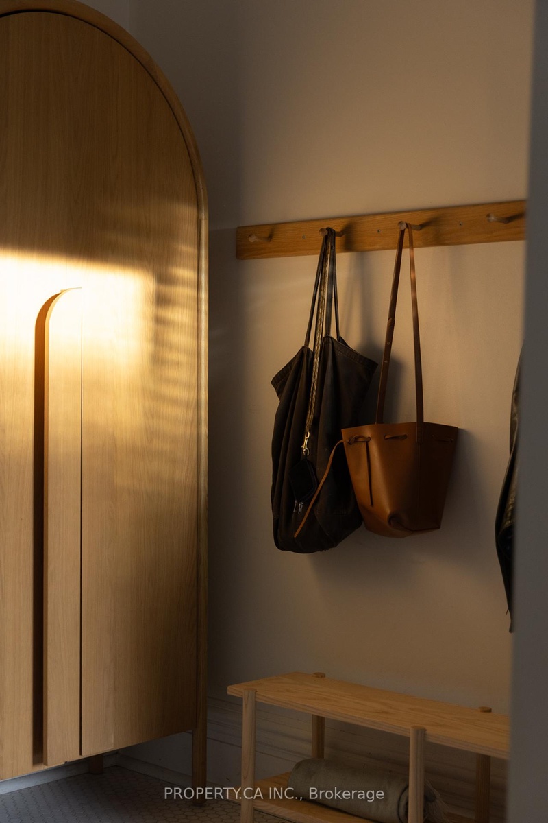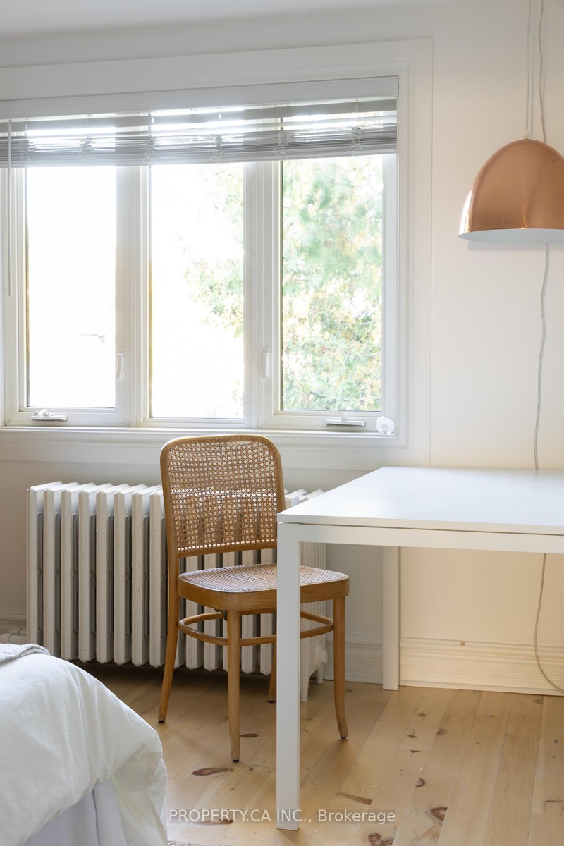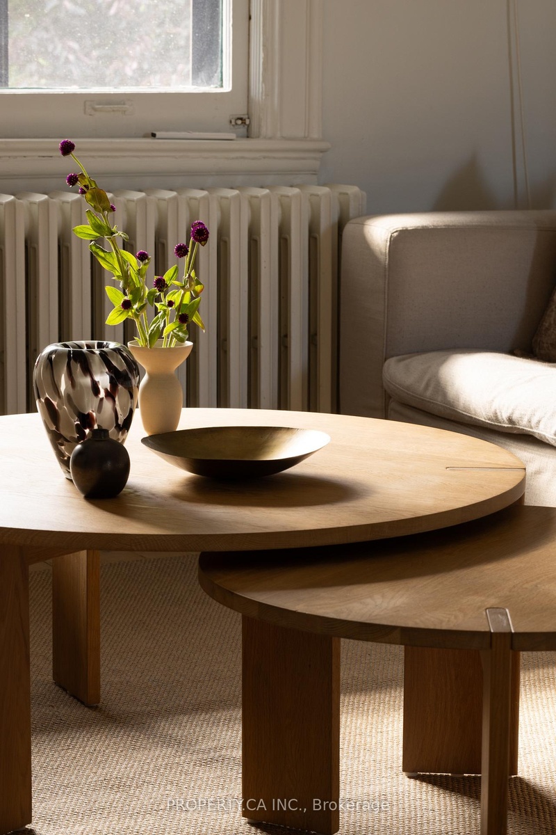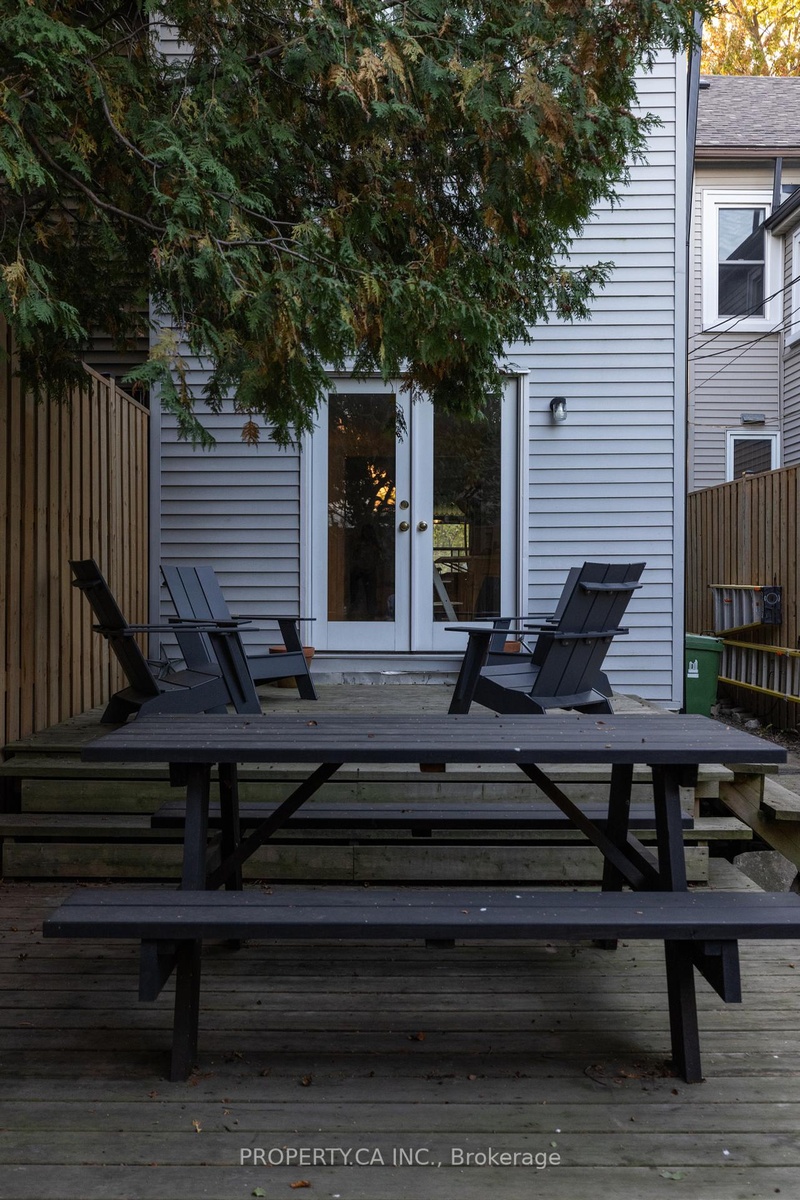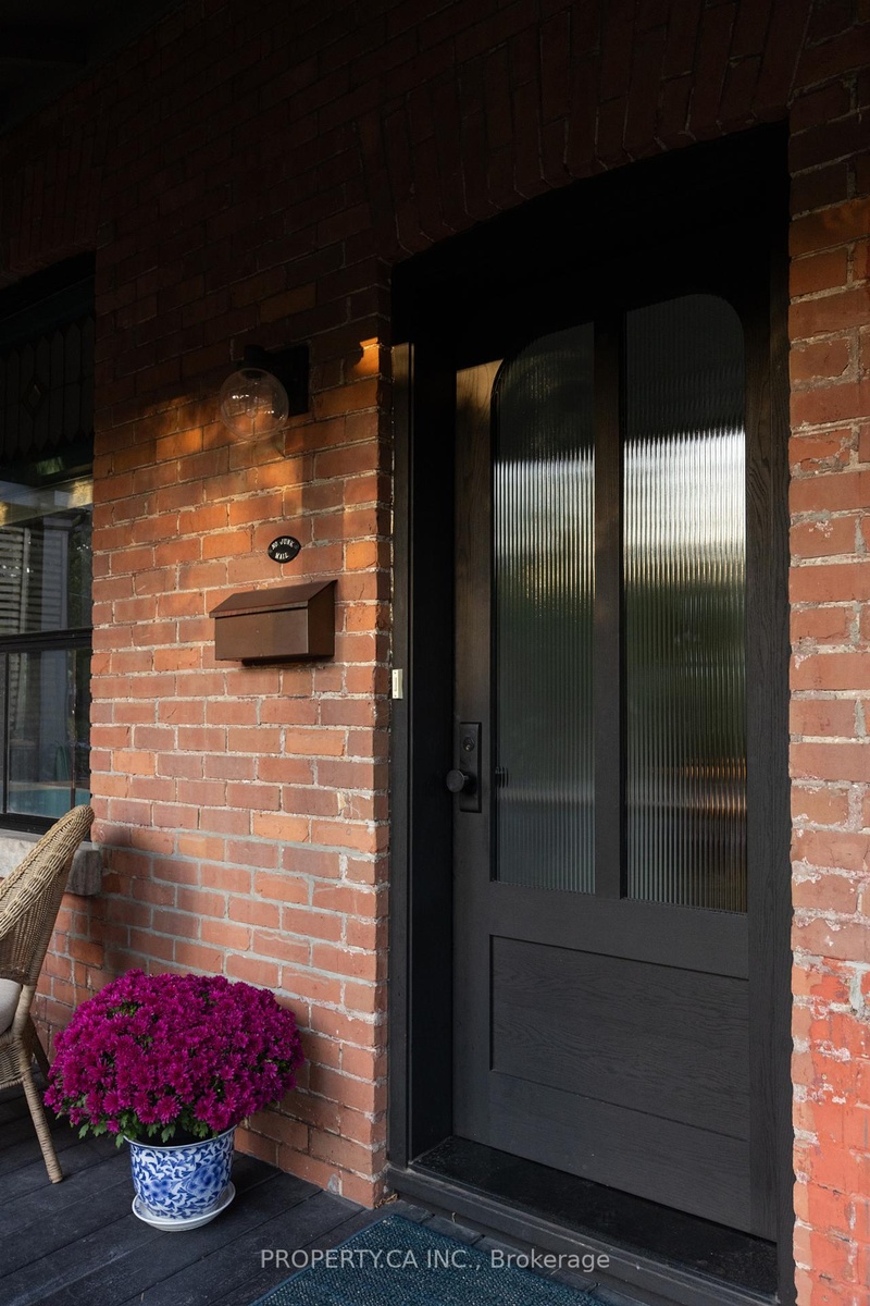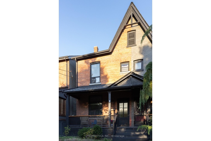 This is a rare Riverdale home that balances history and heart. A bright, thoughtful, designer-owned space that perfectly marries heritage charm with modern design. Nestled on a quiet tree-lined street, this beautifully cared-for home has been lovingly owned, maintained, and renovated by professional designers. Inside, soaring 10 ft ceilings and a fully open-concept main floor create a light filled living space with clear sitelines. Large east- and west-facing windows bring in natural light all day, while restored original 1899 flooring and matching double-height baseboards maintain the homes authentic Victorian character. The custom kitchen features locally crafted cabinetry, a Caesarstone countertop and backsplash, gas range with integrated hood fan, under-mounted extra-deep sink, and full suite of built-in appliances. Marble mosaic tile welcomes you in both the front and rear entries, while dimmable pot lighting and all-copper electrical wiring (no knob-and-tube) provide safety and atmosphere throughout. The home opens to a private urban oasis, lush backyard framed by evergreens, forsythia, and a lilac tree, all enclosed by a new 2023 cedar fence. Enjoy morning coffee or a night cap on the front deck overlooking a tulip tree, rhododendron, irises, and lavender, with stunning views of neighbouring gardens and a historic church.
