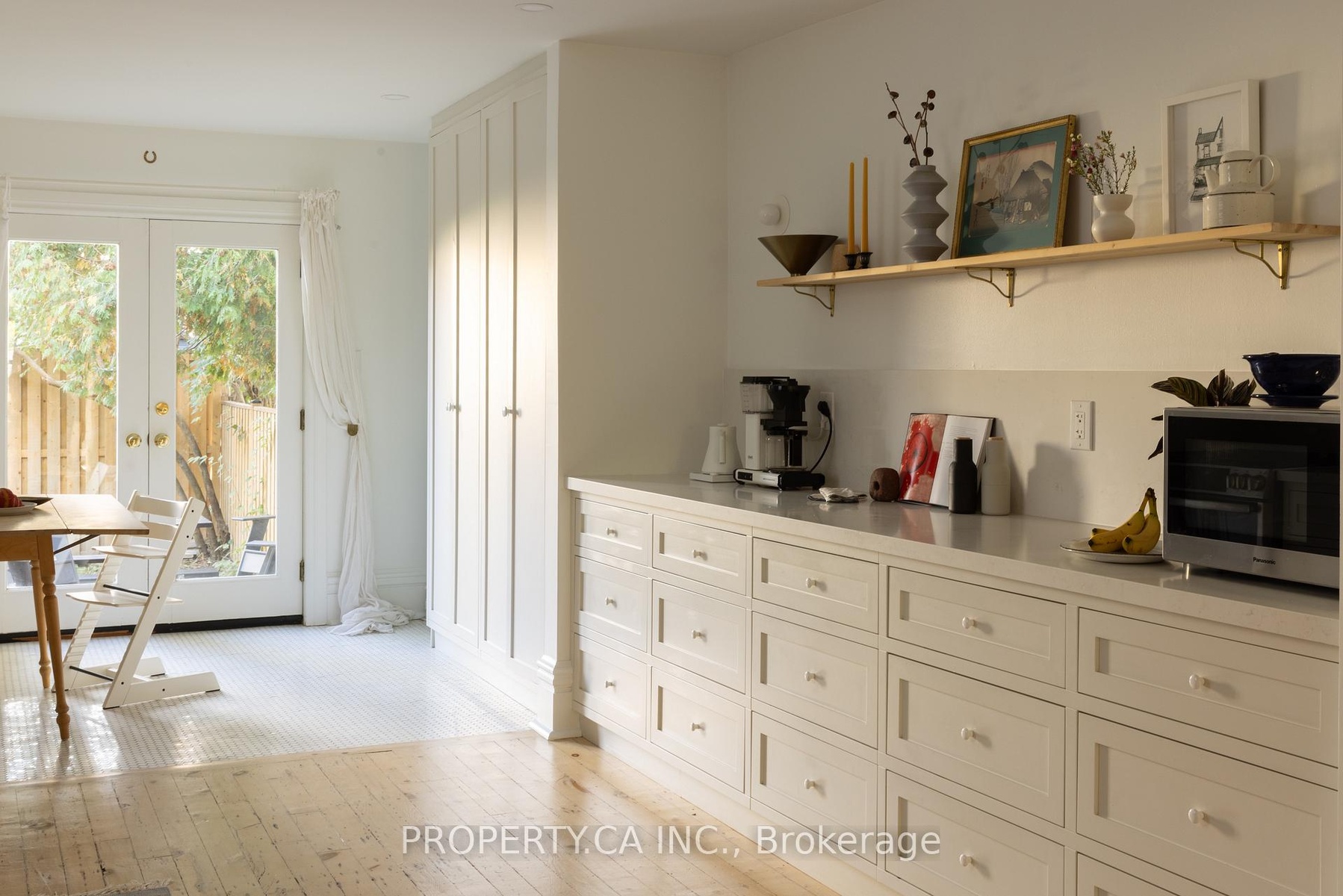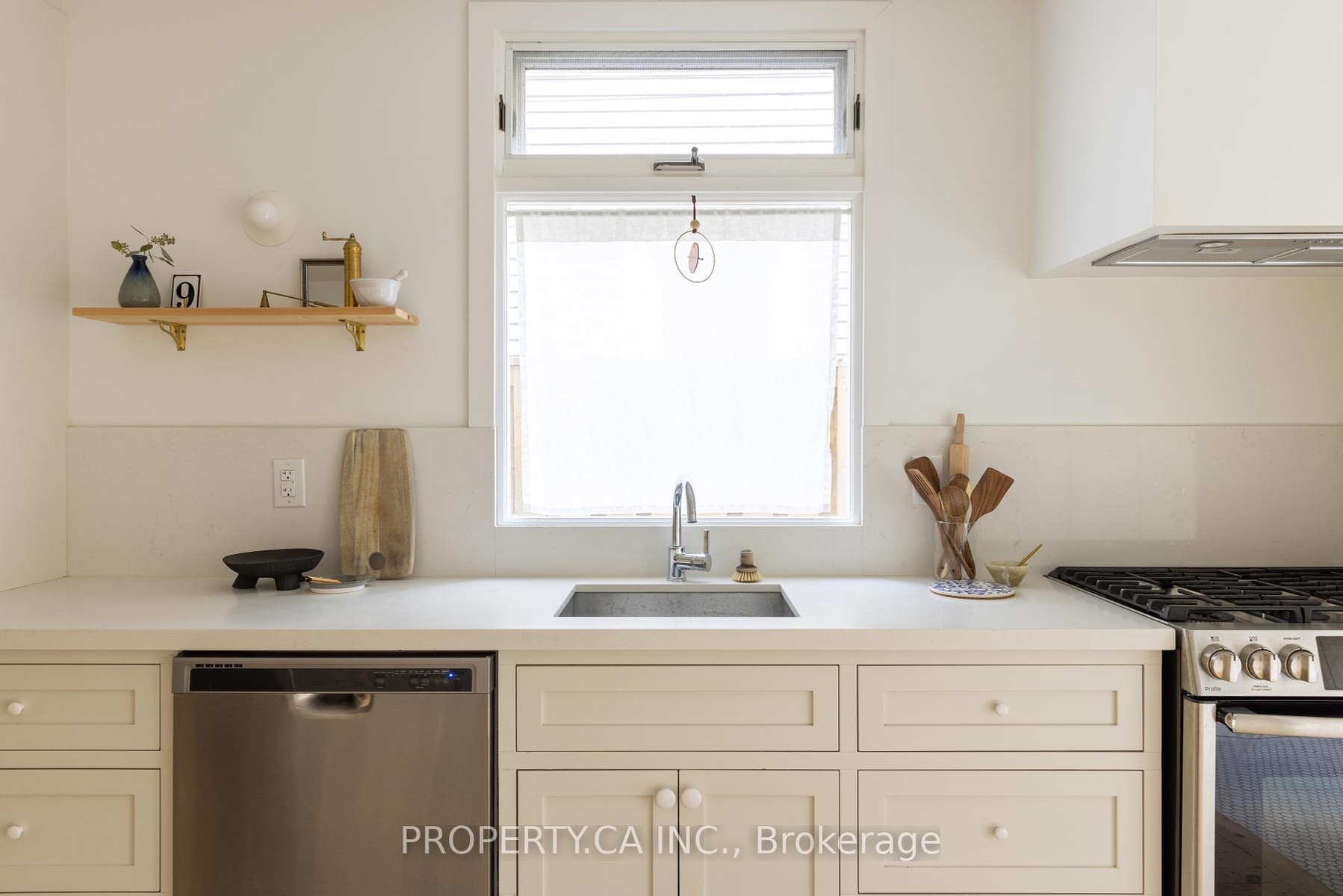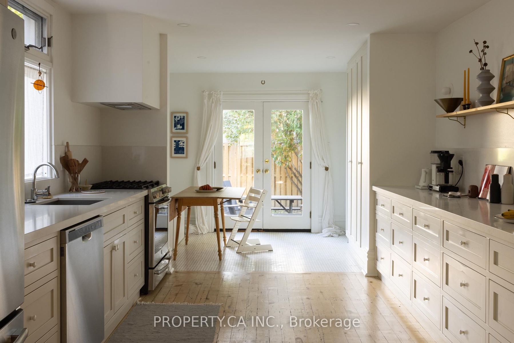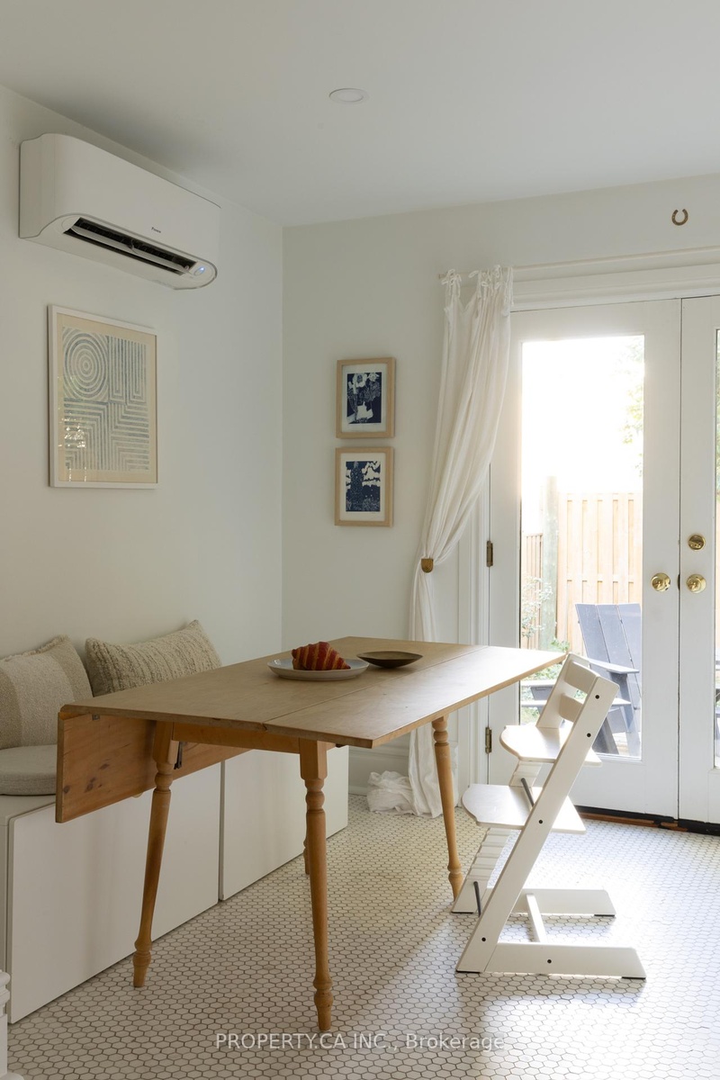 This is a rare Riverdale home that balances history and heart. A bright, thoughtful, designer-owned space that perfectly marries heritage charm with modern design. Nestled on a quiet tree-lined street, this beautifully cared-for home has been lovingly owned, maintained, and renovated by professional designers. Inside, soaring 10 ft ceilings and a fully open-concept main floor create a light filled living space with clear sitelines. Large east- and west-facing windows bring in natural light all day, while restored original 1899 flooring and matching double-height baseboards maintain the homes authentic Victorian character. The custom kitchen features locally crafted cabinetry, a Caesarstone countertop and backsplash, gas range with integrated hood fan, under-mounted extra-deep sink, and full suite of built-in appliances. Marble mosaic tile welcomes you in both the front and rear entries, while dimmable pot lighting and all-copper electrical wiring (no knob-and-tube) provide safety and atmosphere throughout. The home opens to a private urban oasis, lush backyard framed by evergreens, forsythia, and a lilac tree, all enclosed by a new 2023 cedar fence. Enjoy morning coffee or a night cap on the front deck overlooking a tulip tree, rhododendron, irises, and lavender, with stunning views of neighbouring gardens and a historic church.
