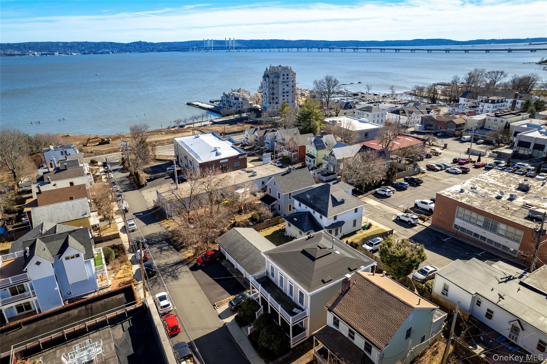 - Aerial view of residential area featuring a notable bridge and a nearby body of water
