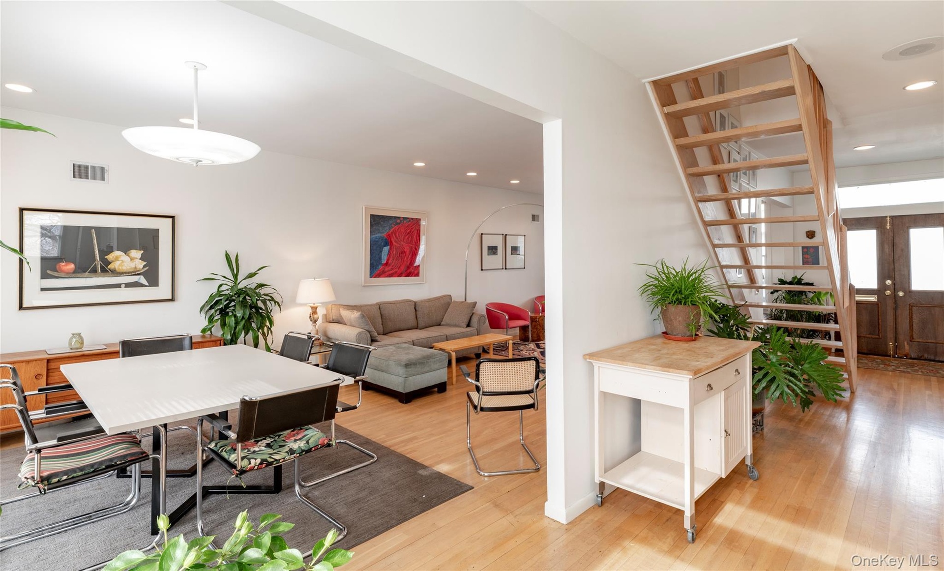 Wonderful 1920 Italianate Colonial home is only steps away from North Broadway and an easy walk down to the river. Enjoy the Hudson views from a large open balcony. Wonderful open and modern floor plan. Artistic and tasteful home with great natural light, wood floors, spacious rooms, three full bathrooms, central air, fantastic back deck, and stone patio in the backyard. Den on main level could be 4th bedroom. Granite counter in kitchen. Relax on your front porch or take a quick walk to Runcible Spoon and the new We Love Bread bakery and cafe for your morning coffee and tasty baked goods. Easy stroll into town with all the great shops and eateries. Or walk down the street to watch the sailboats on the river. Sunrises that will take your breath away. A lovely home with great creative energy!