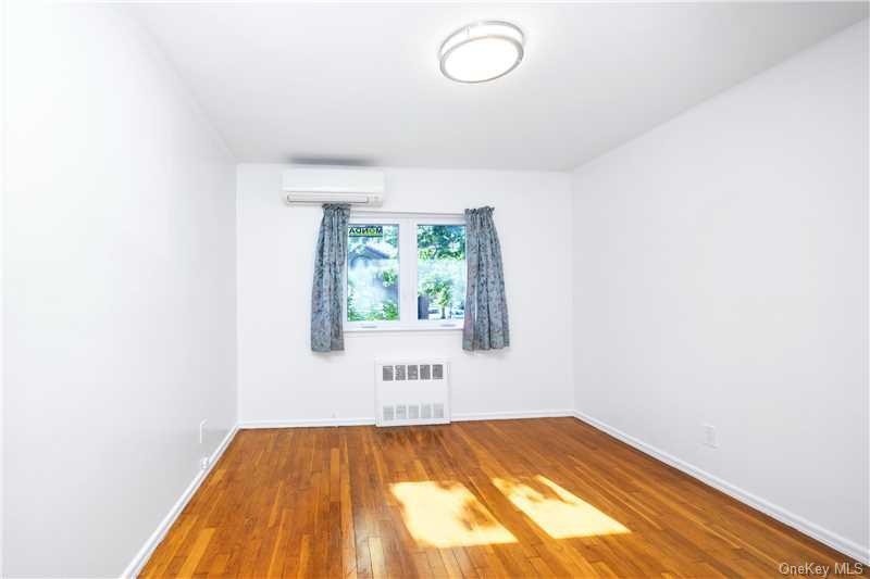 - Spare room featuring hardwood / wood-style floors, radiator heating unit, and a wall mounted air conditioner