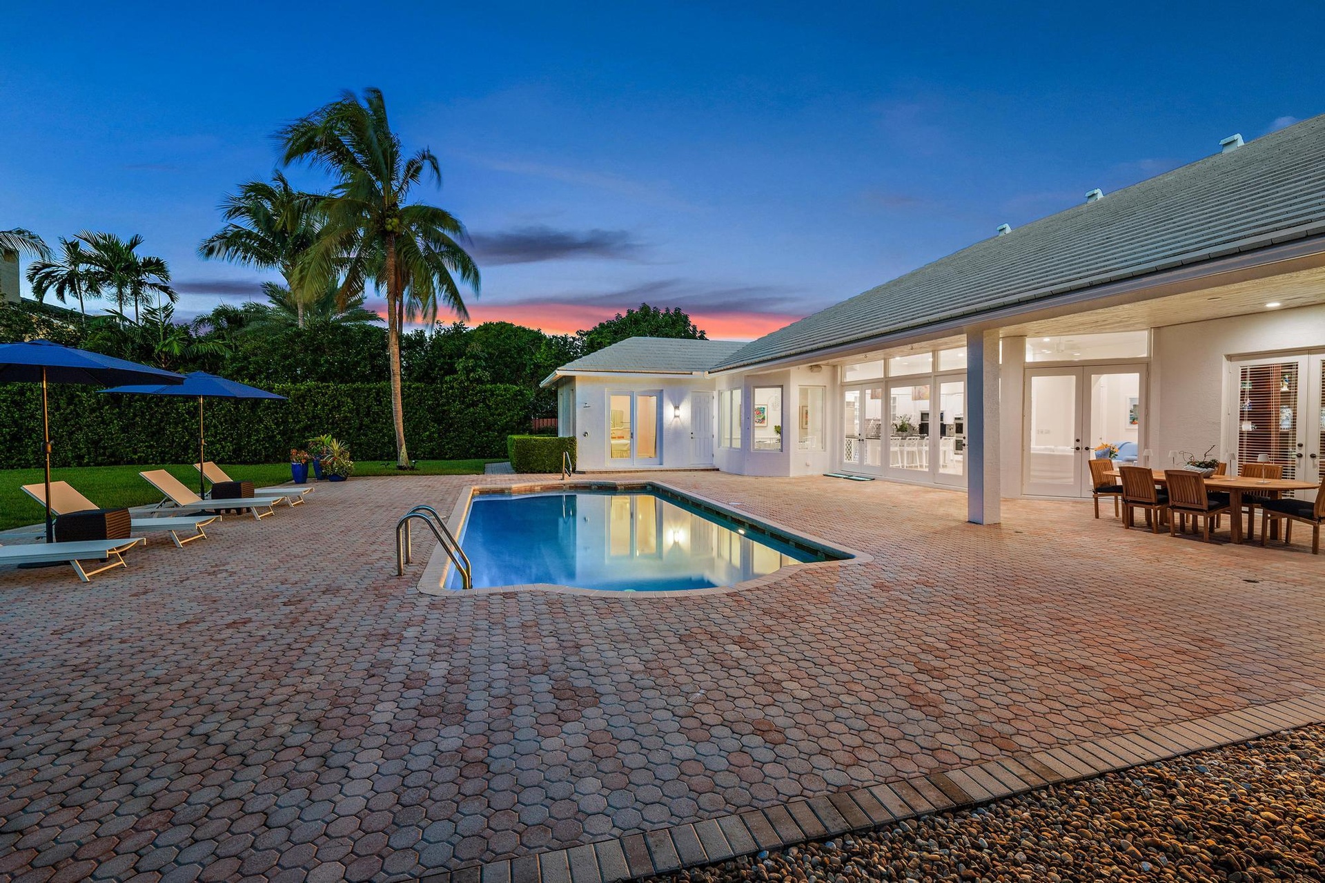 One of the finest lots in all of North Palm Beach...A HUGE yard, 75' of water frontage, 55'dock, 16k lb boat lift, NO fixed bridges - All located only minutes to North Palm Beach Country Club! Enjoy luxury living on this extremely rare .64 acre waterfront property in the Village of North Palm Beach. This impeccable property presents endless possibilities with the current residence boasting 3,630 sq ft of living space and 5,023 total sq ft, featuring 5 bedrooms, 1 or 2 offices, TV room and a spacious open-concept kitchen and great room that overlook the sparkling swimming pool and vast backyard, complete with mature, lush hedges for ultimate privacy.Move in, renovate, or design and build your own dream custom estate, this unique lot offers a canvas for creating your ideal home. The...