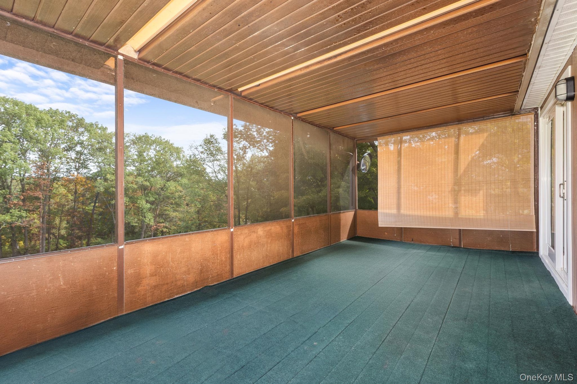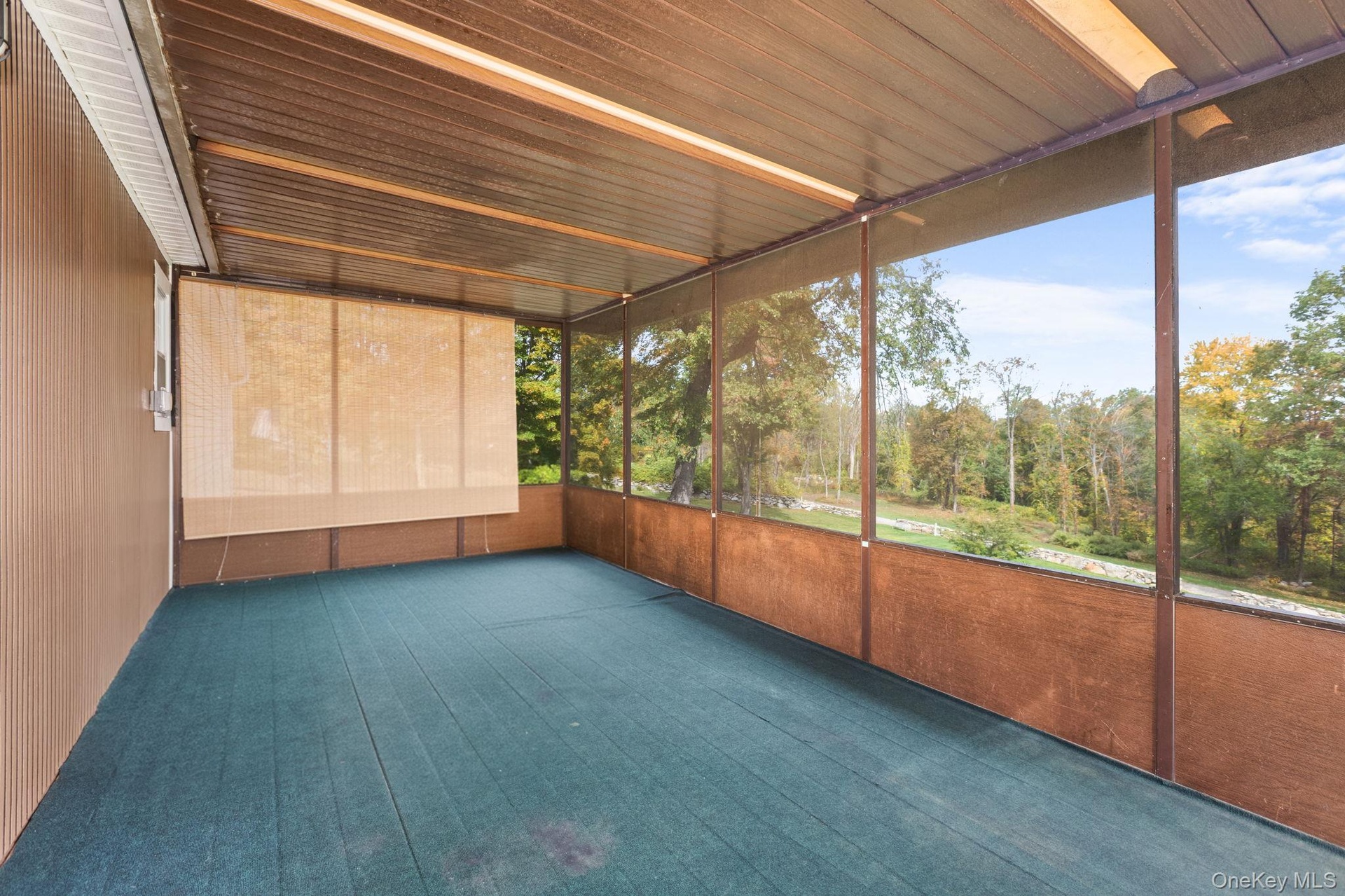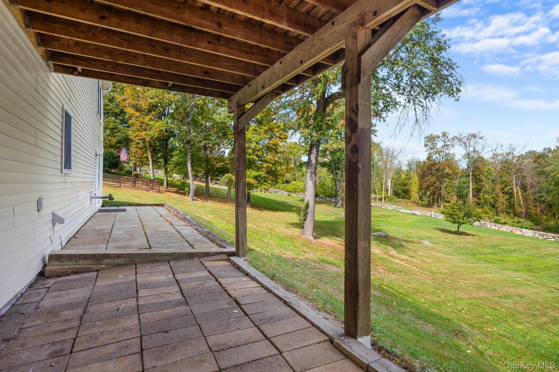- The sliders from the family room lead to this covered stone patio-sit and enjoy the serenity of the seasons