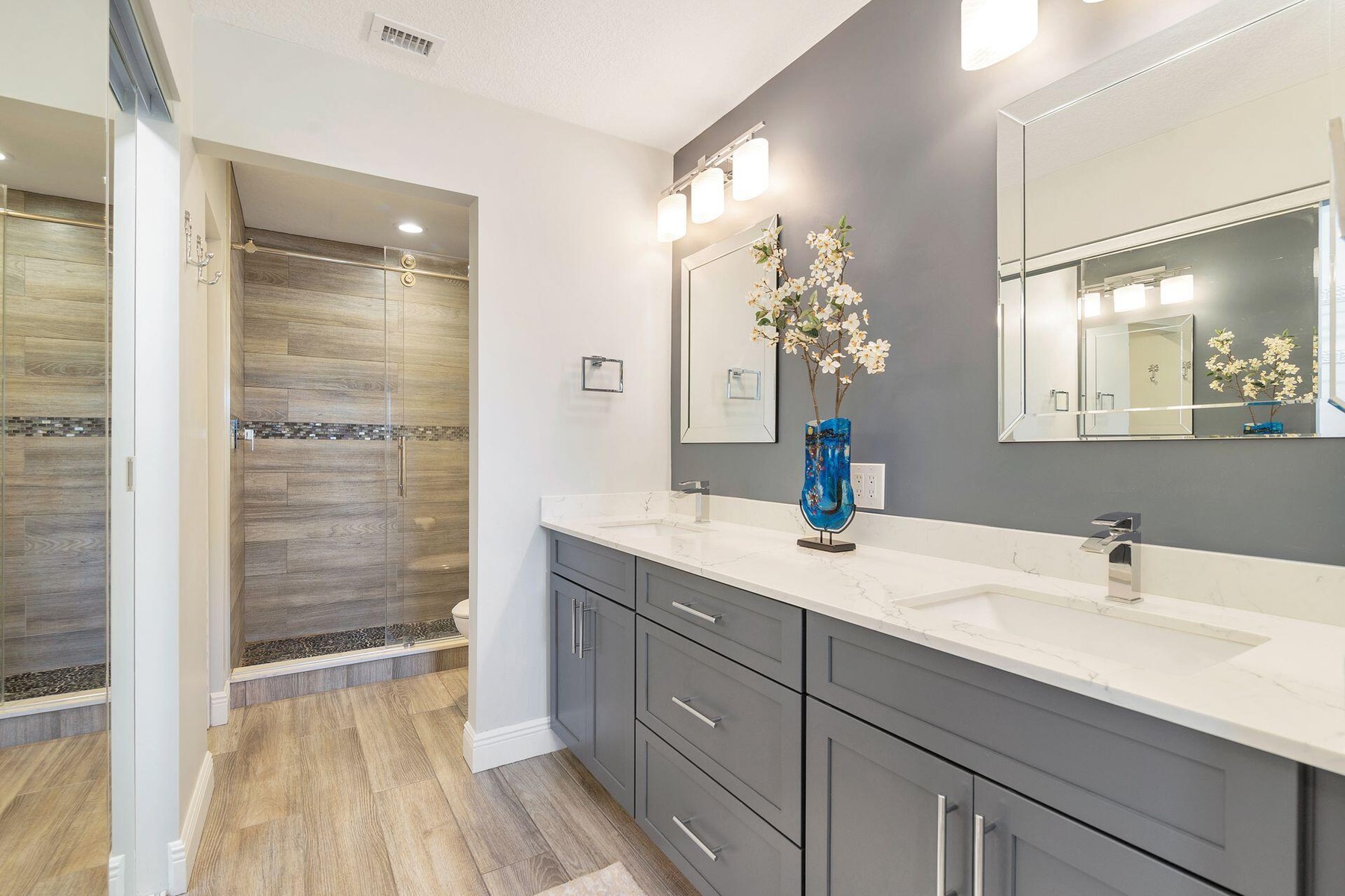 DescriptionWatch the parade of Boats go by and dock your boat from this beautifully renovated 3 bedroom 3 bath home. Impact windows & doors throughout. Entertaining is effortless w/an open living area to kitchen w/white quartz counters, white shaker cabinets & s/s appliances. Enjoy ocean breezes from your covered screened-in patio w/fan or BBQ on your uncovered patio of 24X24 white marble tile. All 3 bathrooms have been completely remodeled w/designer tiles& quartz counters. There are 2 very large private bedrooms upstairs w/ensuite bathrooms & plantation shutters. Panoramic waterviews await you from the primary suite. Large walk-in closet, linen closet,double sinks in vanity& frameless glass shower enclosure.Newly renovated clubhouse w/pool, fitness,spa & newly renovated marina & docks.