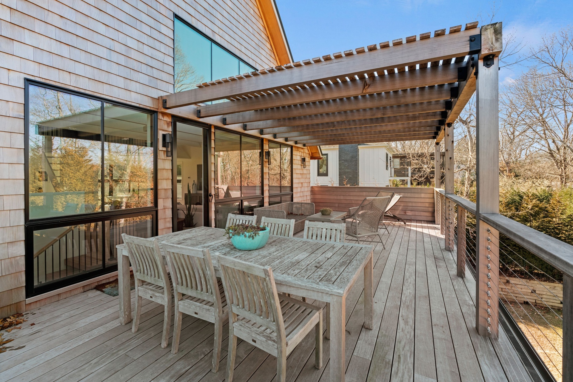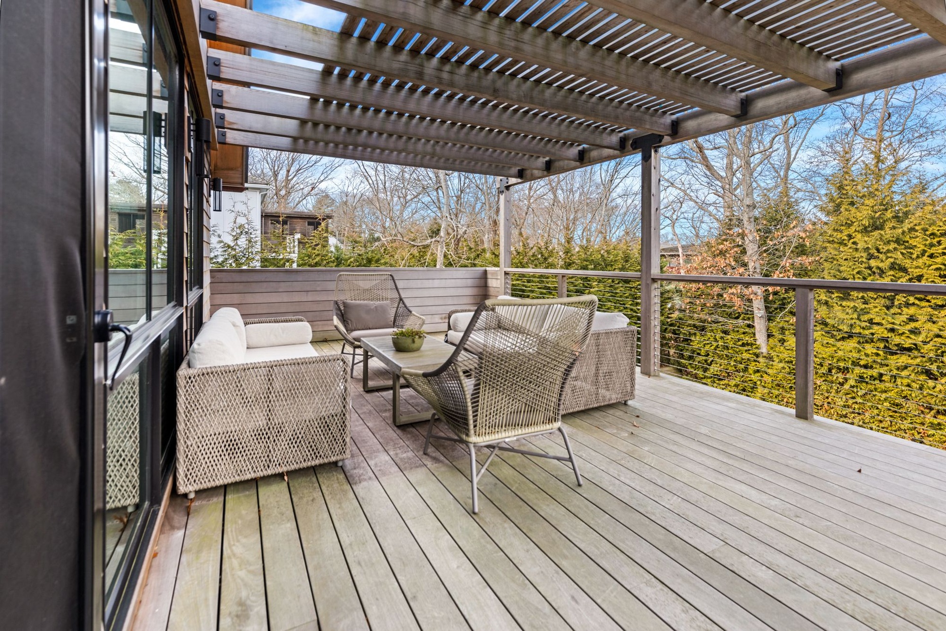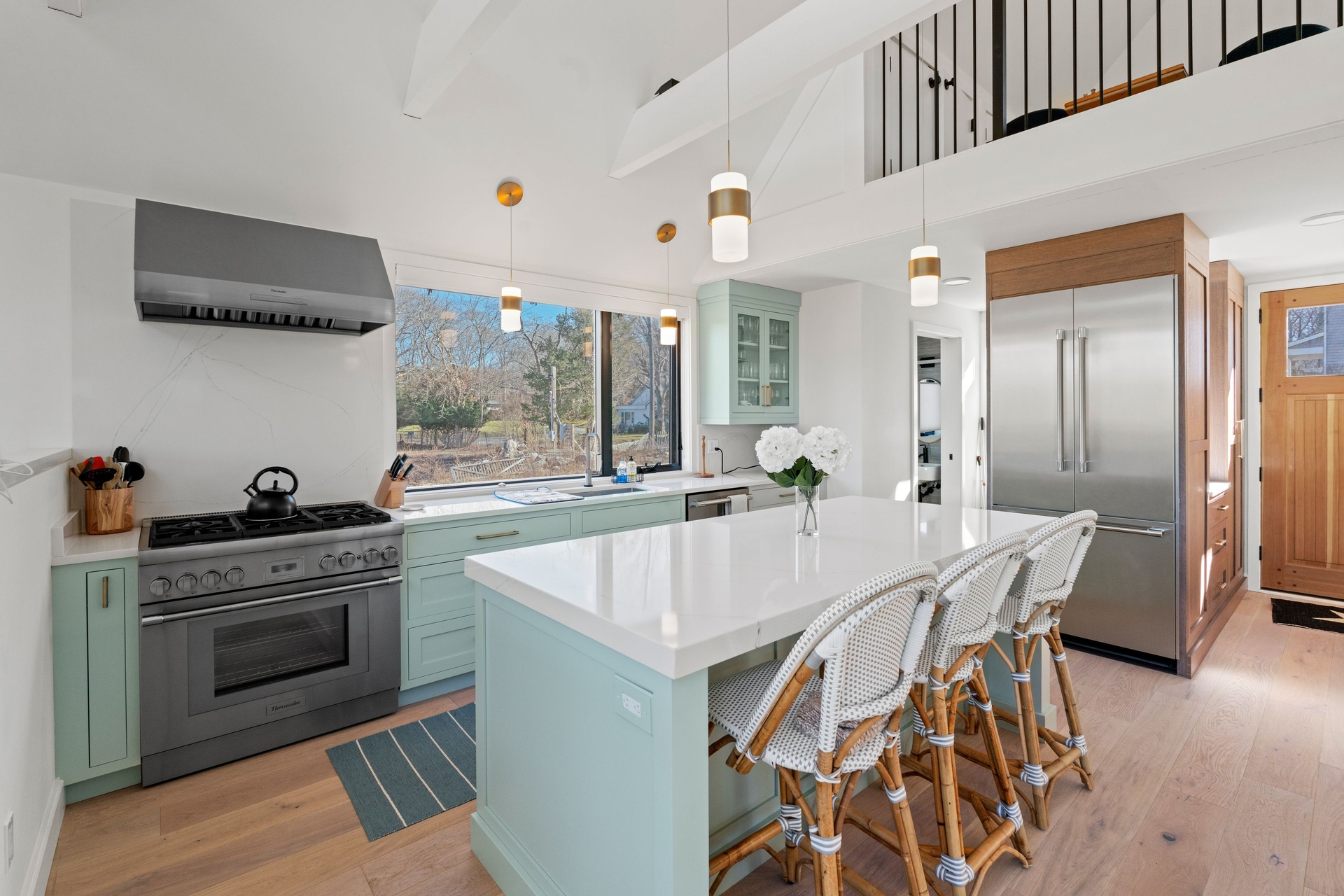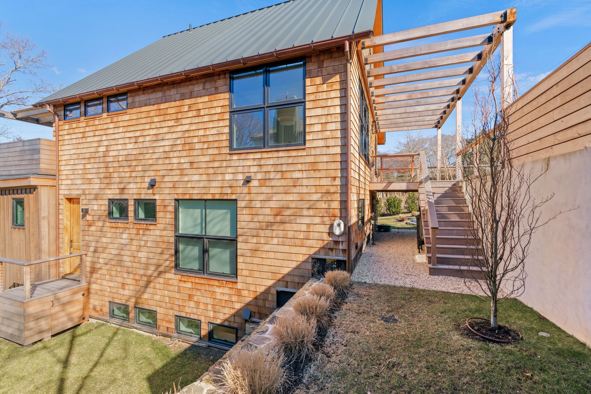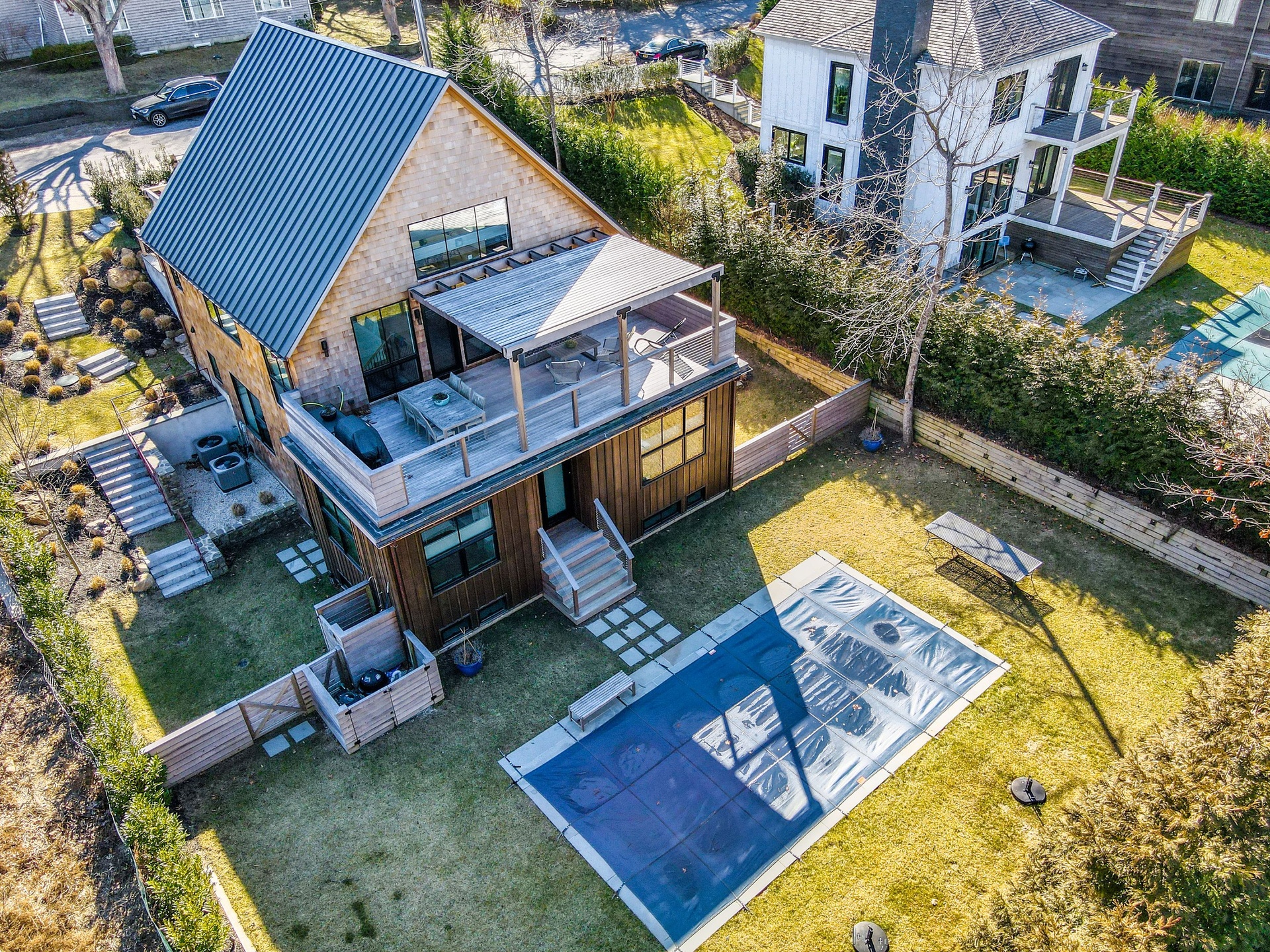 Newly Built - Private beach access. This cedar shingled modern cottage has 4 bedroom 3.5 baths, with all the bells and whistles one could ask for!. High end appliances, radiant flooring on the lower level, HVAC 3 zones, Quartz custom designed counter tops and backsplash- Gym and Media room and a full office on the lower level. A 16 x 40 Gunite pool.The Beach is just a stones throw away. Rental comes with 2 vintage his and her Gary bikes. It's a must see.