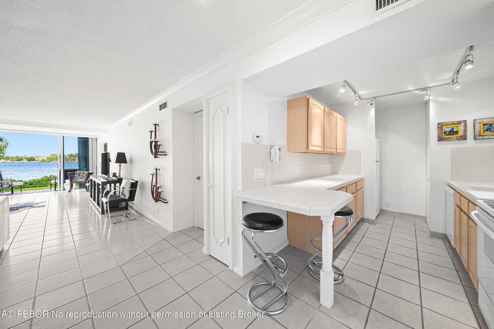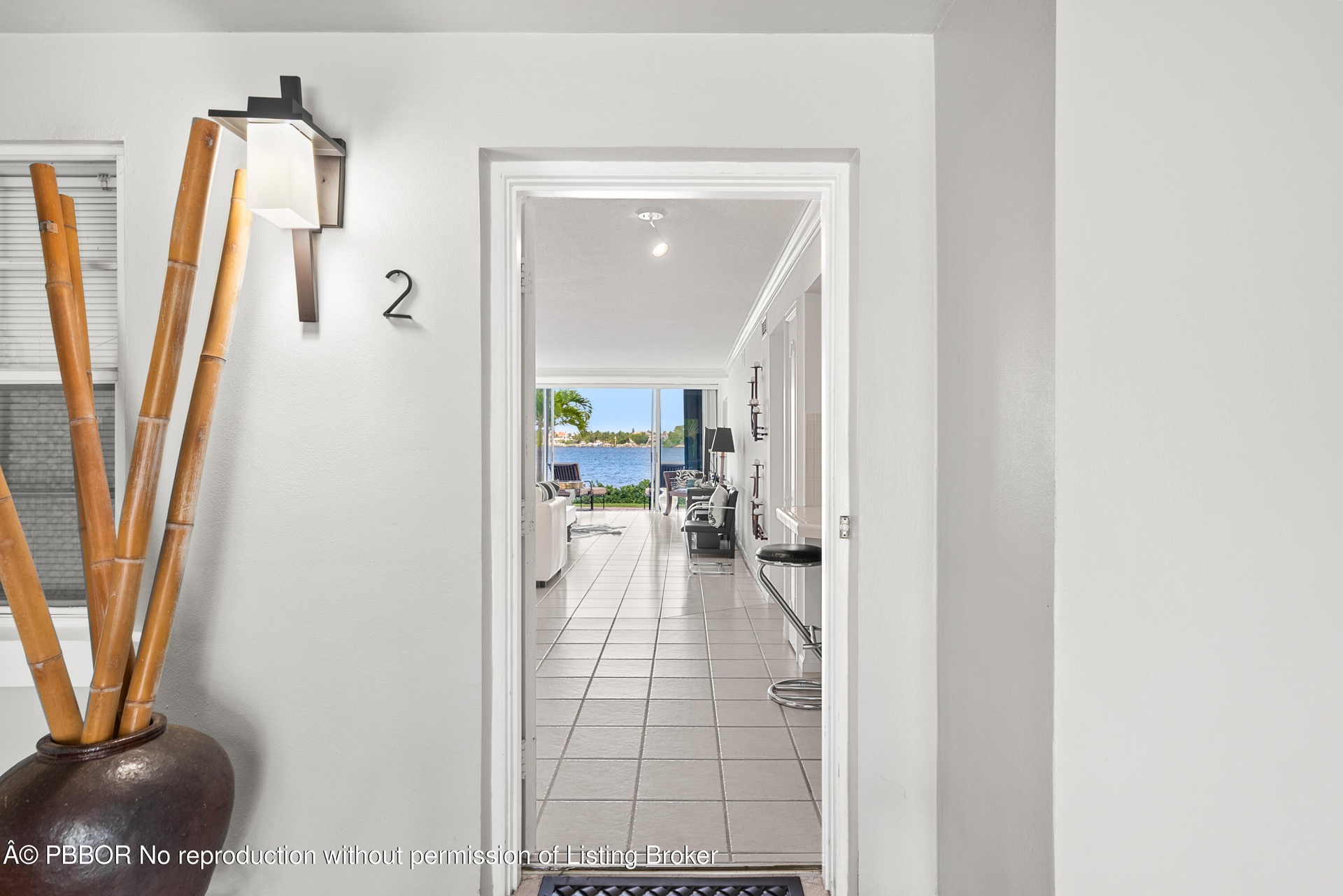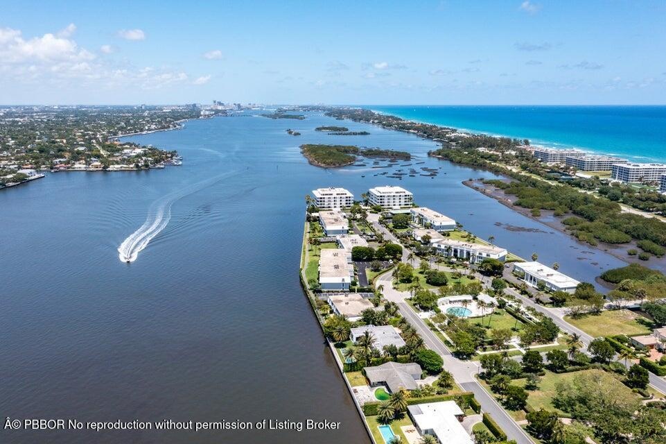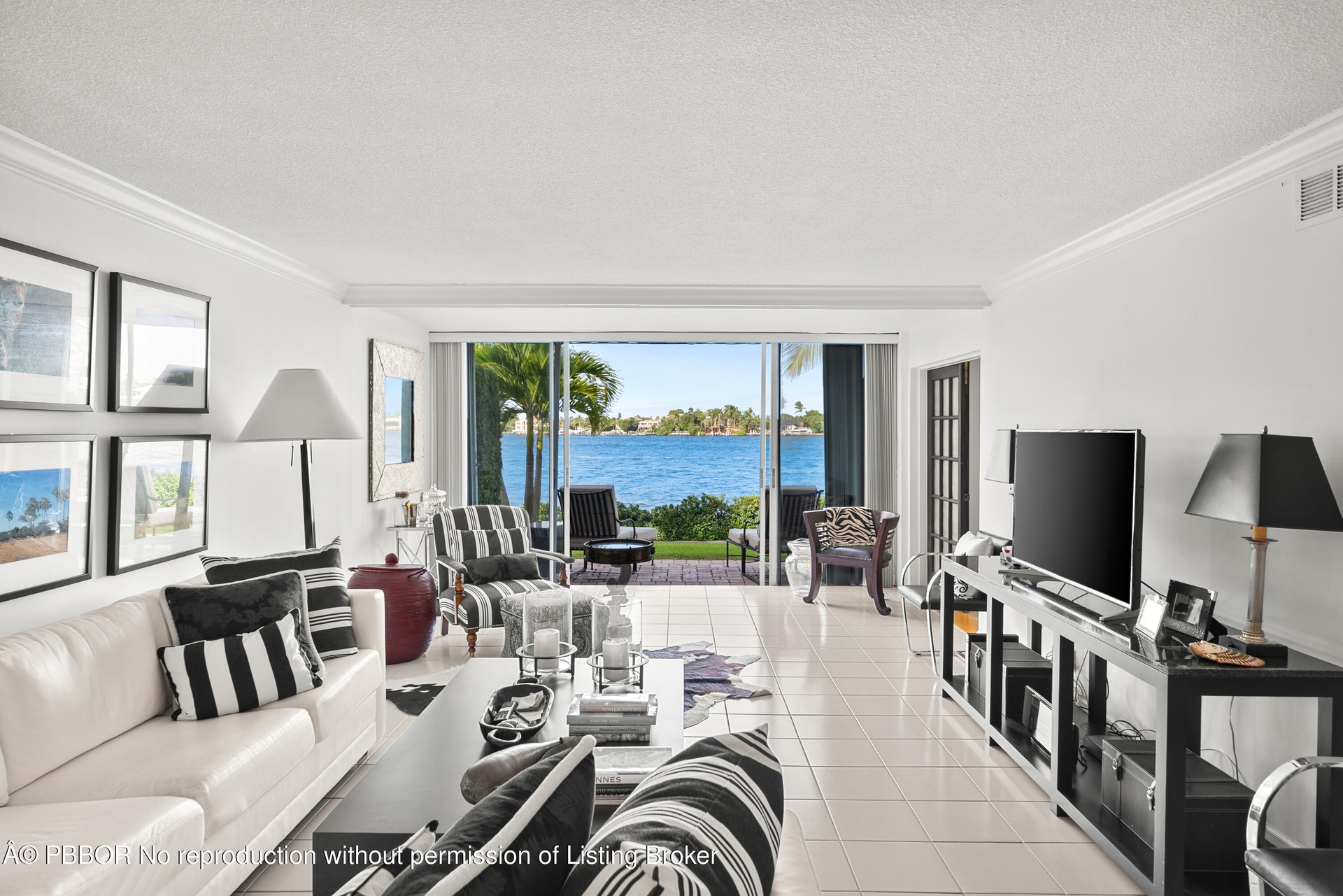 Spectacular direct Intracoastal views from every room! Floor-to-ceiling sliders open to a spacious lanai with retractable awning, perfect for relaxing, watching boats, and enjoying glorious sunsets. This serene and private residence lives like a home, offering over 1,000 sq. ft. of interior space with tile floors and a modern feel. The updated kitchen includes a washer/dryer, and the spacious one-bedroom layout showcases the same stunning views as nearby multimillion-dollar estates. Villa Tambour is an intimate 6-unit building with newly decorated pools and green space, across from Phipps Ocean Park and Palm Beach Tennis Center. Walk to the PB Par 3 golf course or take a short drive to Worth Avenue, five-star hotels, fine dining, and cultural centers. Pet-friendly!