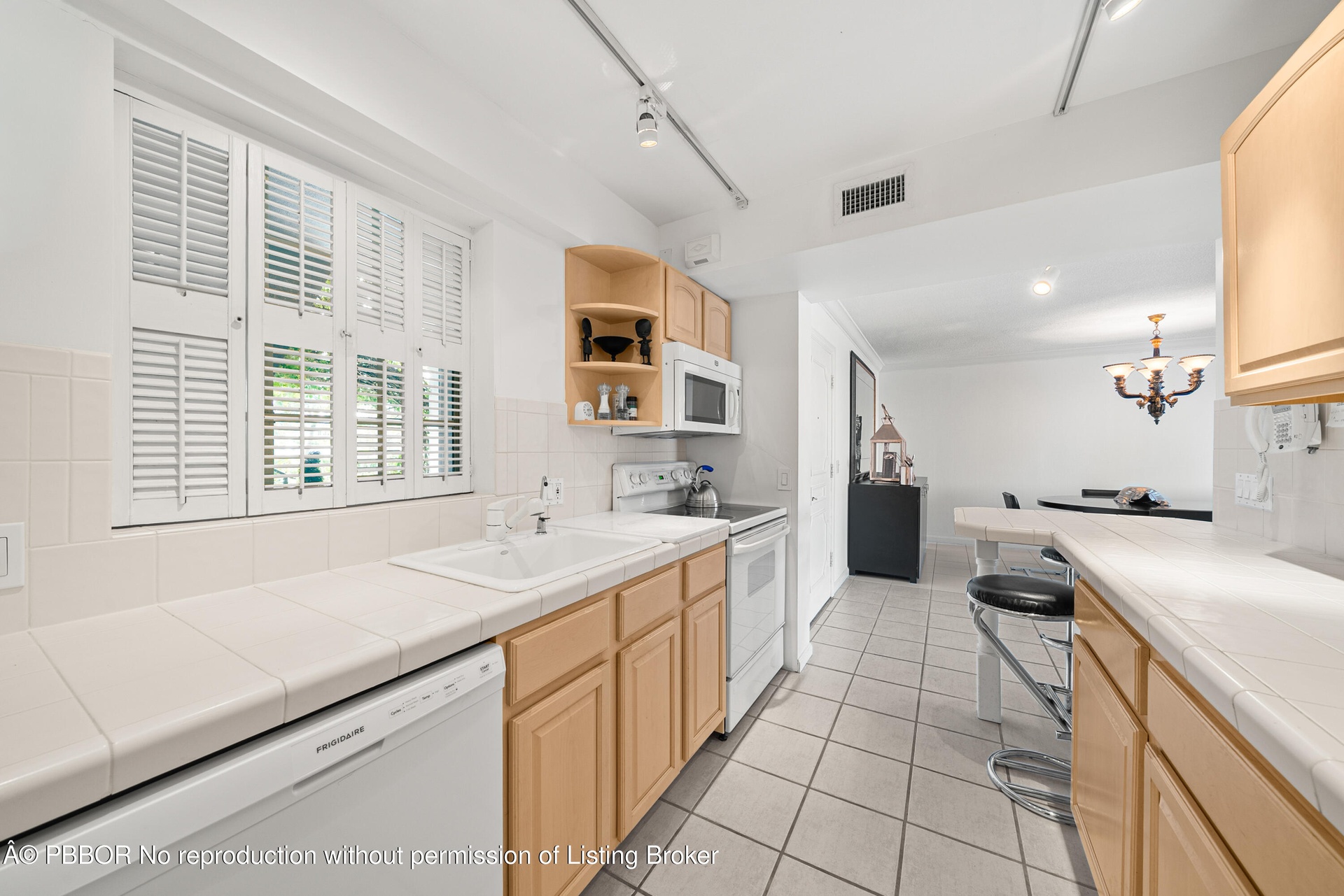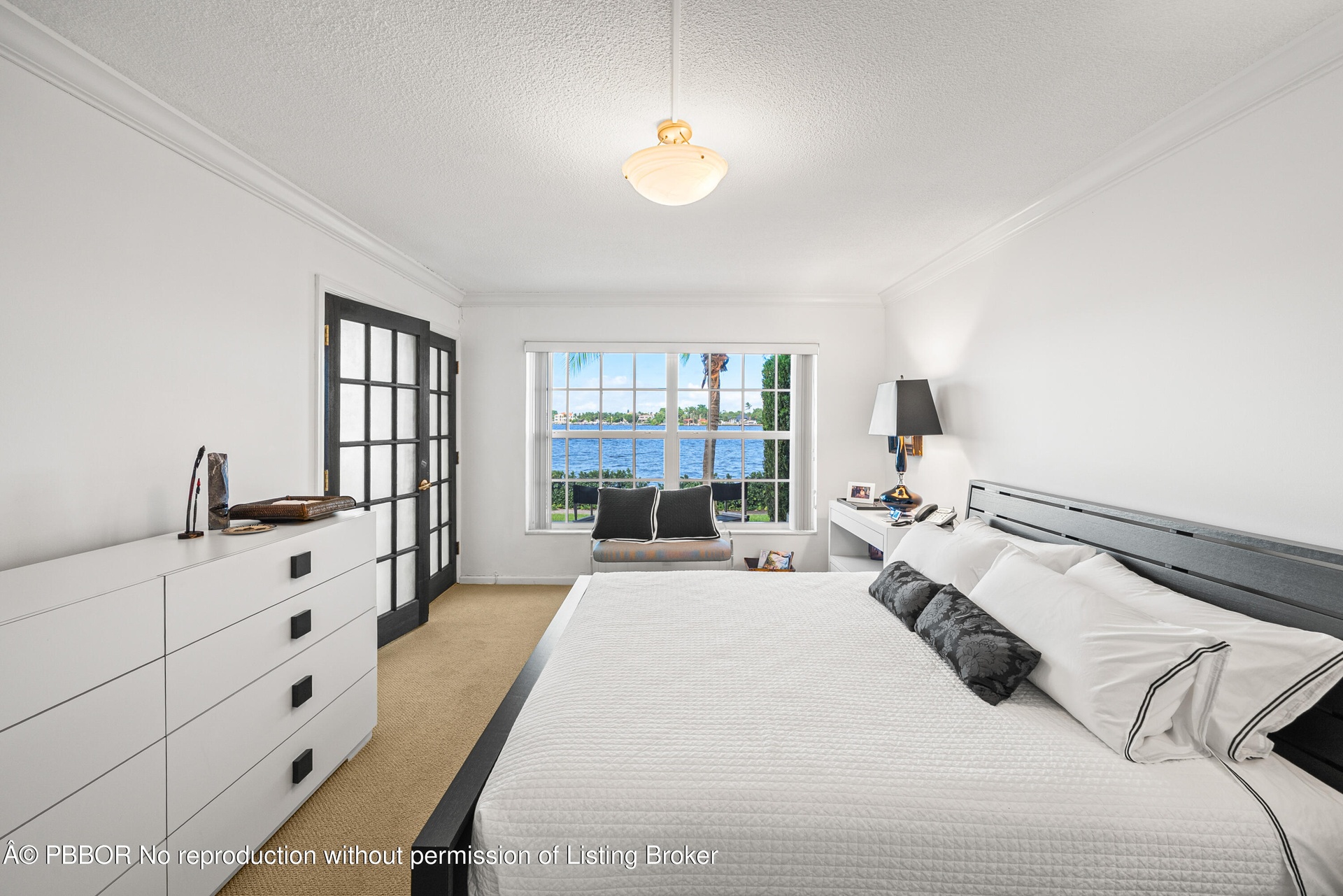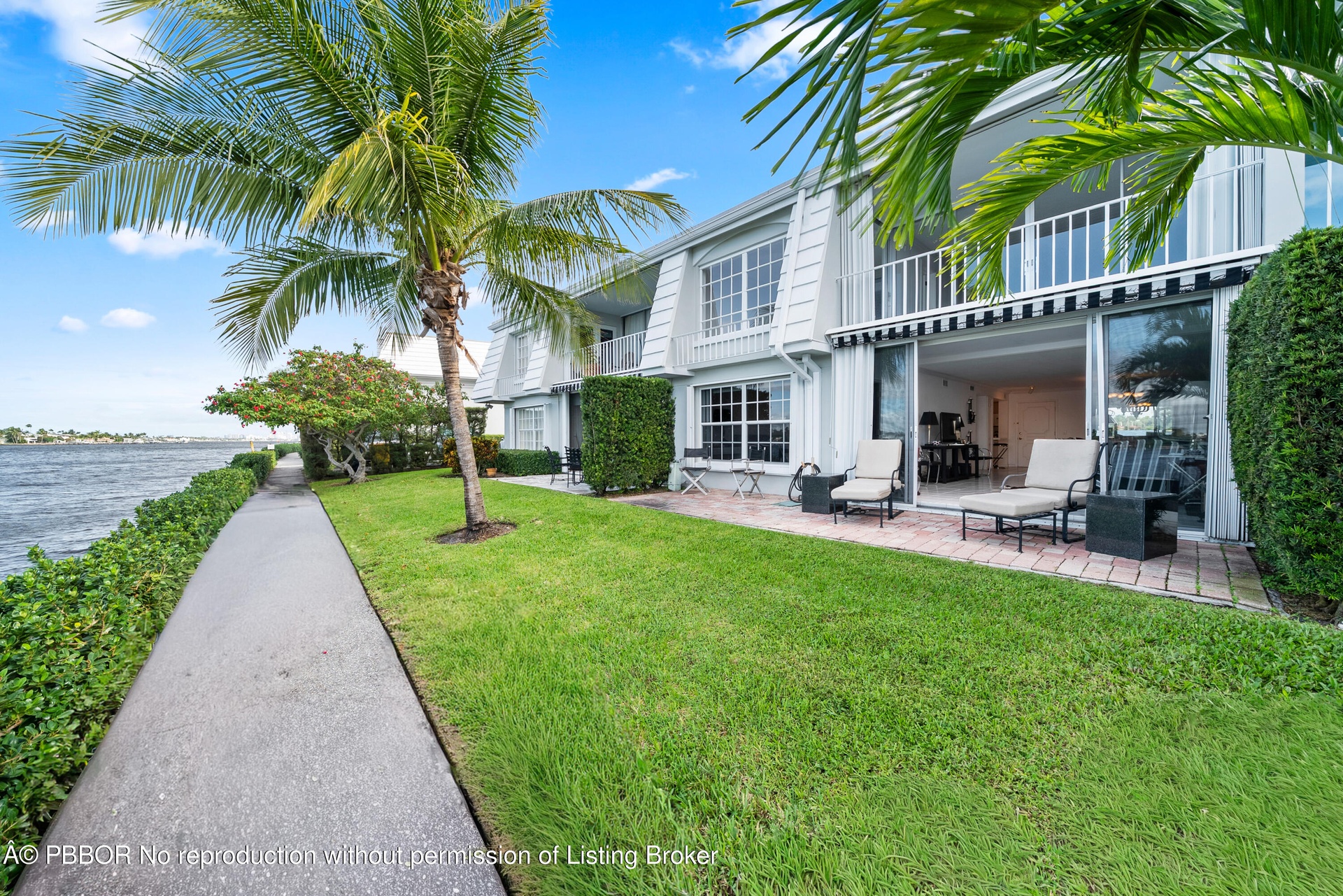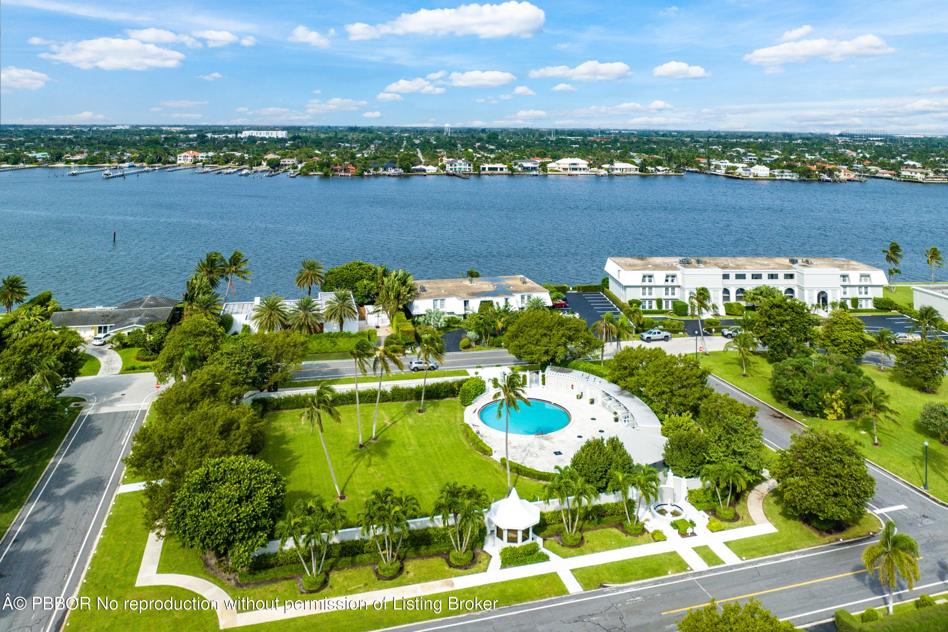 Spectacular direct Intracoastal views from every room! Floor-to-ceiling sliders open to a spacious lanai with retractable awning, perfect for relaxing, watching boats, and enjoying glorious sunsets. This serene and private residence lives like a home, offering over 1,000 sq. ft. of interior space with tile floors and a modern feel. The updated kitchen includes a washer/dryer, and the spacious one-bedroom layout showcases the same stunning views as nearby multimillion-dollar estates. Villa Tambour is an intimate 6-unit building with newly decorated pools and green space, across from Phipps Ocean Park and Palm Beach Tennis Center. Walk to the PB Par 3 golf course or take a short drive to Worth Avenue, five-star hotels, fine dining, and cultural centers. Pet-friendly!