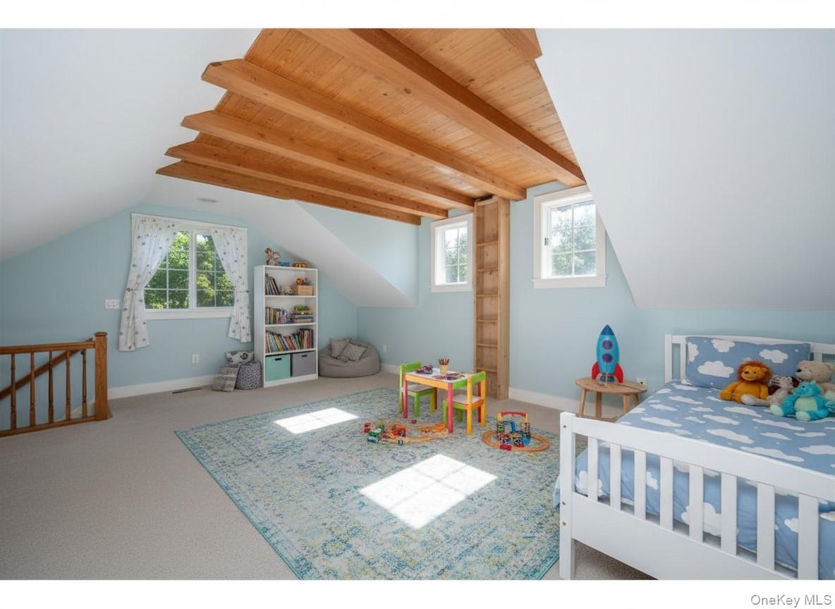 - Bonus room featuring light colored carpet and wooden ceiling