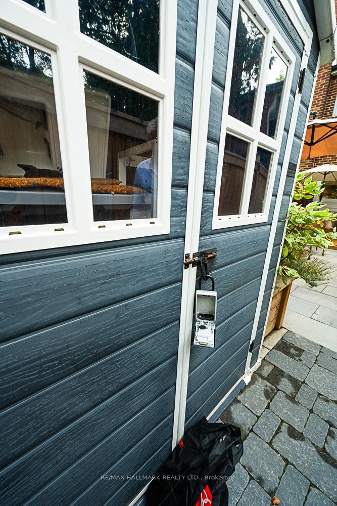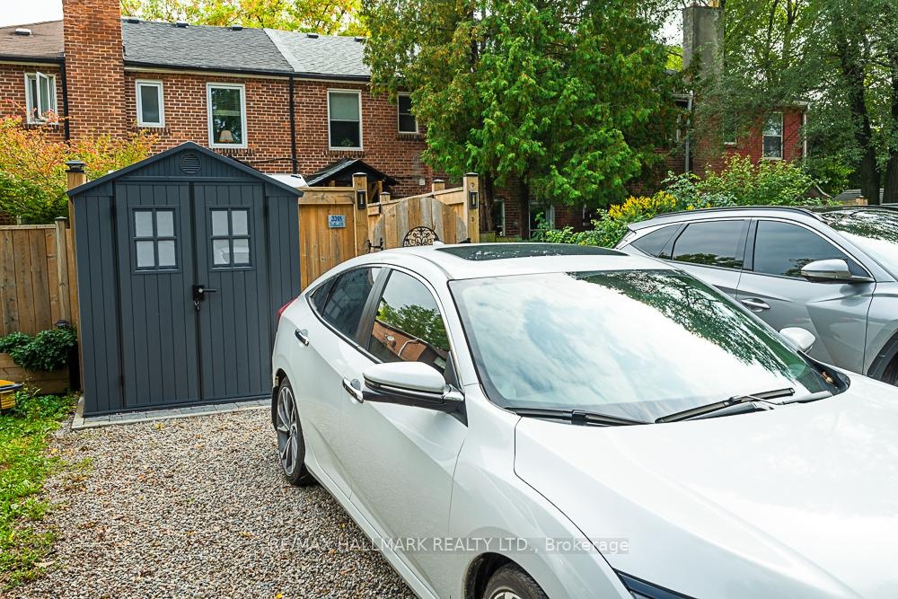 CUTE, QUIET, BRIGHT and CHARMING - This 2 bedroom, freehold, family starter with TWO PRIVATE PARKING SPOTS, perfectly situated in a highly sought-after location. THIS HOME IS IN EXCELLENT CONDITION, meticulously maintained, cared-for and UPGRADED. Steps to top-rated schools, synagogues, shops, restaurants, public transit & parks. PRIVATE BACKYARD: solar-powered, new privacy fence, a spacious deck for summer gatherings (NOTE: garden furniture included, as well as TWO garden sheds. INSIDE: stainless steel appliances, a gas stove, and premium oak HARDWOOD floors, crown mouldings, pot lights. UPSTAIRS: generous primary bedroom (easily big enough for a KING-SIZED BED) and a cozy second bedroom; NEW flooring as well as a freshly updated 4-piece bathroom. BASEMENT: custom built-in spacious laundry area, lots of storage & LOTS of upgrades. See list attached. HI-EFF gas furnace, 100 amp wiring. This is a sweet gem... Come by the OPEN HOUSE THANKSGIVING WEEKEND, Sat & Sun 2:00 - 4:00