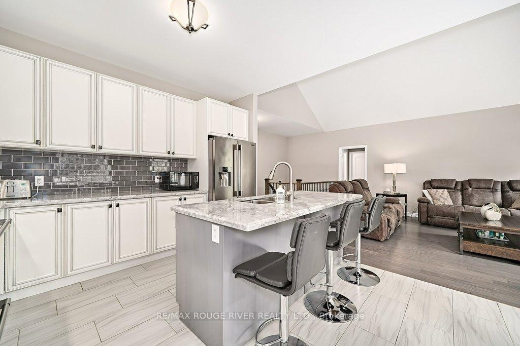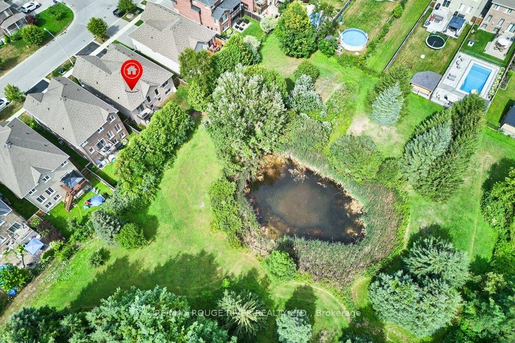 Finally ... A Bungalow with a Dining Room! Quality All Brick Helminen Built Home. The Featured "I Wants": 9 Ft Flat Ceilings, a Cathedral Ceiling, Main Floor Laundry to name a few. All on a 53 Ft Frontage backing on to a Green Space in a Quiet Enclave just off Courtice Rd. Ample Parking and 9 Ft Doors to Double Heated Garage and Direct Entry to Home. Generous 1726 Ft Floorplan Plus a further 1467 Sq Feet on the Lower Level. Finished Landing and with a Rough-in Bath and 4 Large Bright Windows This Offers Huge Potential for Additional Living. The Primary Bedroom is complete with an En-suite and Double Glass Shower, a Walk-in Closet and Overlooks the Quiet Pond and Greenspace. Soaring Cathedral Ceiling in the Family Room with Gas Fireplace also Overlooks the Private backyard. The 2nd Bedroom offers Teens or Guests quiet Enjoyment overlooking the Porch. A 4 Pce Bath at the door for convenience. The Open Kitchen Features Ample Granite Counterspace plus Ceramic Backsplash and S/S Fume Hood. The Granite Topped Island overlooks the Family Room and the Breakfast Room with its Sliding Glass Door to Bbq Deck and Yard and Features a Sink and Dishwasher. A Bonus to this Home is the Spray Foamed Insulated Exterior Walls Up and Down plus The Heated Garage Ceiling and R-70 Insulation in the Homes Ceilings ... Very Comfortable and Economical Heating and Cooling plus Much Quieter indoors :) Clean Tidy and Ready For You. Please Enjoy the Virtual Tour for More Detail. 15 Minutes to Bowmanville or Oshawa and 4 Min Access to Highway 418 to the 401 and 407 :)