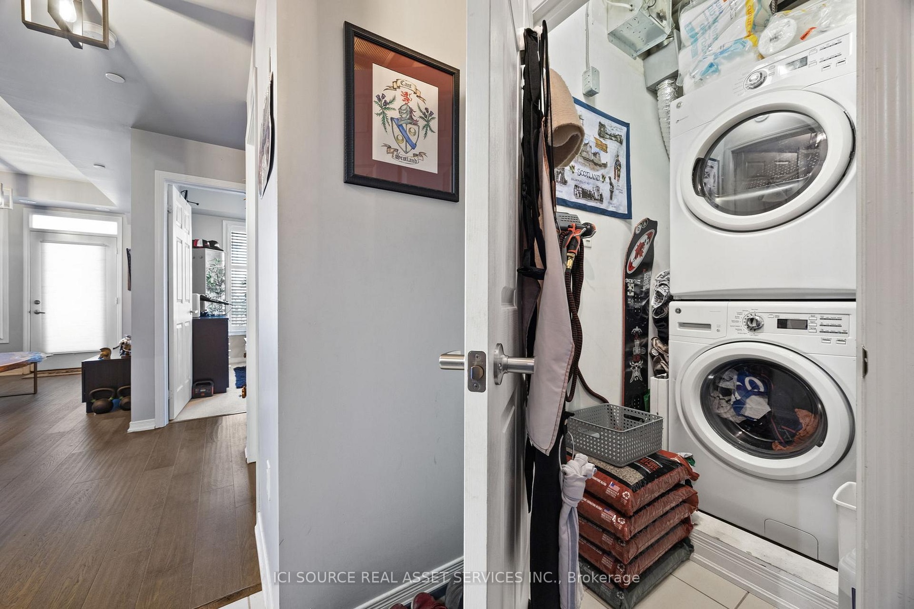 Easy Condo living on the ground level with assigned parking steps from the front door for convenience. Modern upgraded interior throughout including new light fixtures, flooring , contemporary wall papers and California shutters. A rare second emergency exit from living room to patio for outdoor enjoyment. Five appliances, ensuite laundry. Prime location near 401 & 407 higways, walking distance to public transportation, grocery stores and restaurants within the complex.