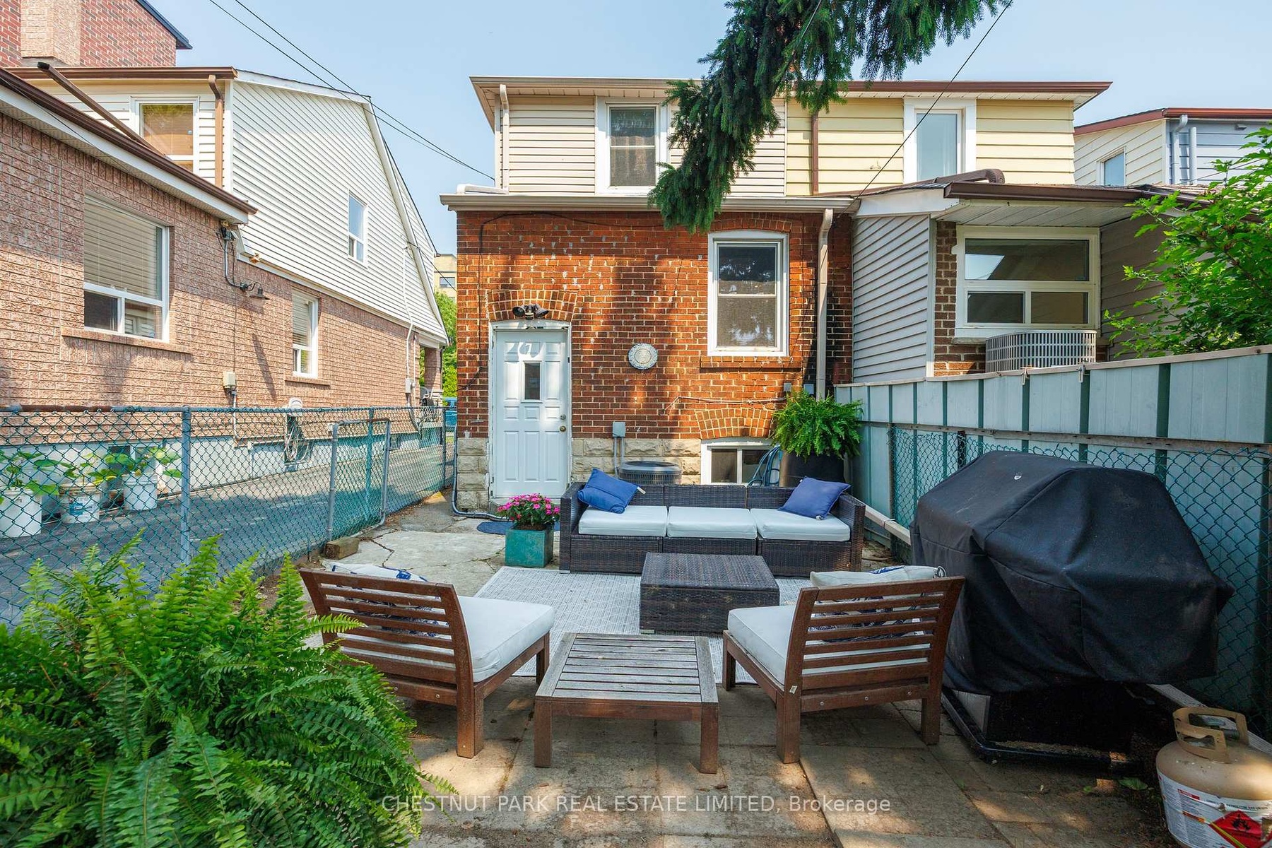 This cozy and beautifully updated 2-bedroom, 2-bathroom home perfectly blends classic charm with modern convenience in one of the city's most vibrant neighbourhoods. Thoughtfully renovated, it features new hardwood floors, a new roof, a new furnace, & air conditioning, ensuring year-round comfort and energy efficiency for years to come. Inside, you'll find a bright and functional layout with timeless details that add character throughout, including a second bedroom that can be used as a home office-perfect for remote work-and plenty of storage throughout. The open concept living space flows seamlessly to a private backyard patio, ideal for entertaining or quiet evenings outdoors. Just a short stroll to the lively shops, restaurants, and transit options on St. Clair West, this home offers the perfect mix of urban living and residential charm. A rare find in a sought-after neighbourhood that is ready for you to move in and enjoy!