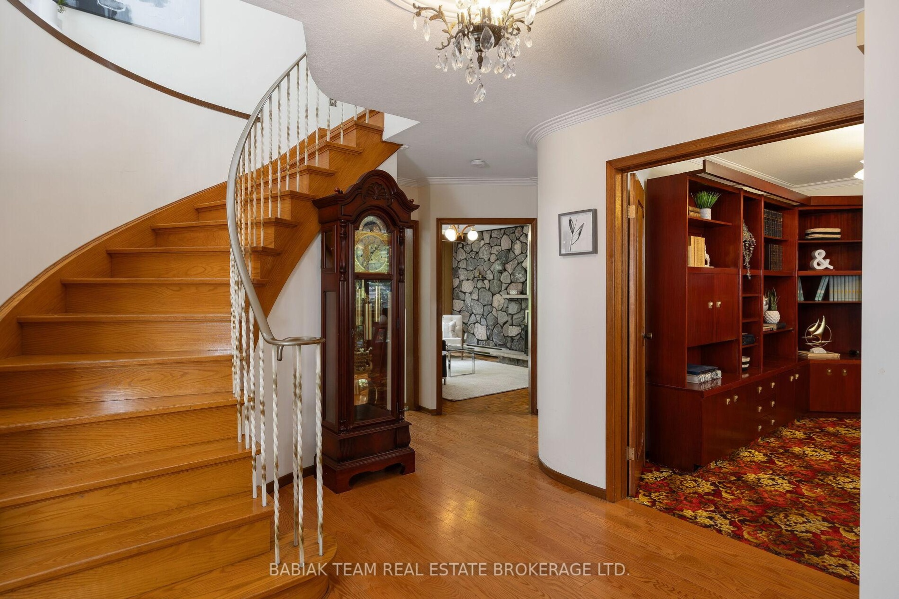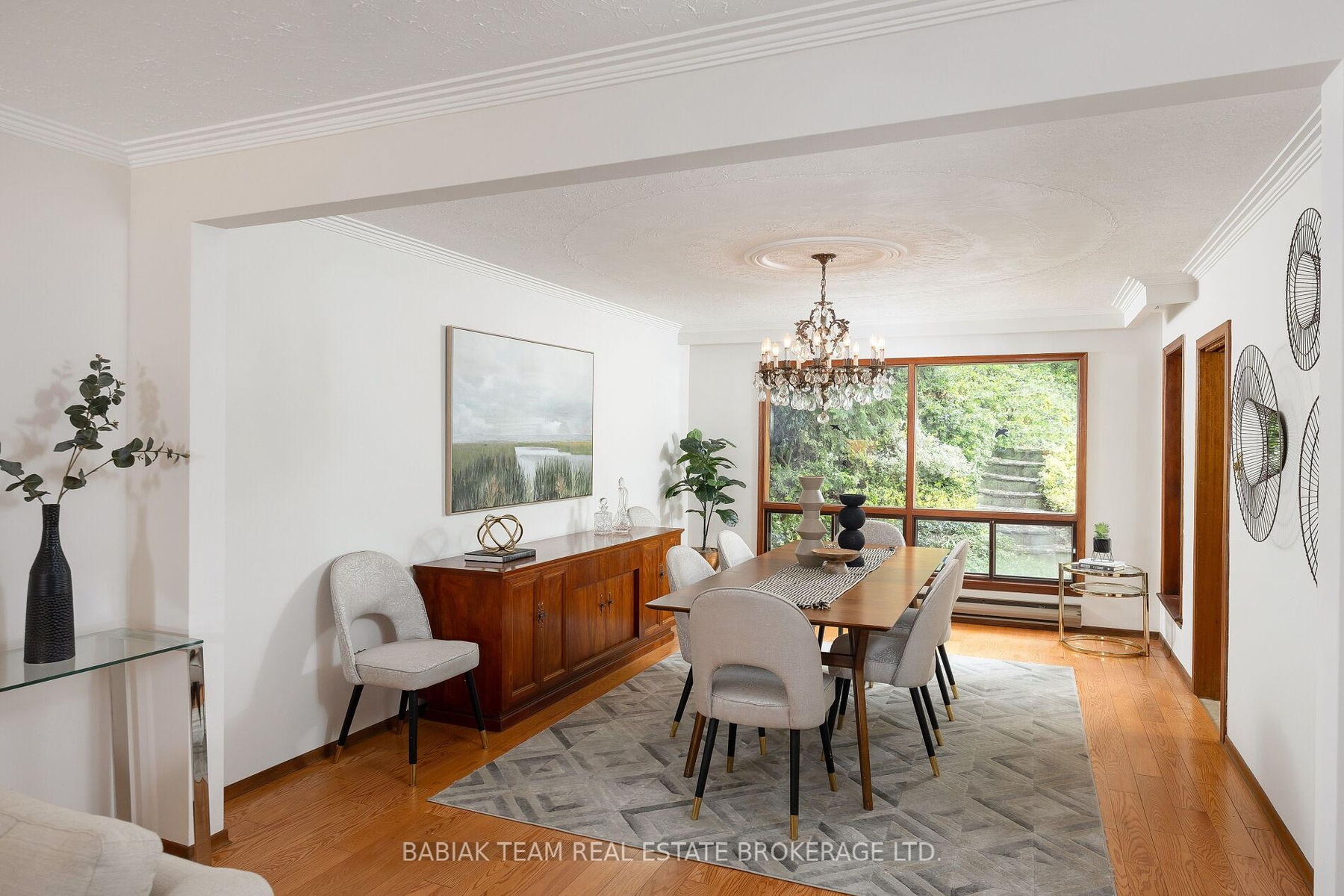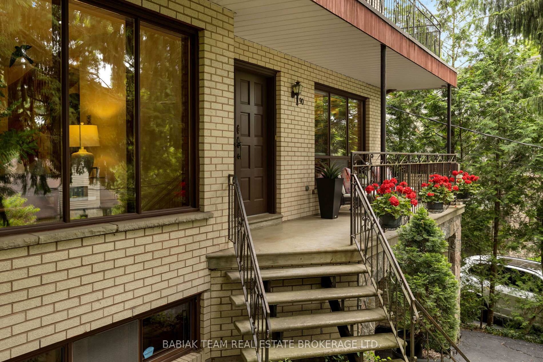 DescriptionAn impressive, custom 3+1 contemporary home located in a prime Old Mill/Baby Point enclave, offering 2,880 square feet of living space across three well-designed levels. Set in a peaceful, wooded ravine, this exceptional residence provides a serene, Muskoka-like retreat on a quiet, family-friendly cul-de-sac, just moments from the scenic Humber River trails. The super spacious main floor offers ample room for family and friends, featuring an open-plan living and dining room, an excellent kitchen with a walkout to the garden patio, and a family room highlighted by a charming fieldstone fireplace. A main floor office/den and powder room add to the functionality and flow of the space.Upstairs, the primary suite includes a two-piece ensuite, and balcony walk-out to 40' x 12' terrace. The lower level boasts a generous rec room with a front entry at grade, a laundry area, roughed-in three-piece bath, and a cold room.Lovingly maintained by the original owners, this home also includes a double private drive and a spacious double built-in garage (20 x 18.5). All within walking distance to Old Mill and Jane subway stations, and just a short stroll to the shops, services, cafes, and restaurants of Bloor West Village and Baby Point Gates. With its cottage-like setting in the heart of the city, this is a rare opportunity to enjoy a wonderful family home in a very special community. Home inspection, 3D Tour, Video, Floor Plans & House Data Available.Virtual Tour: https://tours.bhtours.ca/90-humberview-road-toronto/nb/Amenities- Carpet Free