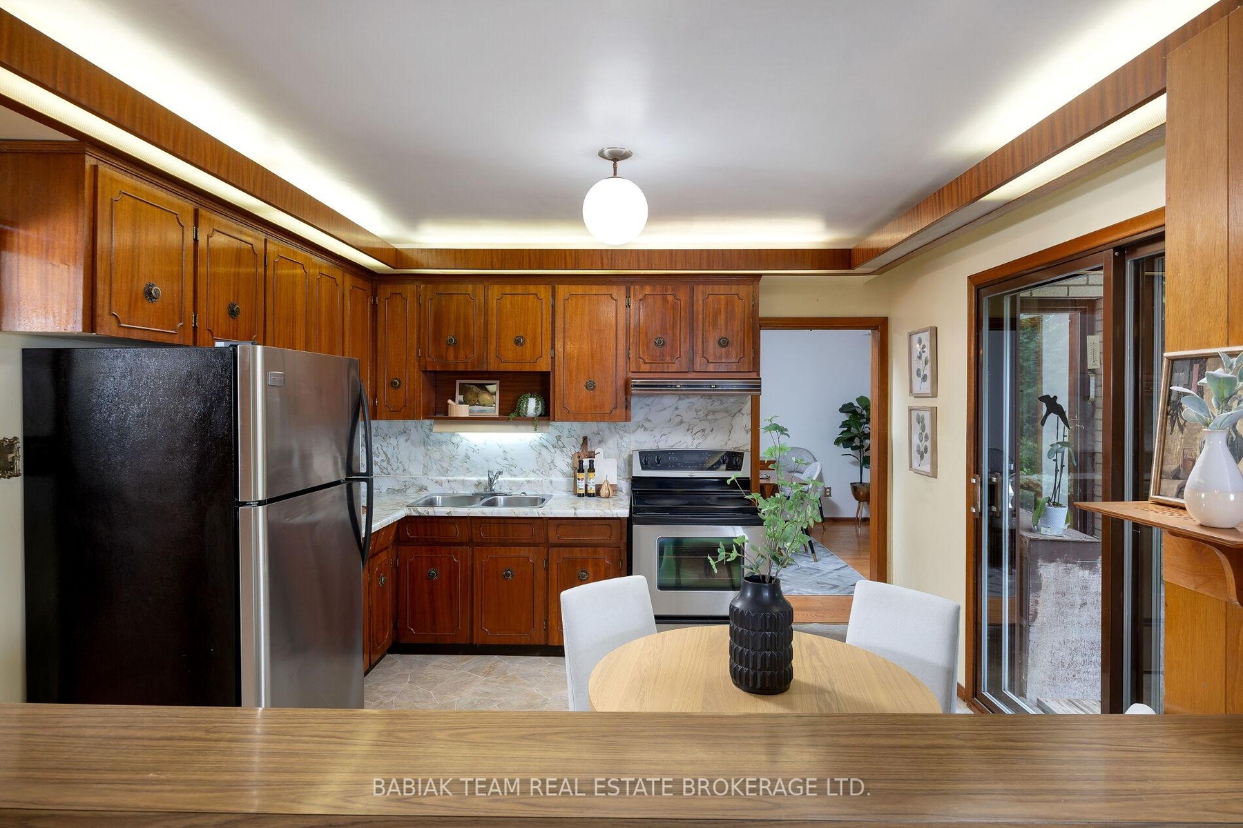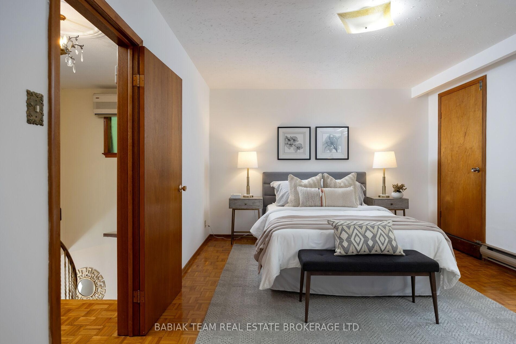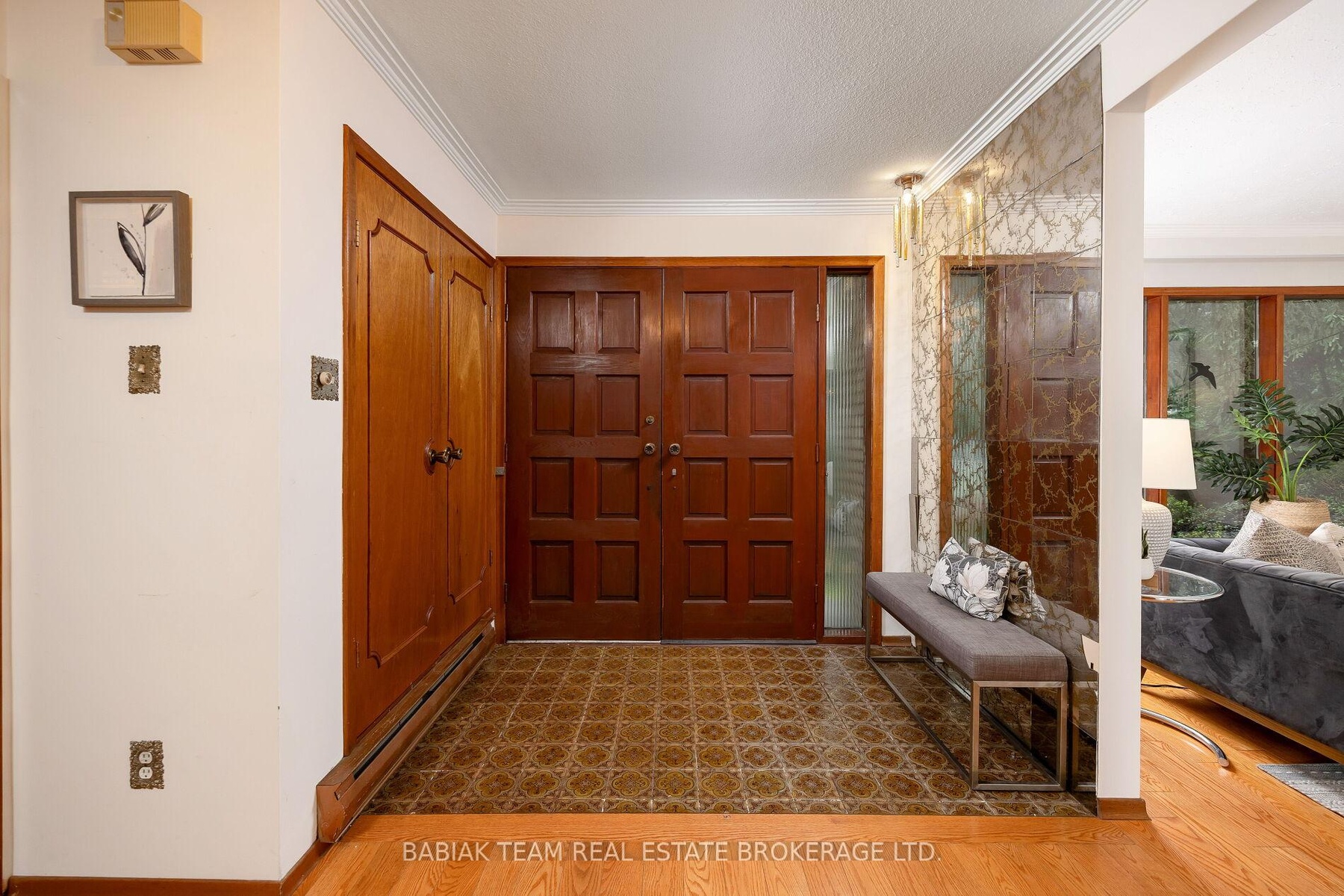 DescriptionAn impressive, custom 3+1 contemporary home located in a prime Old Mill/Baby Point enclave, offering 2,880 square feet of living space across three well-designed levels. Set in a peaceful, wooded ravine, this exceptional residence provides a serene, Muskoka-like retreat on a quiet, family-friendly cul-de-sac, just moments from the scenic Humber River trails. The super spacious main floor offers ample room for family and friends, featuring an open-plan living and dining room, an excellent kitchen with a walkout to the garden patio, and a family room highlighted by a charming fieldstone fireplace. A main floor office/den and powder room add to the functionality and flow of the space.Upstairs, the primary suite includes a two-piece ensuite, and balcony walk-out to 40' x 12' terrace. The lower level boasts a generous rec room with a front entry at grade, a laundry area, roughed-in three-piece bath, and a cold room.Lovingly maintained by the original owners, this home also includes a double private drive and a spacious double built-in garage (20 x 18.5). All within walking distance to Old Mill and Jane subway stations, and just a short stroll to the shops, services, cafes, and restaurants of Bloor West Village and Baby Point Gates. With its cottage-like setting in the heart of the city, this is a rare opportunity to enjoy a wonderful family home in a very special community. Home inspection, 3D Tour, Video, Floor Plans & House Data Available.Virtual Tour: https://tours.bhtours.ca/90-humberview-road-toronto/nb/Amenities- Carpet Free
