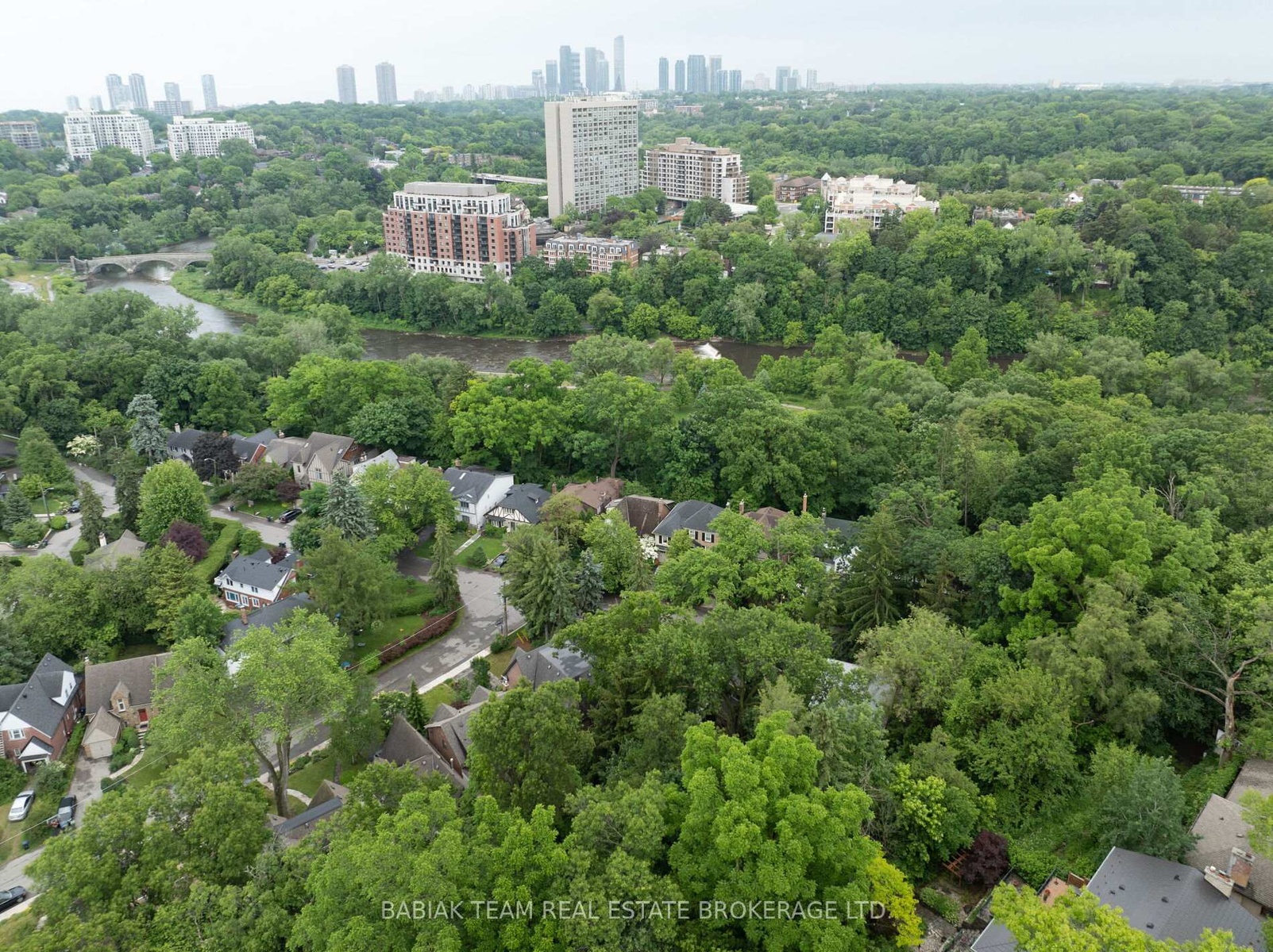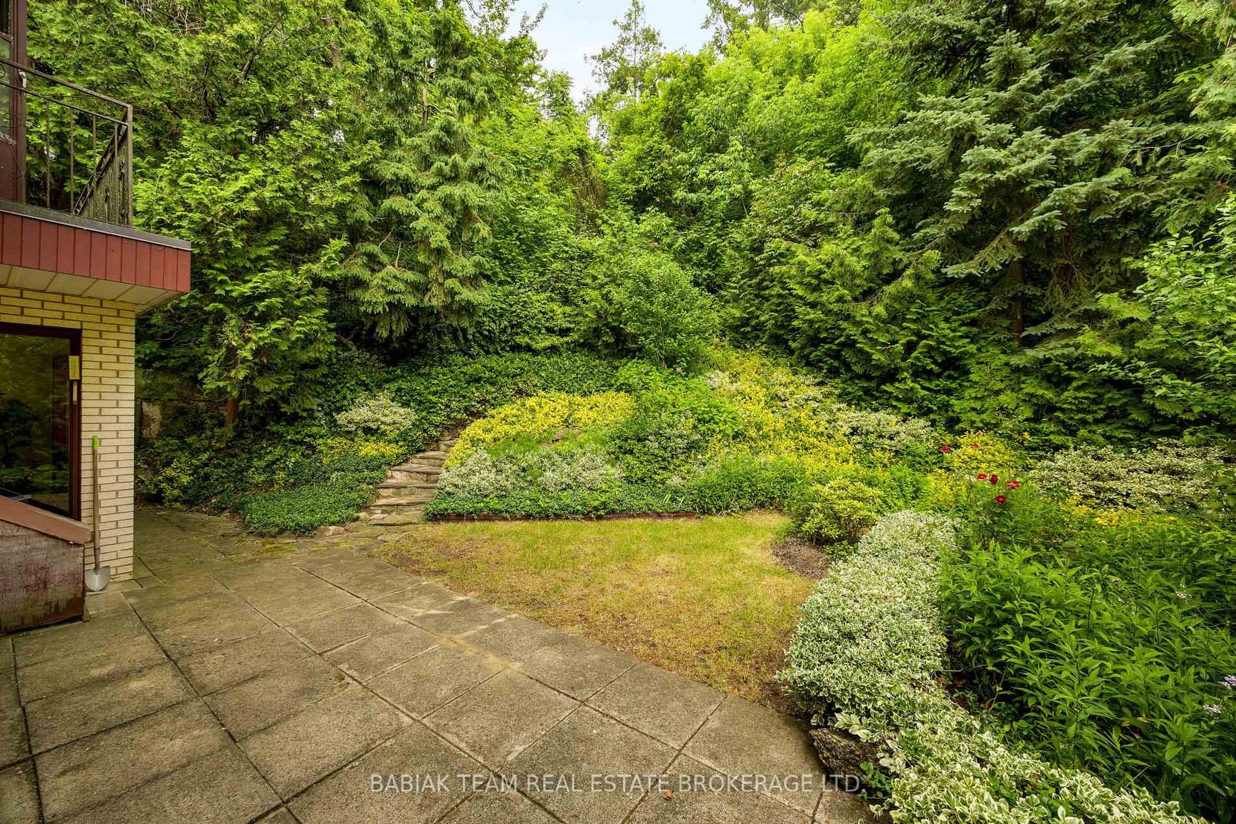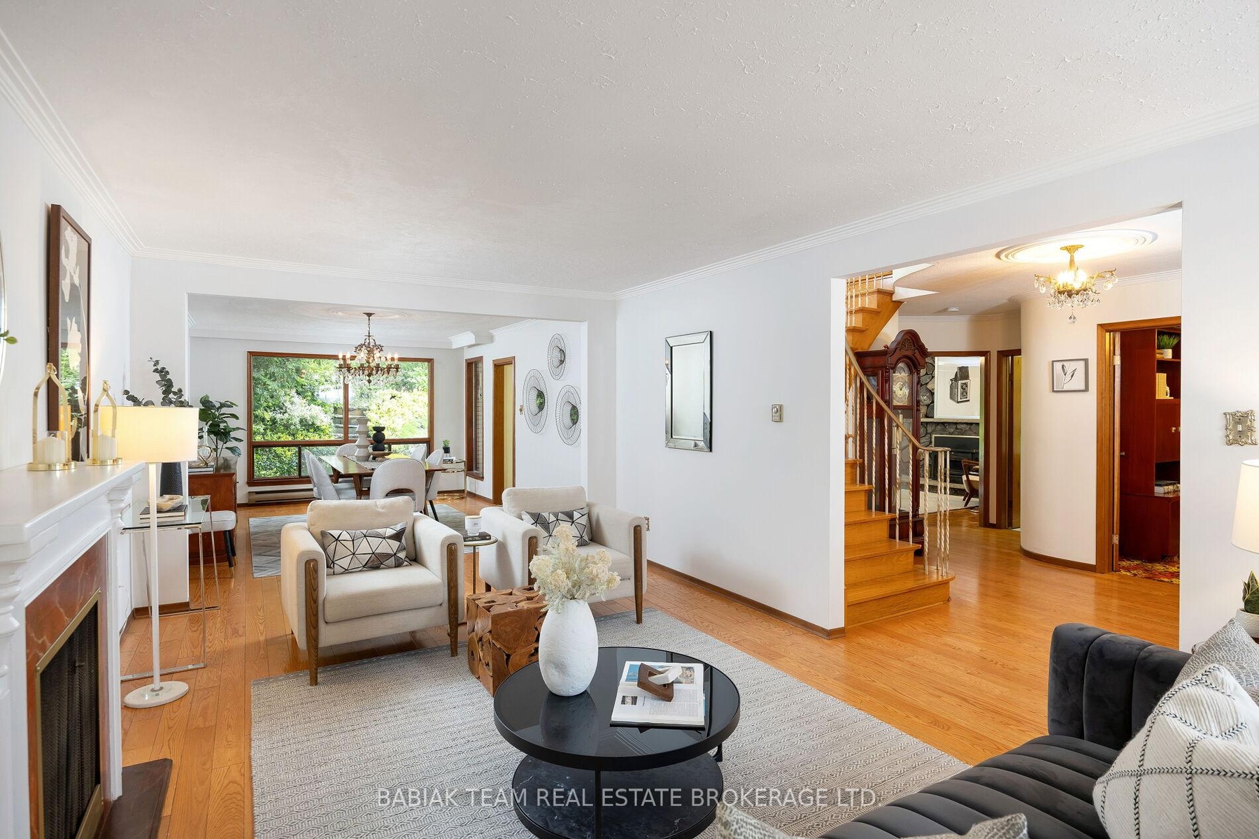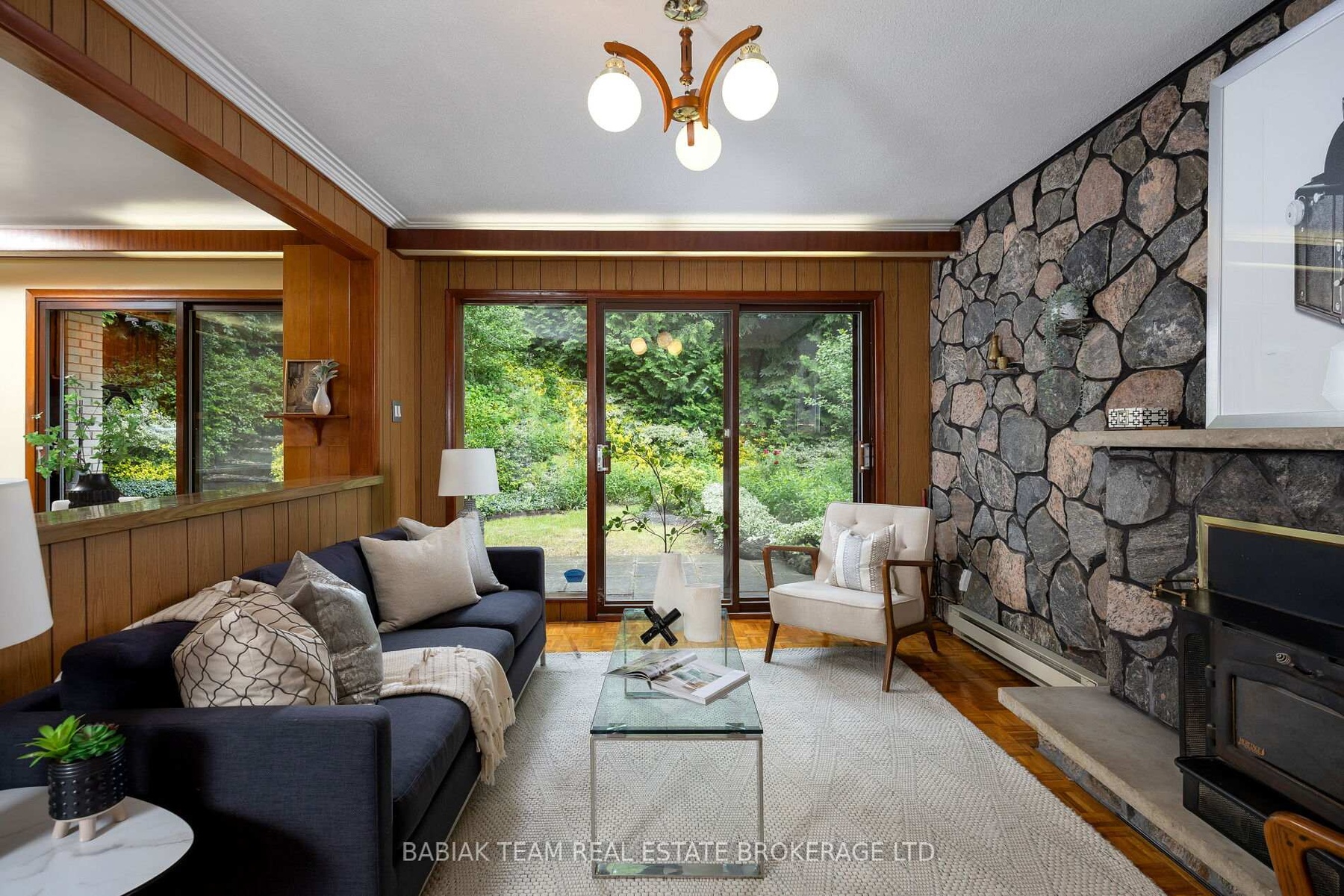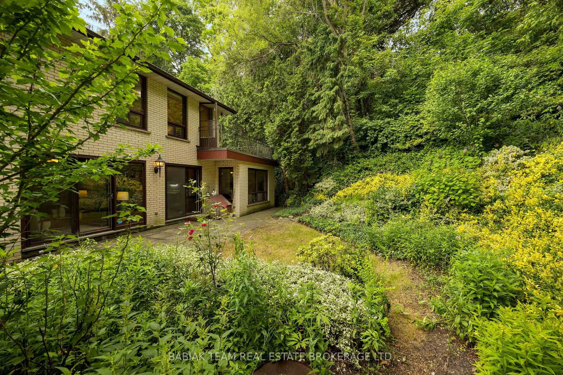 An impressive, custom 3+1 contemporary home located in a prime Old Mill/Baby Point enclave, offering 2,880 square feet of living space across three well-designed levels. Set in a peaceful, wooded ravine, this exceptional residence provides a serene, Muskoka-like retreat on a quiet, family-friendly cul-de-sac, just moments from the scenic Humber River trails. The super spacious main floor offers ample room for family and friends, featuring an open-plan living and dining room, an excellent kitchen with a walkout to the garden patio, and a family room highlighted by a charming fieldstone fireplace. A main floor office/den and powder room add to the functionality and flow of the space.Upstairs, the primary suite includes a two-piece ensuite, and balcony walk-out to 40' x 12' terrace. The lower level boasts a generous rec room with a front entry at grade, a laundry area, roughed-in three-piece bath, and a cold room.Lovingly maintained by the original owners, this home also includes a double private drive and a spacious double built-in garage (20 x 18.5). All within walking distance to Old Mill and Jane subway stations, and just a short stroll to the shops, services, cafes, and restaurants of Bloor West Village and Baby Point Gates. With its cottage-like setting in the heart of the city, this is a rare opportunity to enjoy a wonderful family home in a very special community. Home inspection, 3D Tour, Video, Floor Plans & House Data Available.