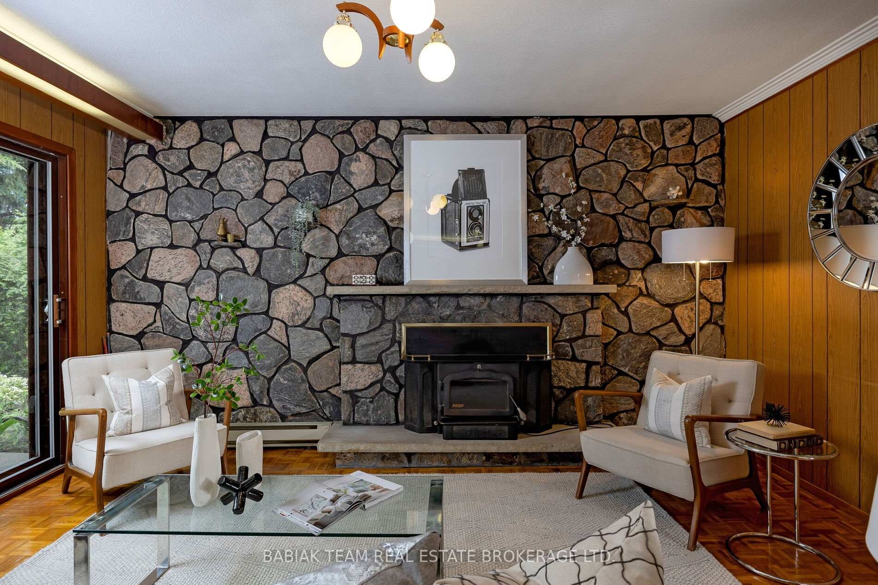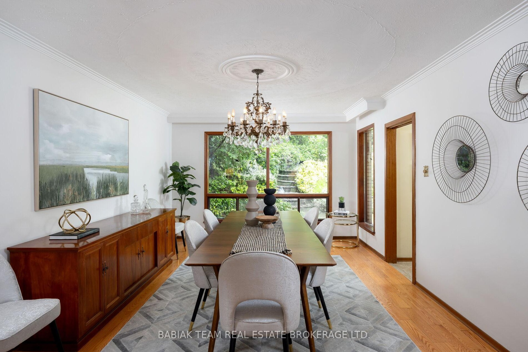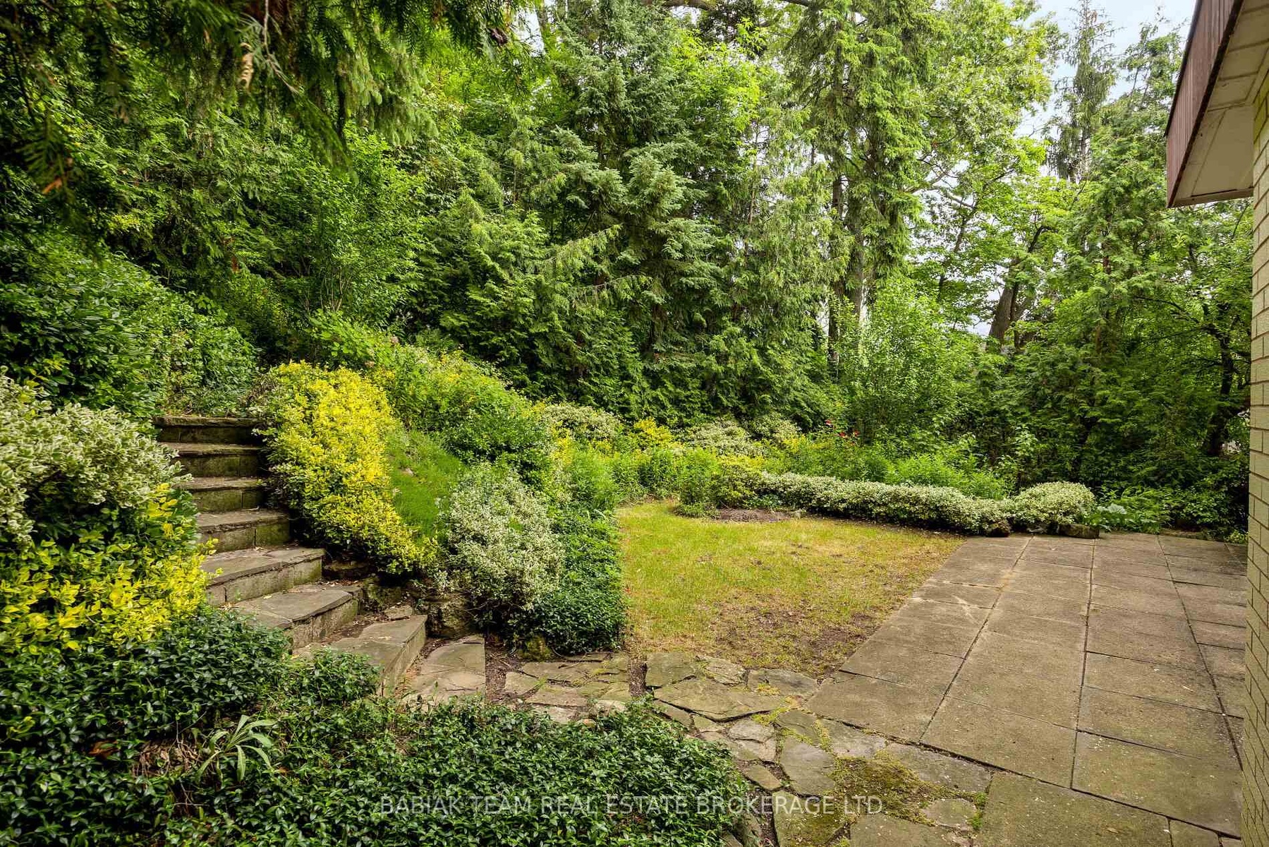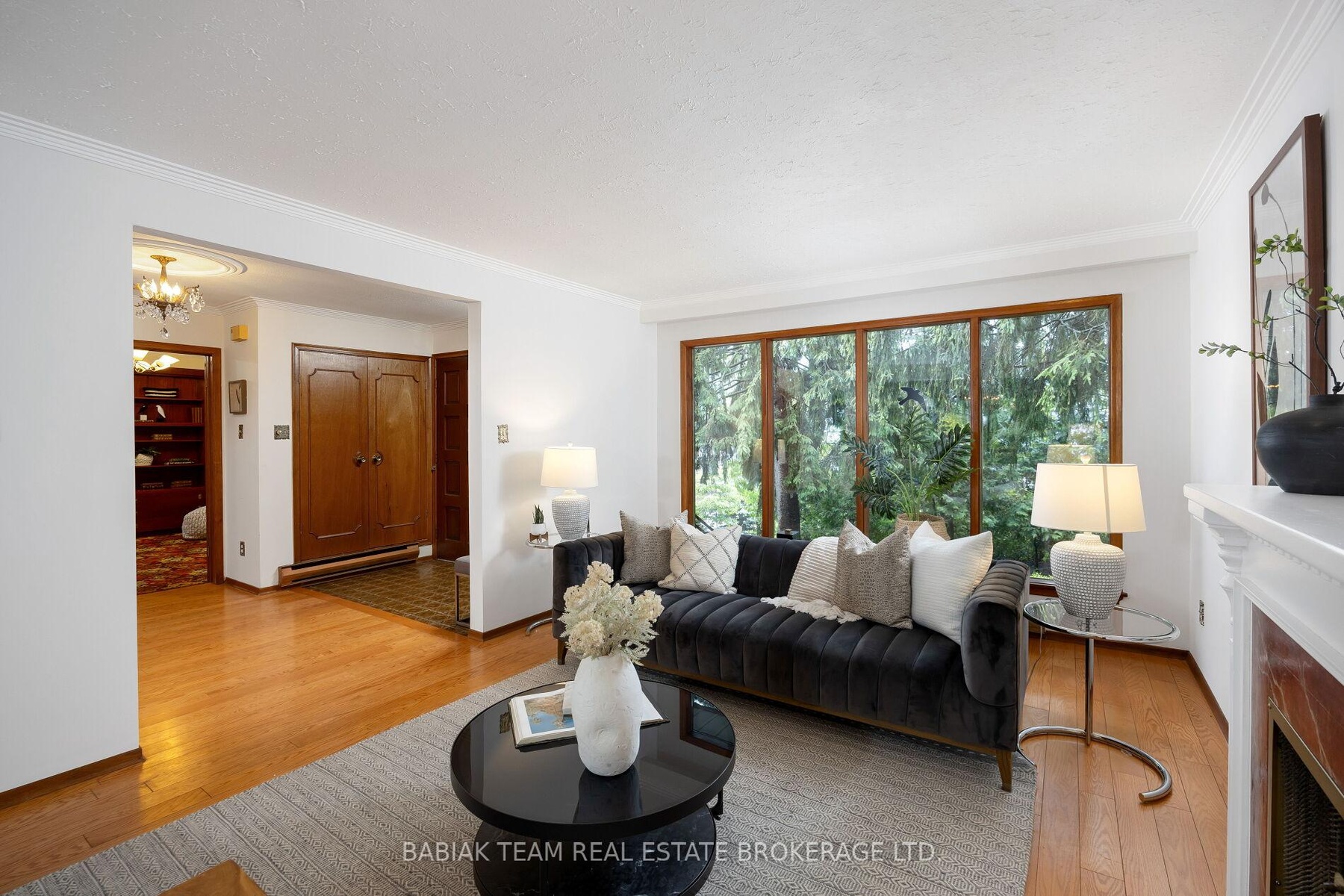 An impressive, custom 3+1 contemporary home located in a prime Old Mill/Baby Point enclave, offering 2,880 square feet of living space across three well-designed levels. Set in a peaceful, wooded ravine, this exceptional residence provides a serene, Muskoka-like retreat on a quiet, family-friendly cul-de-sac, just moments from the scenic Humber River trails. The super spacious main floor offers ample room for family and friends, featuring an open-plan living and dining room, an excellent kitchen with a walkout to the garden patio, and a family room highlighted by a charming fieldstone fireplace. A main floor office/den and powder room add to the functionality and flow of the space.Upstairs, the primary suite includes a two-piece ensuite, and balcony walk-out to 40' x 12' terrace. The lower level boasts a generous rec room with a front entry at grade, a laundry area, roughed-in three-piece bath, and a cold room.Lovingly maintained by the original owners, this home also includes a double private drive and a spacious double built-in garage (20 x 18.5). All within walking distance to Old Mill and Jane subway stations, and just a short stroll to the shops, services, cafes, and restaurants of Bloor West Village and Baby Point Gates. With its cottage-like setting in the heart of the city, this is a rare opportunity to enjoy a wonderful family home in a very special community. Home inspection, 3D Tour, Video, Floor Plans & House Data Available.