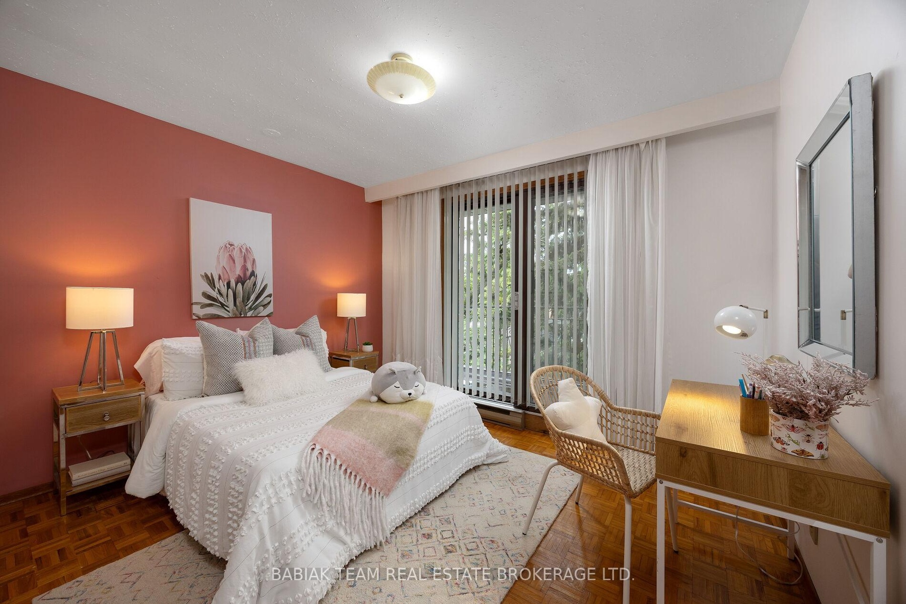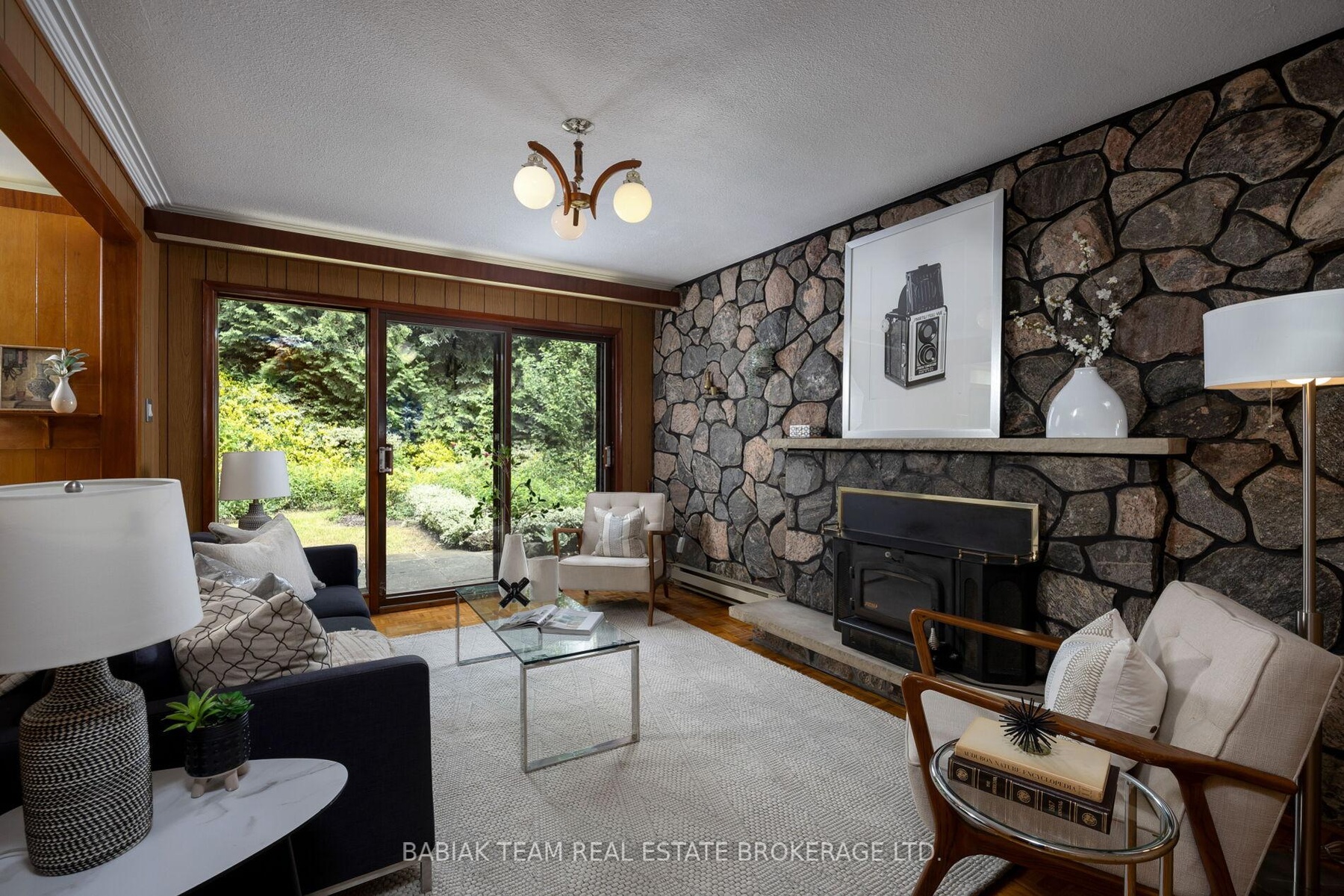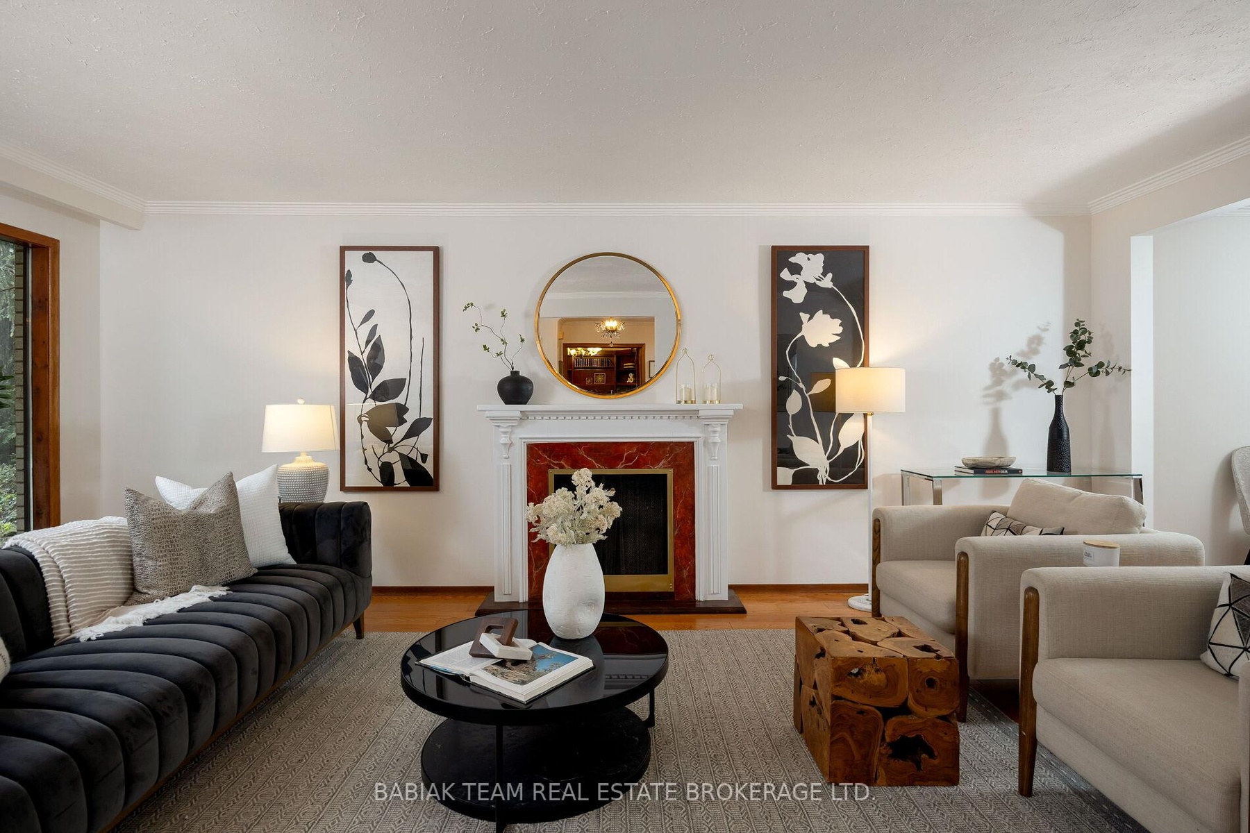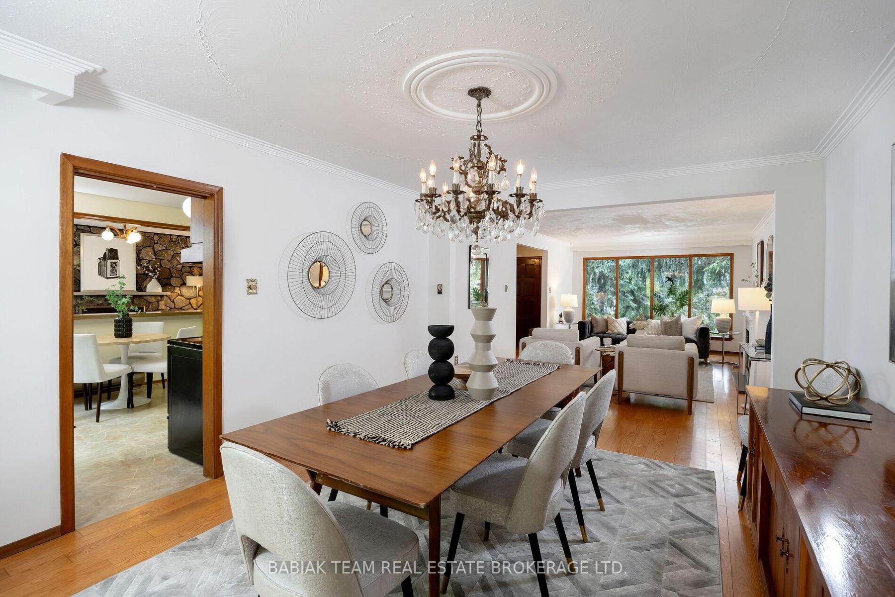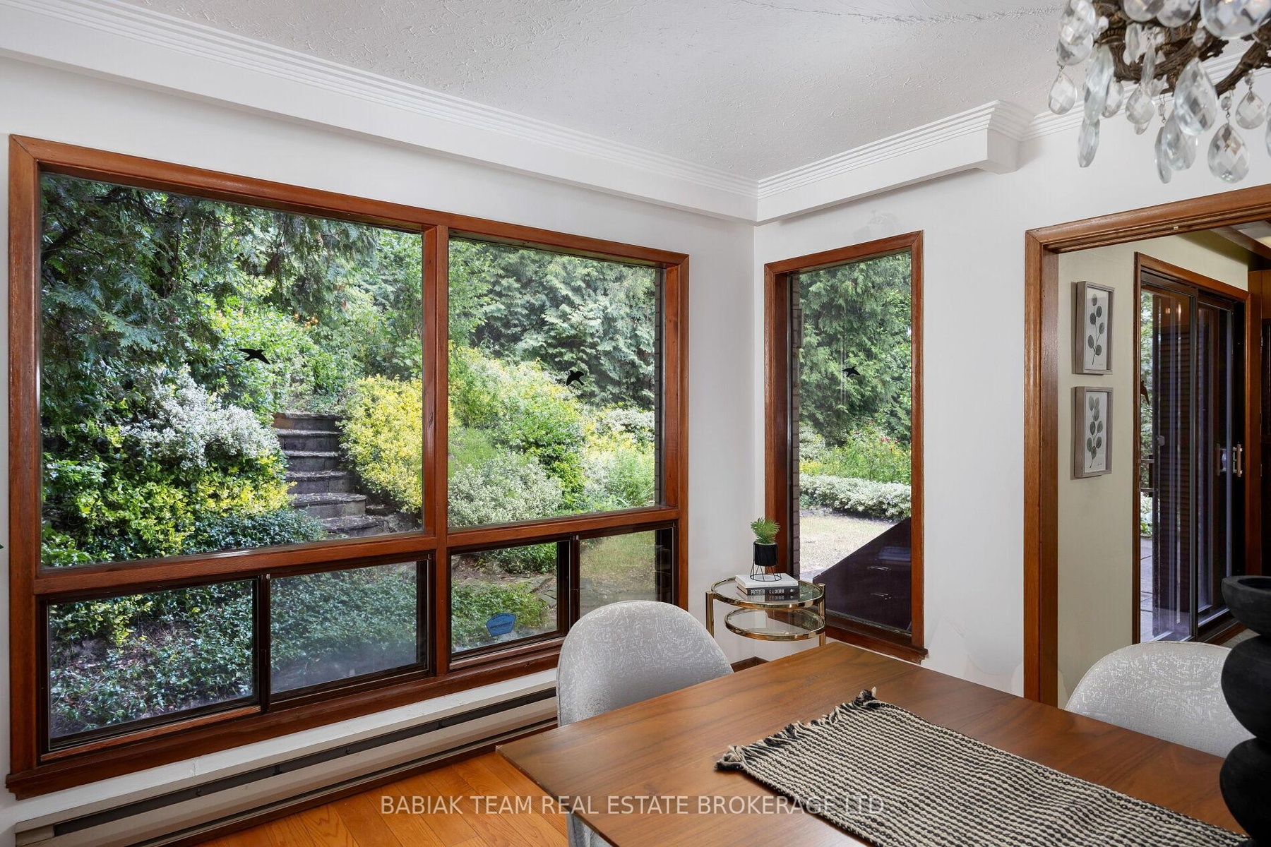An impressive, custom 3+1 contemporary home located in a prime Old Mill/Baby Point enclave, offering 2,880 square feet of living space across three well-designed levels. Set in a peaceful, wooded ravine, this exceptional residence provides a serene, Muskoka-like retreat on a quiet, family-friendly cul-de-sac, just moments from the scenic Humber River trails. The super spacious main floor offers ample room for family and friends, featuring an open-plan living and dining room, an excellent kitchen with a walkout to the garden patio, and a family room highlighted by a charming fieldstone fireplace. A main floor office/den and powder room add to the functionality and flow of the space.Upstairs, the primary suite includes a two-piece ensuite, and balcony walk-out to 40' x 12' terrace. The lower level boasts a generous rec room with a front entry at grade, a laundry area, roughed-in three-piece bath, and a cold room.Lovingly maintained by the original owners, this home also includes a double private drive and a spacious double built-in garage (20 x 18.5). All within walking distance to Old Mill and Jane subway stations, and just a short stroll to the shops, services, cafes, and restaurants of Bloor West Village and Baby Point Gates. With its cottage-like setting in the heart of the city, this is a rare opportunity to enjoy a wonderful family home in a very special community. Home inspection, 3D Tour, Video, Floor Plans & House Data Available.