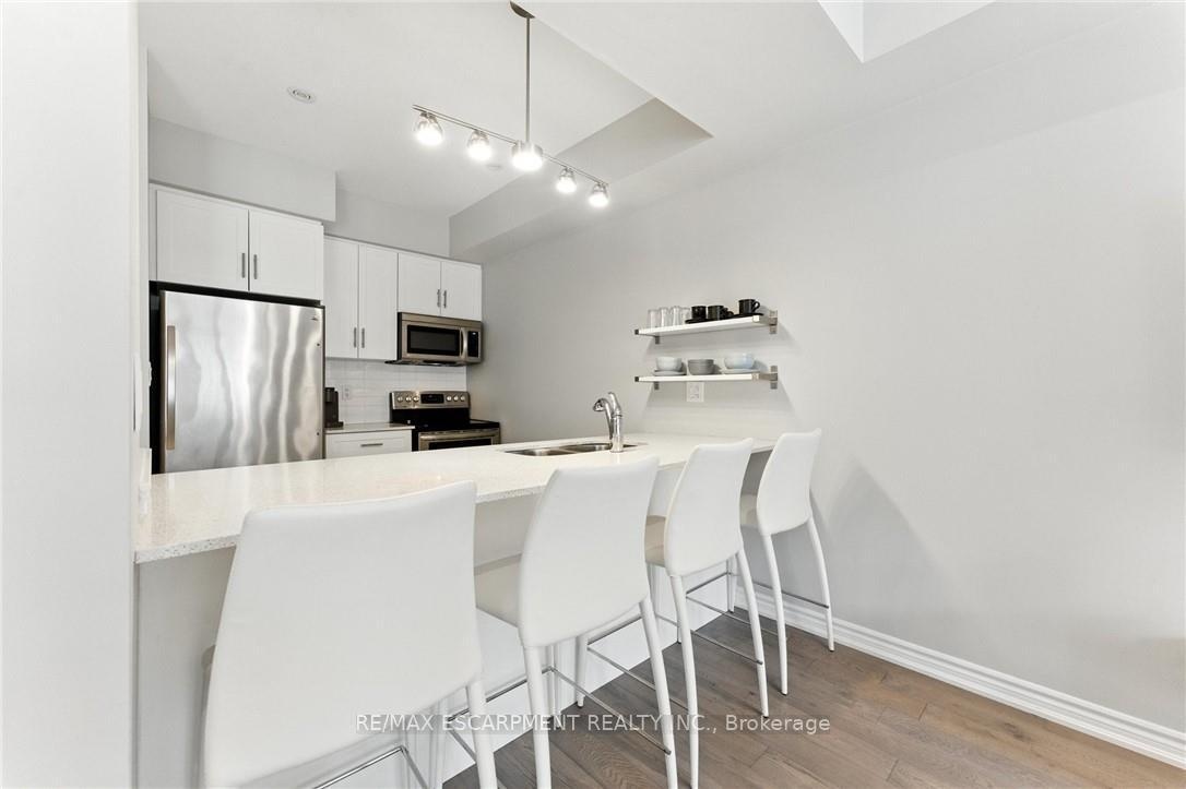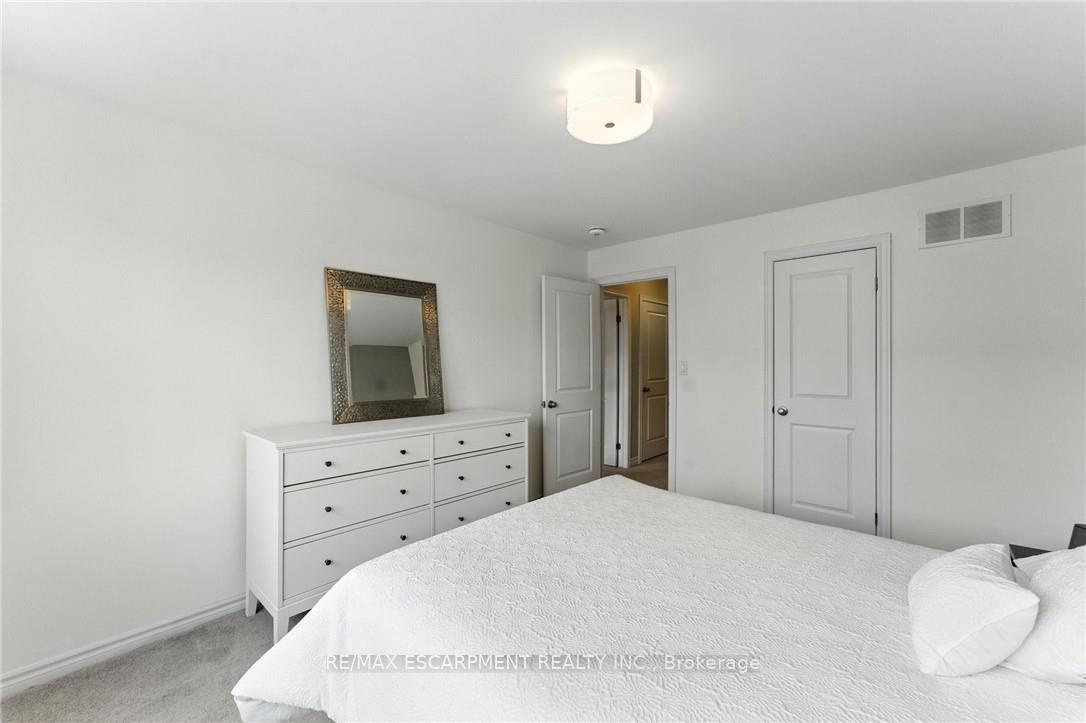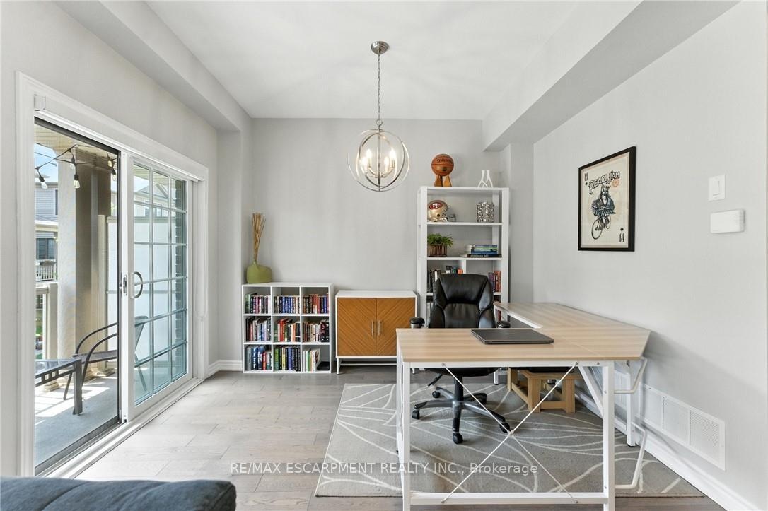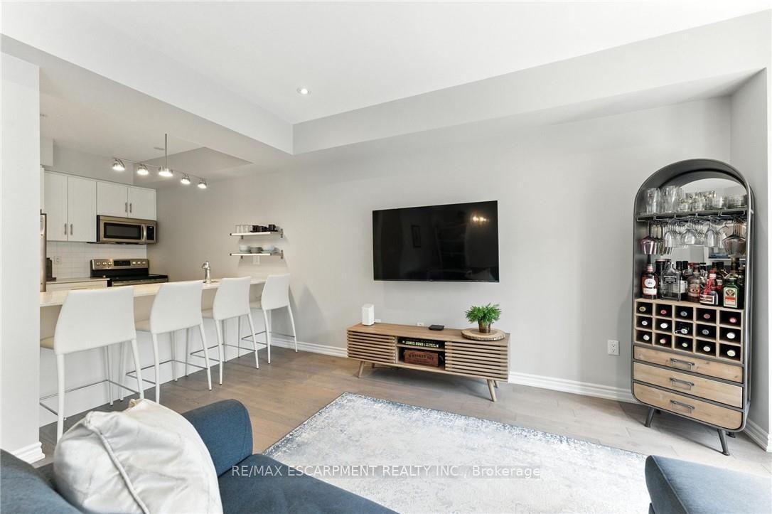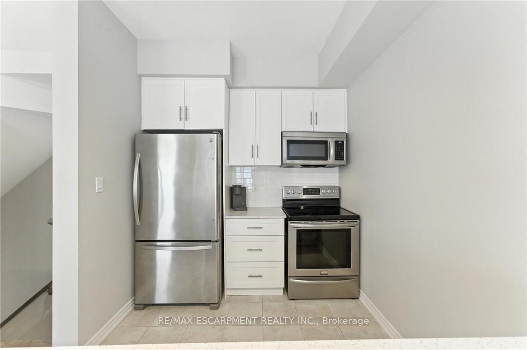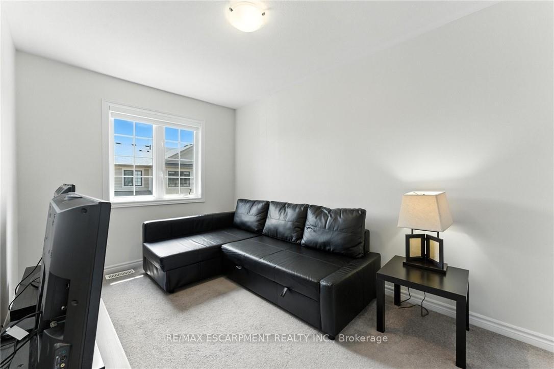 Welcome to this bright and spacious 2-bedroom, 2-bathroom townhome nestled in a quiet and desirable Ancaster neighbourhood. Designed with both comfort and functionality in mind, this home wont disappoint! The main floor features a versatile multi purpose den, perfect for a home office, workout area, or cozy retreat, along with a large closet for ample storage. Upstairs, discover a stunning open-concept living space bathed in natural light from expansive windows and patio doors leading to a Juliet balcony. Entertain with ease in the upgraded kitchen, complete with stainless steel appliances, quartz countertops, pot lights, a breakfast bar that comfortably seats four, and a seamless flow into the dining area. The living room is equally inviting, featuring wide-plank hardwood floors and brilliant natural light by day, transitioning to warm, ambient lighting at night. The third floor offers an upgraded primary bedroom with a generous walk-in closet and a large window that fills the space with light. A spacious second bedroom also features a walk-in closet, offering plenty of room for guests, family, or additional office space. Convenient bedroom-level laundry adds modern practicality, while the main bathroom impresses with a double vanity and a sleek glass-enclosed shower. Ideally located just minutes from the vibrant Meadowlands shopping and dining district, highway access, and scenic nature trails, ensuring the perfect balance of urban convenience and peaceful surroundings.
