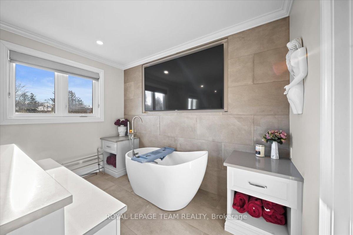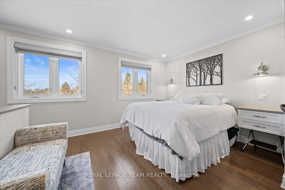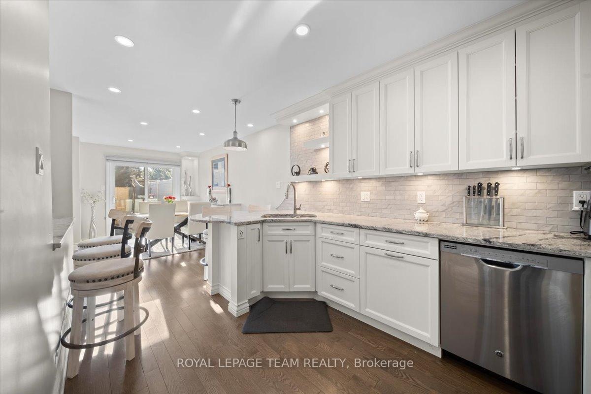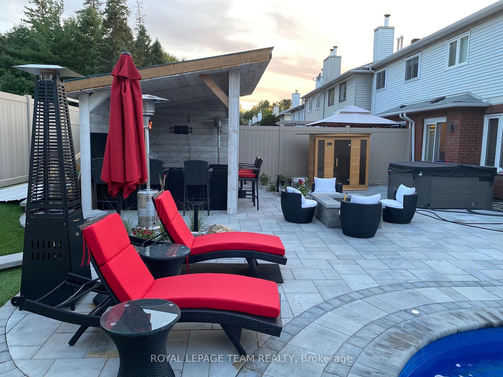 Welcome to this fully renovated, furnished, two bedroom, executive townhome- where luxury meets comfort and relaxation. The main floor features an open concept design, perfect for living and hosting, flooded with natural light with views of your maintenance-free backyard oasis. Complete with an in ground pool, hot tub, sauna, fire pit, outdoor shower and full outdoor kitchen/bar, this backyard is your own private resort. The upper level consists of two spacious bedrooms, each featuring walk-in showers and soaker tubs. The primary also boasts a large walk in closet/ dressing room. The fully finished basement is an entertainers dream featuring a full wet bar, custom wine cellar, rec room, exercise room, and powder room. Additional property features include: heated garage, security cameras, laundry, gas fireplace. Close to Canadian Tire Centre, Kanata Centrum (shopping, cafes, restaurants), & highway access.
