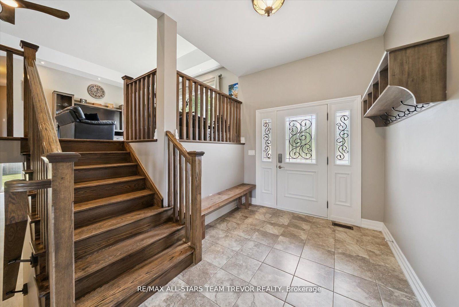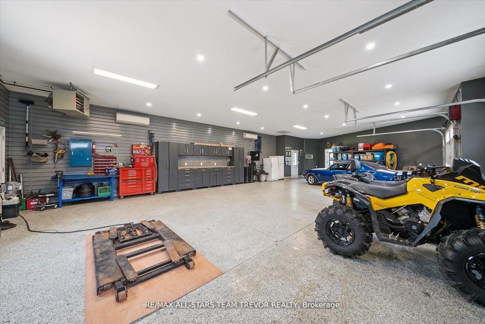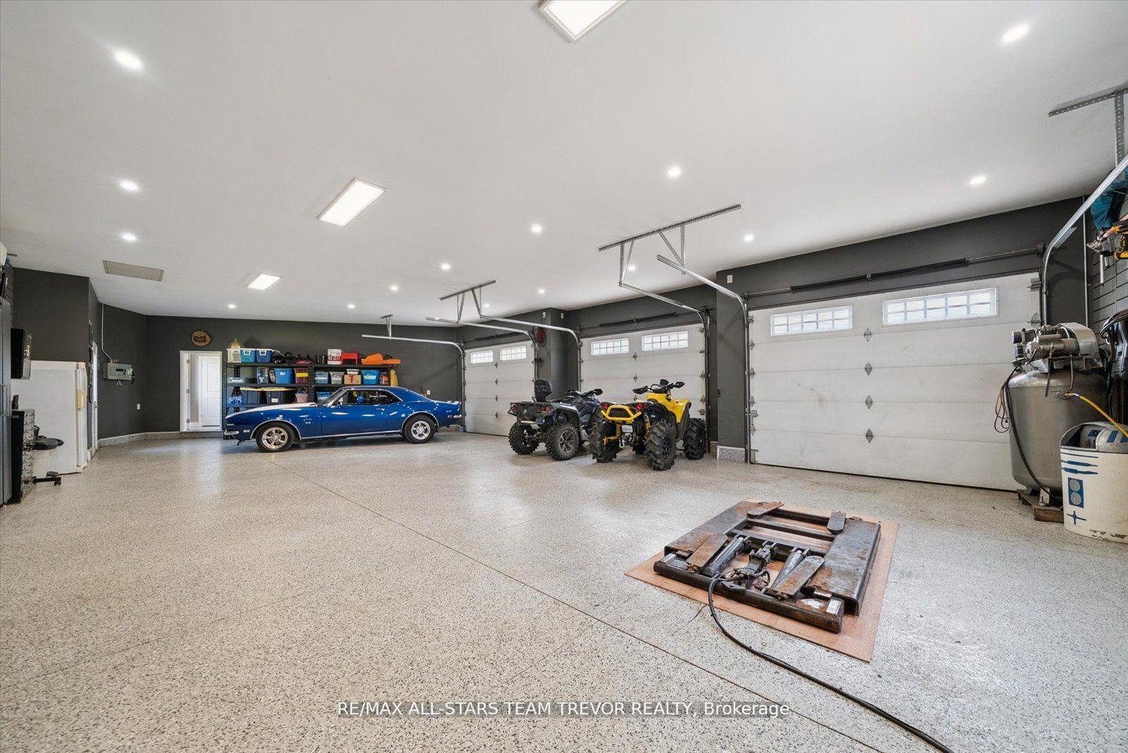 DescriptionSituated on 4.63 acres, this stunning 1,945 sqft, 3+2 bdrm, 2 bath, raised bungalow features a recently finished w/o basement & 1,300 square foot heated/cooled/insulated triple garage! The front foyer features ceramic flooring, double closet, convenient garage access, & oak staircase/railings! The open concept combo living/dining/kitchen is an entertainers delight. Here you will enjoy 10' coffered ceilings, 72" ceiling fan, large picture window, laminate flooring, pot lights, centre island, black stainless appliances, stylish back splash, undermount lighting, & walk out to the 16' x 10' deck through patio doors with built in blinds! The bedrooms, bathrooms & laundry are just steps down the hallway. The laminate & ceramics continue through to these rooms. The primary suite features double his/her closets & 4 piece ensuite featuring a deep soaker tub & separate shower stall! The other bedrooms are spacious, enjoy large windows & double closets! The 4 piece main bath & the laundry complete this level of the home! The bright walk out basement features exterior walls that are lined with large above grade windows & patio doors that lead to the back yard. This space has been recently finished to include a massive family room with multiple pot lights & 2 spacious bedrooms which feature double closets. Take a deep breath before entering the garage. It sounds almost crazy to say, but this 1,300 sqft, fully insulated, triple garage is breathtaking! 3 insulated garage doors, a/c & heat for 4 season use, led lighting panels, polyaspartic finished flooring, & access to the fully fenced back yard! This home was built by recognized builder Brian Guildford in 2017. The extensive driveway includes a round about & there are exterior pot lights both front & back. The back yard is perfect for entertaining family members & guests & features a firepit surrounded by river rock. Don't miss this rare opportunity to make this home your own!Virtual Tour: https://my.matterport.com/show/?m=86UMtjpM9nS&mls=1Amenities- Air Exchanger