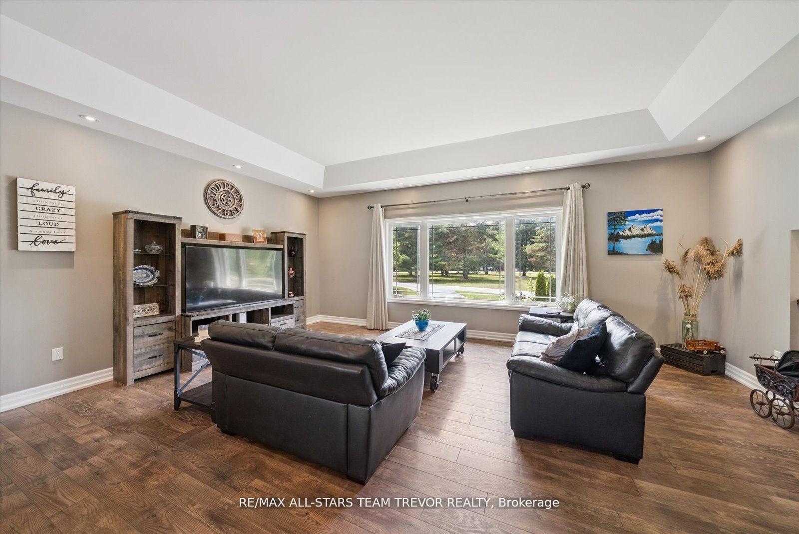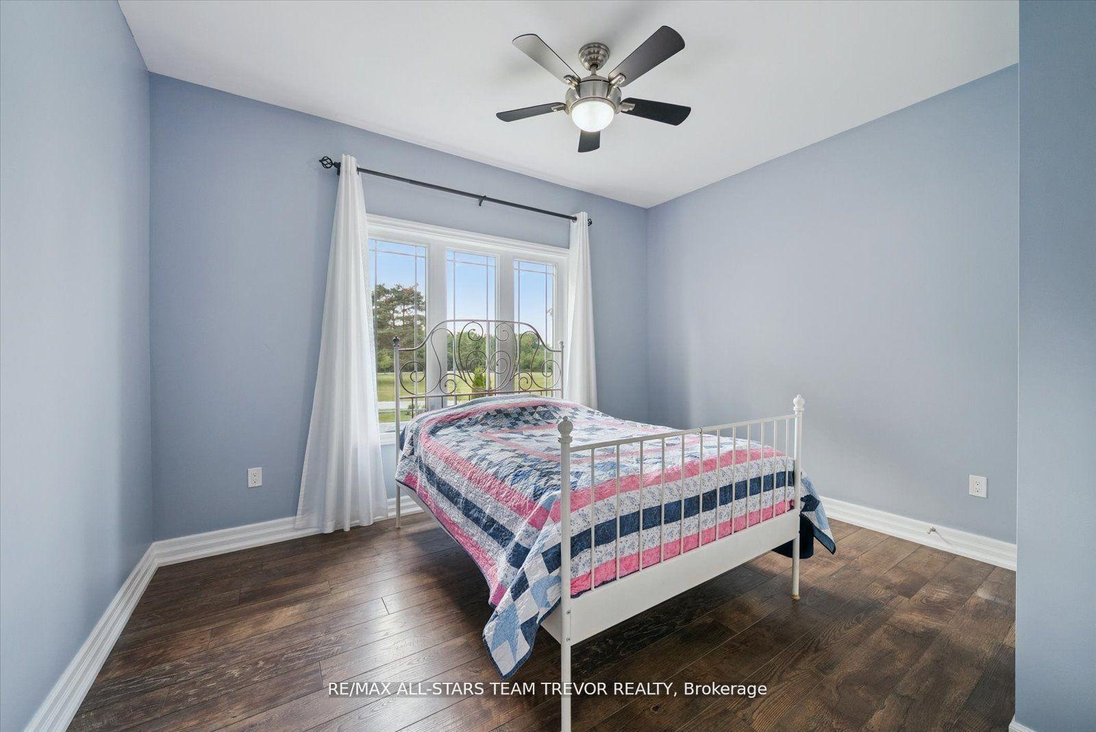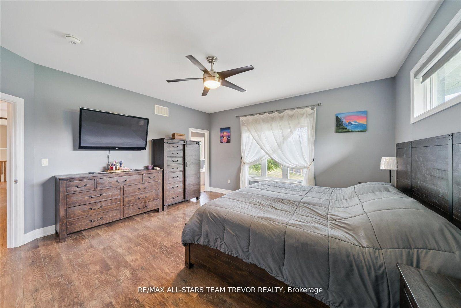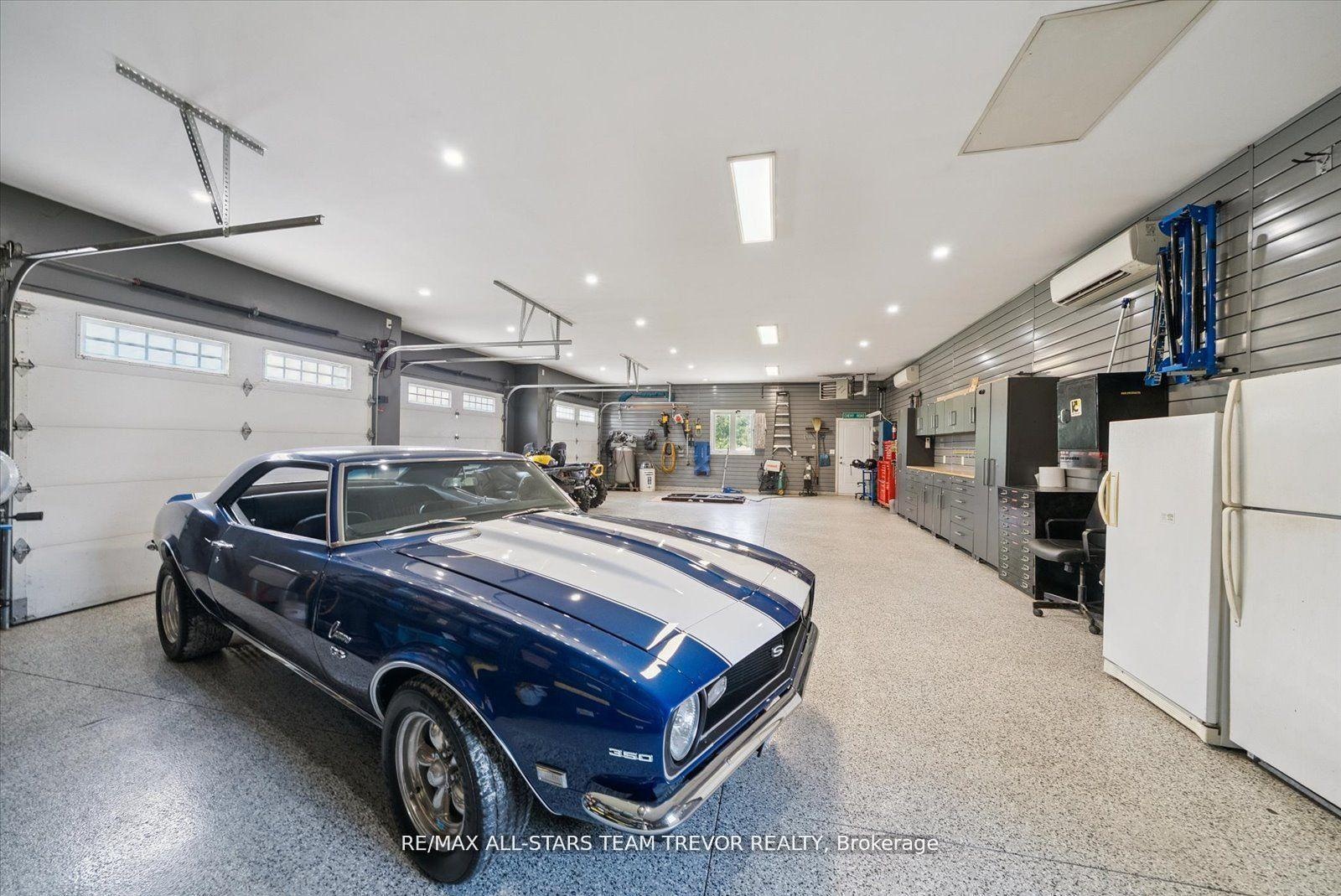 DescriptionSituated on 4.63 acres, this stunning 1,945 sqft, 3+2 bdrm, 2 bath, raised bungalow features a recently finished w/o basement & 1,300 square foot heated/cooled/insulated triple garage! The front foyer features ceramic flooring, double closet, convenient garage access, & oak staircase/railings! The open concept combo living/dining/kitchen is an entertainers delight. Here you will enjoy 10' coffered ceilings, 72" ceiling fan, large picture window, laminate flooring, pot lights, centre island, black stainless appliances, stylish back splash, undermount lighting, & walk out to the 16' x 10' deck through patio doors with built in blinds! The bedrooms, bathrooms & laundry are just steps down the hallway. The laminate & ceramics continue through to these rooms. The primary suite features double his/her closets & 4 piece ensuite featuring a deep soaker tub & separate shower stall! The other bedrooms are spacious, enjoy large windows & double closets! The 4 piece main bath & the laundry complete this level of the home! The bright walk out basement features exterior walls that are lined with large above grade windows & patio doors that lead to the back yard. This space has been recently finished to include a massive family room with multiple pot lights & 2 spacious bedrooms which feature double closets. Take a deep breath before entering the garage. It sounds almost crazy to say, but this 1,300 sqft, fully insulated, triple garage is breathtaking! 3 insulated garage doors, a/c & heat for 4 season use, led lighting panels, polyaspartic finished flooring, & access to the fully fenced back yard! This home was built by recognized builder Brian Guildford in 2017. The extensive driveway includes a round about & there are exterior pot lights both front & back. The back yard is perfect for entertaining family members & guests & features a firepit surrounded by river rock. Don't miss this rare opportunity to make this home your own!Virtual Tour: https://my.matterport.com/show/?m=86UMtjpM9nS&mls=1Amenities- Air Exchanger