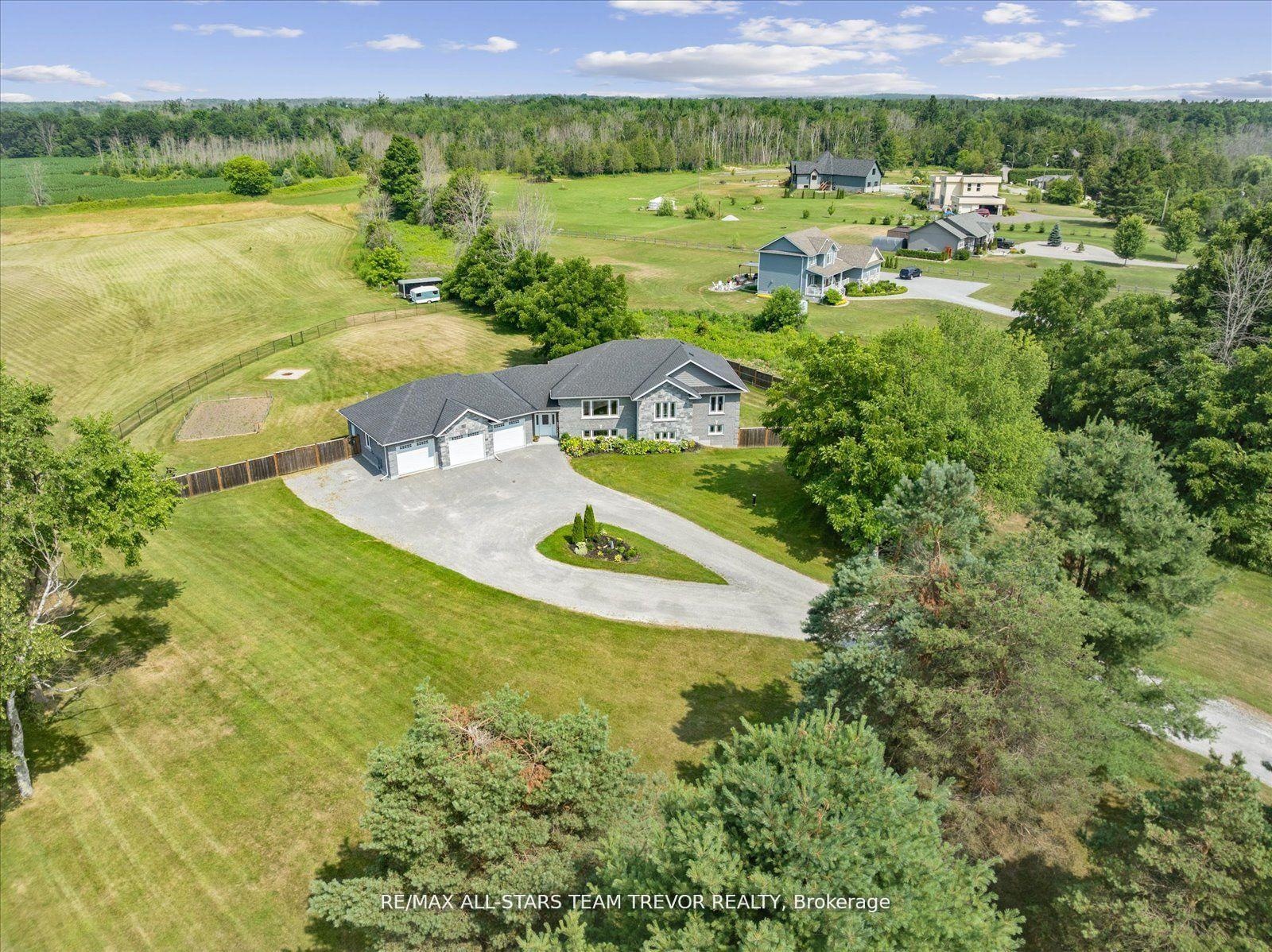 Situated on 4.63 acres, this stunning 1,945 sqft, 3+2 bdrm, 2 bath, raised bungalow features a recently finished w/o basement & 1,300 square foot heated/cooled/insulated triple garage! The front foyer features ceramic flooring, double closet, convenient garage access, & oak staircase/railings! The open concept combo living/dining/kitchen is an entertainers delight. Here you will enjoy 10' coffered ceilings, 72" ceiling fan, large picture window, laminate flooring, pot lights, centre island, black stainless appliances, stylish back splash, undermount lighting, & walk out to the 16' x 10' deck through patio doors with built in blinds! The bedrooms, bathrooms & laundry are just steps down the hallway. The laminate & ceramics continue through to these rooms. The primary suite features double his/her closets & 4 piece ensuite featuring a deep soaker tub & separate shower stall! The other bedrooms are spacious, enjoy large windows & double closets! The 4 piece main bath & the laundry complete this level of the home! The bright walk out basement features exterior walls that are lined with large above grade windows & patio doors that lead to the back yard. This space has been recently finished to include a massive family room with multiple pot lights & 2 spacious bedrooms which feature double closets. Take a deep breath before entering the garage. It sounds almost crazy to say, but this 1,300 sqft, fully insulated, triple garage is breathtaking! 3 insulated garage doors, a/c & heat for 4 season use, led lighting panels, polyaspartic finished flooring, & access to the fully fenced back yard! This home was built by recognized builder Brian Guildford in 2017. The extensive driveway includes a round about & there are exterior pot lights both front & back. The back yard is perfect for entertaining family members & guests & features a firepit surrounded by river rock. Don't miss this rare opportunity to make this home your own!
