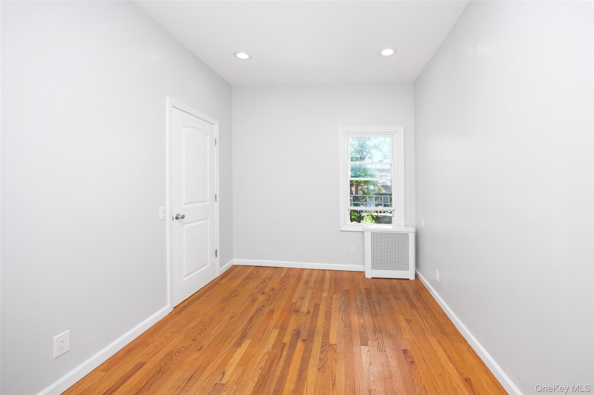 - Spare room featuring radiator heating unit, light wood-type flooring, and recessed lighting