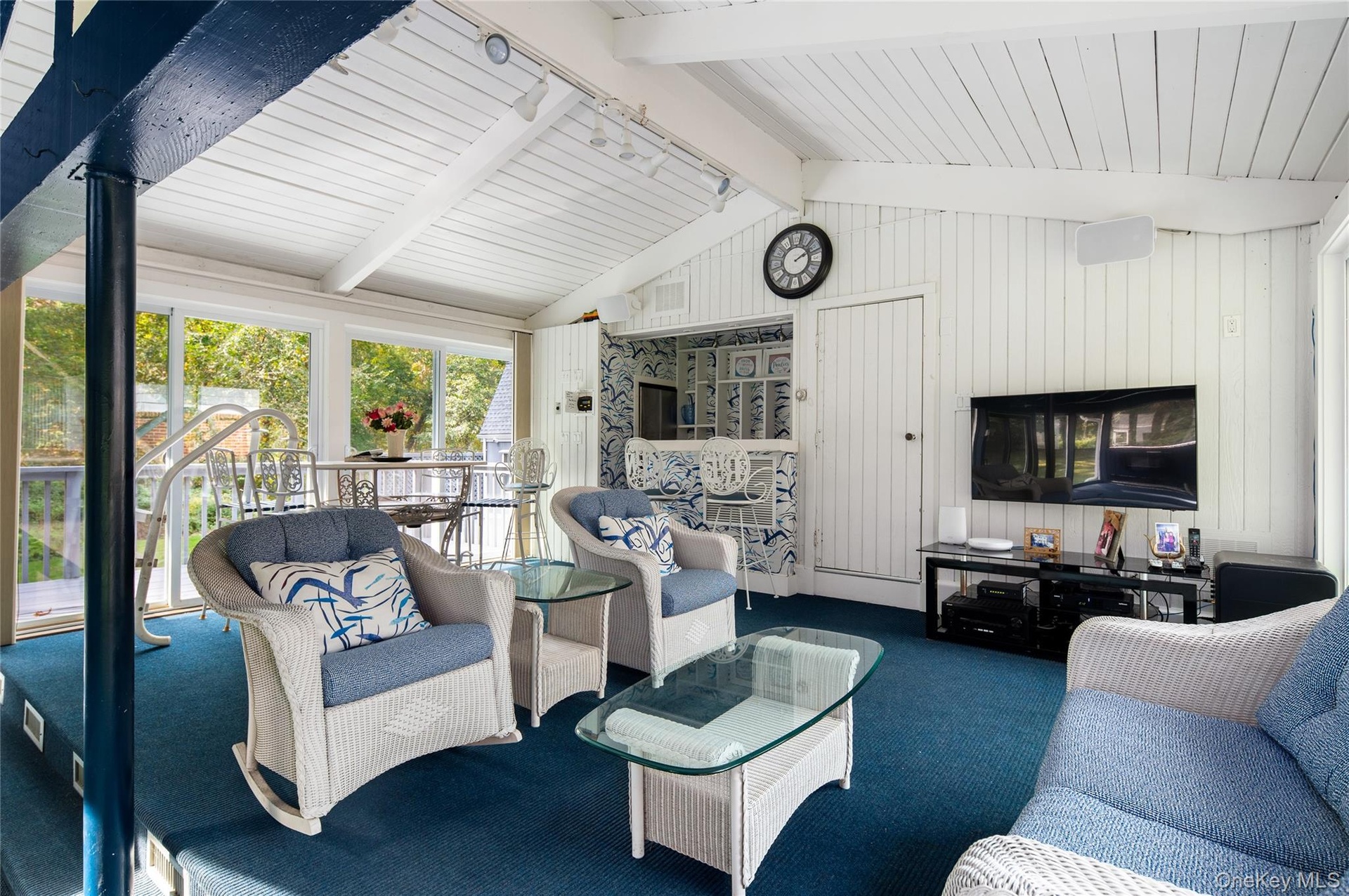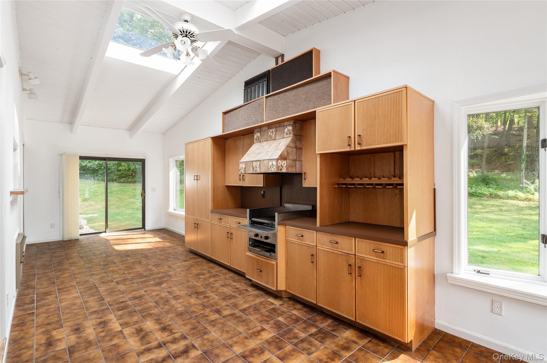 - Sunroom with indoor grill, sliders to outdoor space sky lights