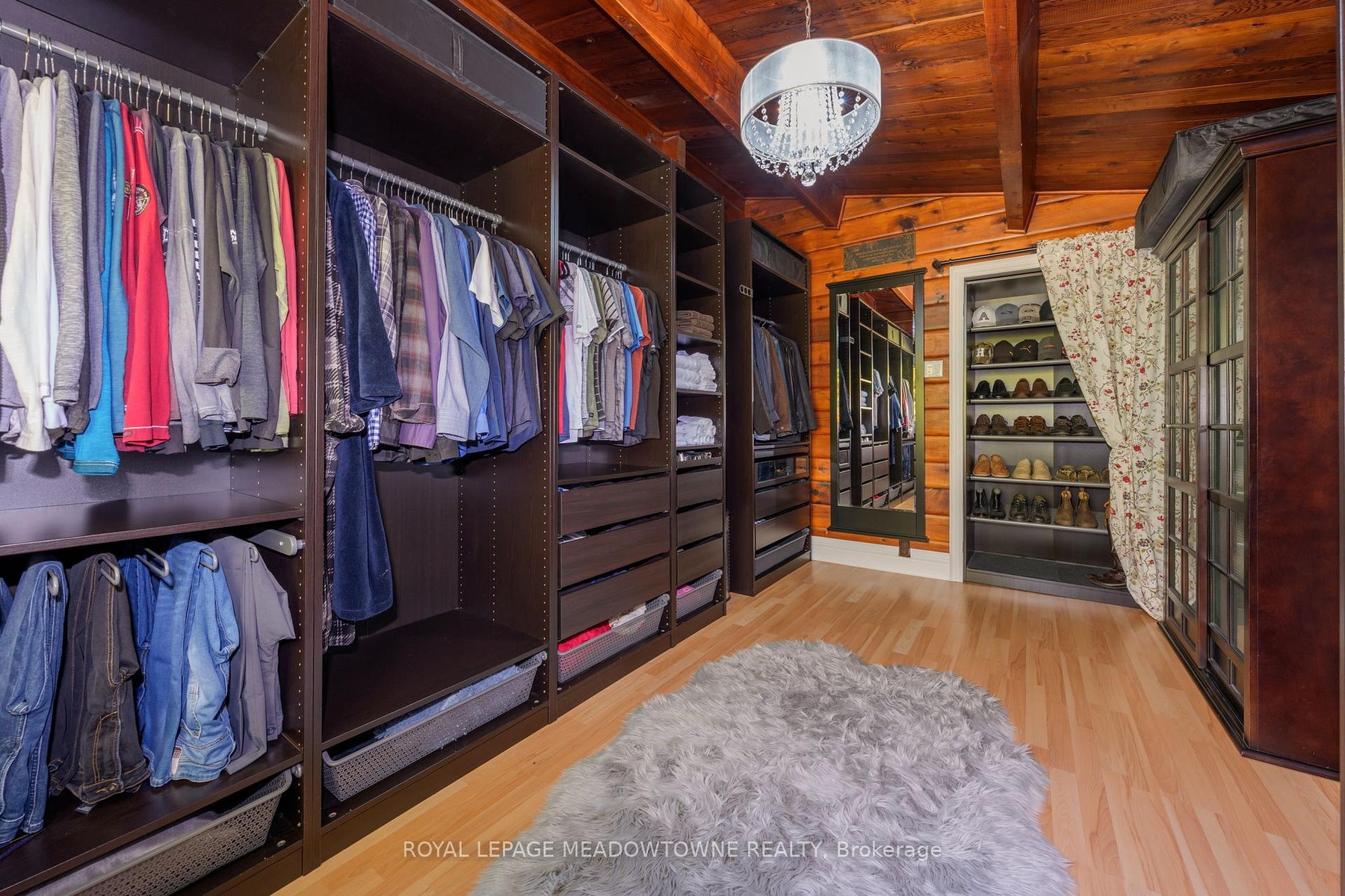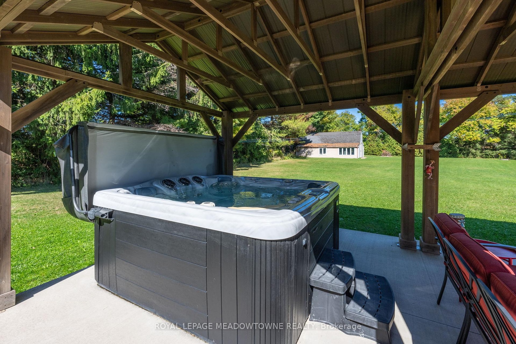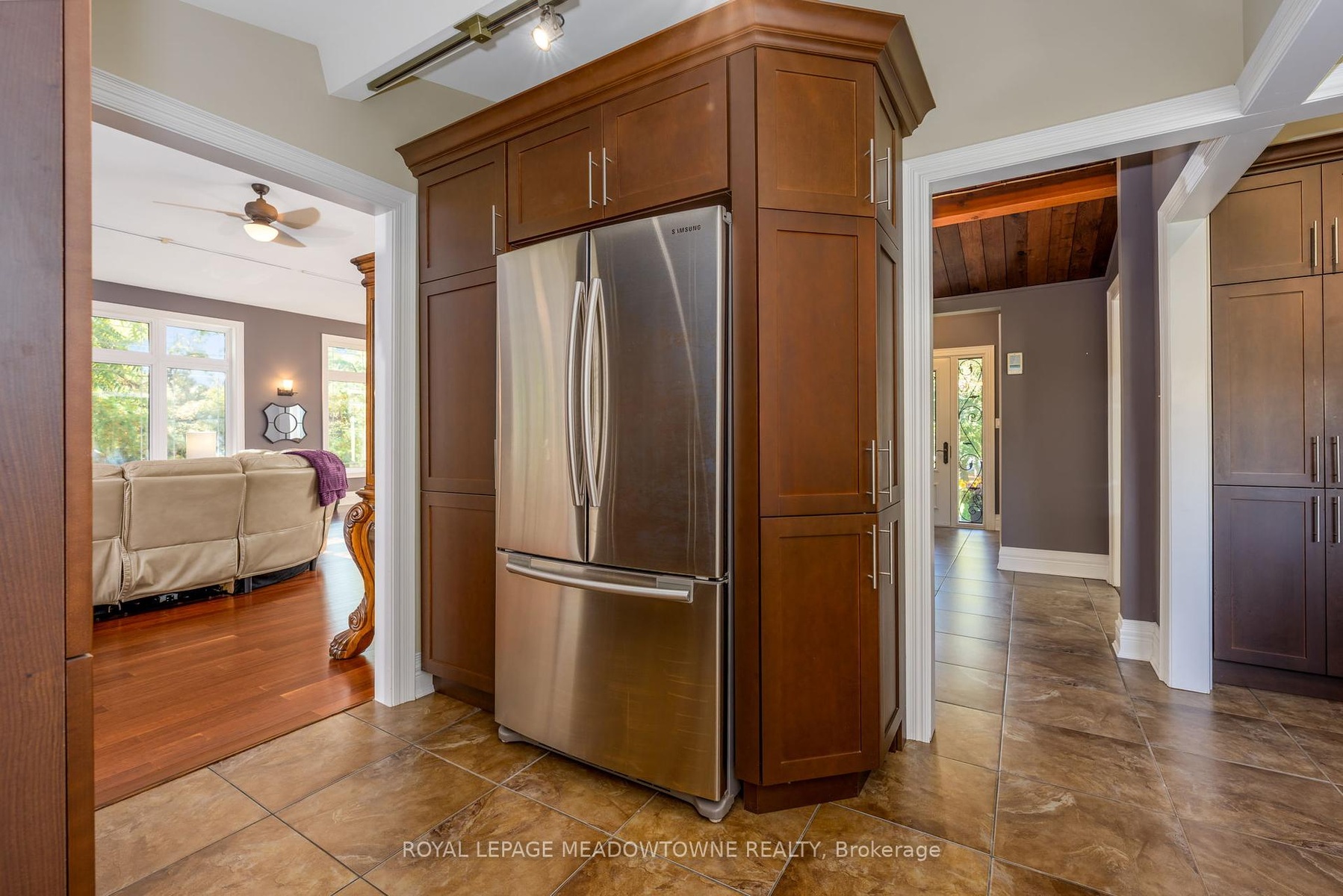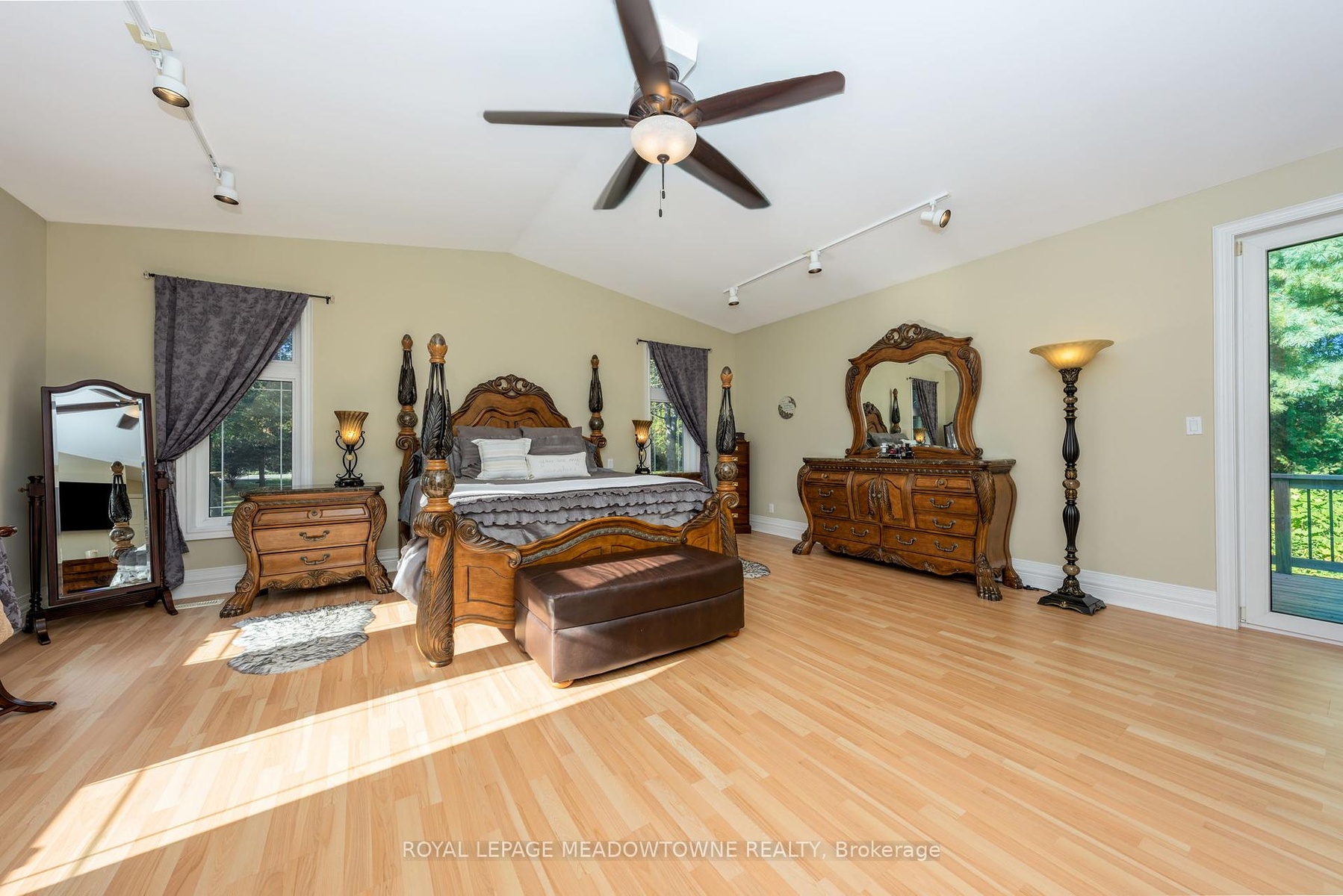 Welcome to this incredible rural property in Acton! Set on 1.66 private acres, this beautifully finished 4+1 bedroom, 3 bathroom custom home offers privacy, space, and versatility. A canopy of mature trees and a circular driveway with tons of frontage lead you to the home. Along with a built-in 3-car garage, theres a large detached 30x40ft workshop/garage perfect for extra vehicles, storage, or hobbies. The great room boasts vaulted ceilings, hardwood floors, and a wood-burning fireplace with limestone mantel, framed by triple-paned windows overlooking the serene landscape. A bright formal living room, also with in-ceiling speakers, offers another gathering space surrounded by windows. The updated kitchen features a sit-up island, stainless steel appliances, tile backsplash, and plenty of cabinetry. Off the kitchen, a laundry/2nd kitchen includes an additional stove, wall oven, stovetop, dishwasher, and walk-out to the backyard. In total, the home offers 3 stoves, 2 stovetops, and multiple walk-outsfrom the primary suite, the second kitchen, rear entry to the detached garage, and front door. The primary suite addition is a private retreat with vaulted ceiling, laminate floors, walk-out deck, electric fireplace, and access to an updated 4pc bathroom with glass shower. Bedrooms 2 and 3 are spacious with wood-beamed ceilings and large windows, while the 4th bedroom is currently set as a dressing room accessible from the primary. The finished basement with 2 separate staircases and its own entrance includes a rec room, bedroom, updated bathroom, storage, and flex spacesideal for multi-generational living. Outdoors, enjoy a concrete patio with outdoor kitchen/BBQ, double gazebo, and hot tub, plus a large barn (as-is) and open green space. With 6 in wall/ceiling speakers and 3 wood-burning fireplaces + 1 electric, this home blends warmth, character, and function. All of this with the convenience of nearby amenitiesGO Train, schools, shopping, parks, restaurants, and golf.