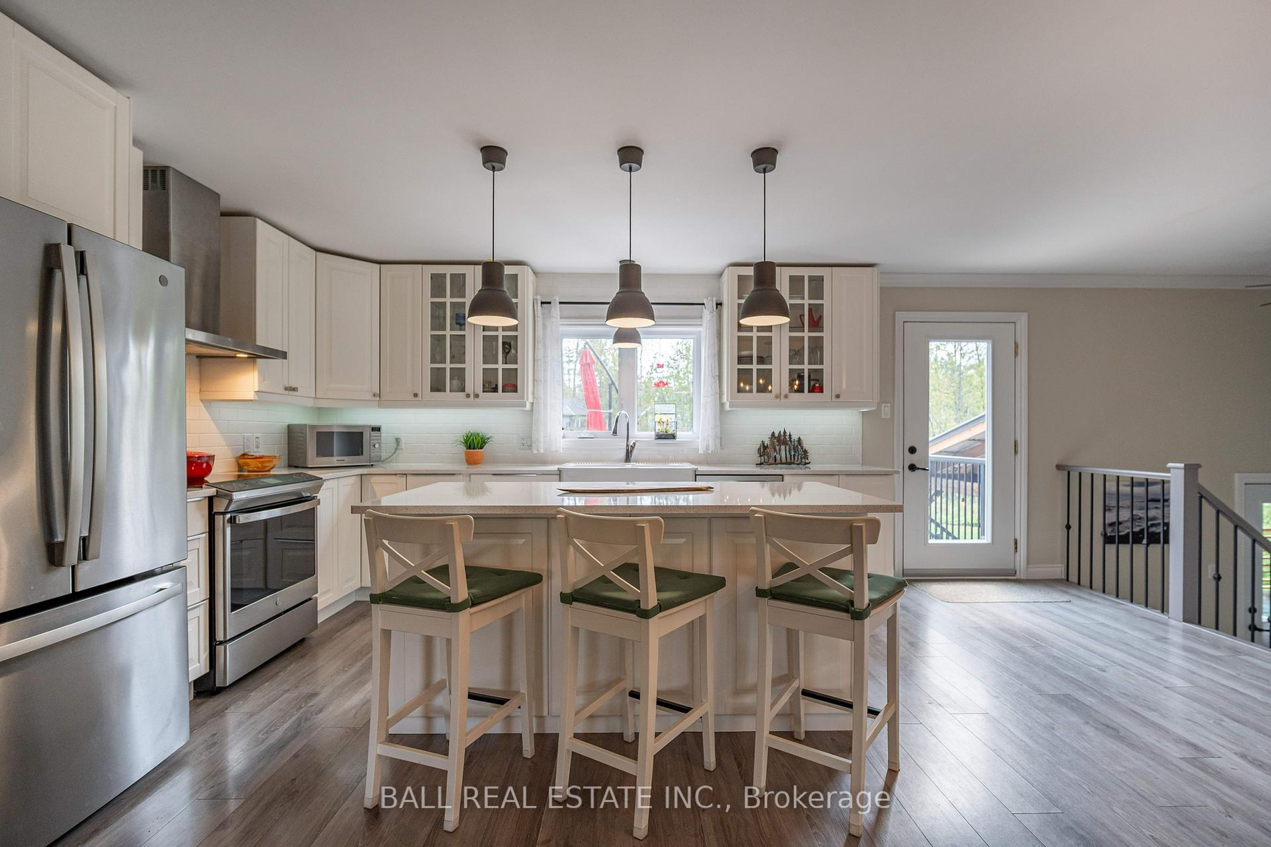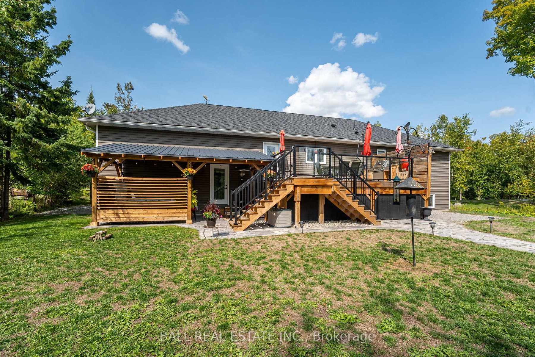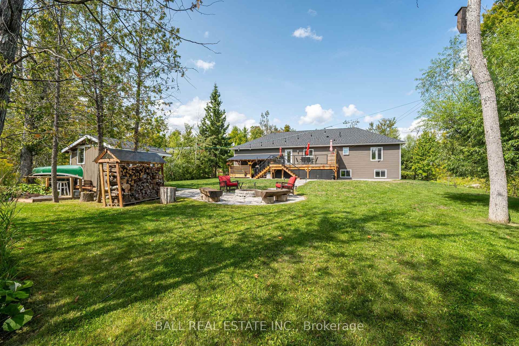 Stunning Custom Bungalow in Buckhorn Lakes Estates. Enjoy Waterfront Living with your very own dock on the Trent Severn Waterway! This beautifully crafted custom bungalow offers the perfect blend of luxury, comfort, and functionality and it's completely move-in ready. Step inside to a bright, open-concept living space designed for entertaining. The heart of the home features a chefs dream kitchen with quartz countertops, a farmhouse sink, soft-close cabinetry, brand new appliances and a spacious island with seating. Just off the kitchen, enjoy seamless indoor-outdoor living with upper deck and lower patio overlooking the private backyard ideal for summer BBQs and gatherings. Down the hall, you'll find a four-piece bathroom, three generously sized bedrooms, including a primary suite with a walk-in closet and en-suite bath. The laundry room is thoughtfully designed with vaulted ceilings, natural light, and ample storage. The fully finished basement expands your living space with full-height ceilings, large windows, a third bathroom with heated floors & shower, and a fourth bedroom perfect for guest & office. There's also a utility room, under-stair storage, and electric fireplace with built-in wiring for a mounted TV, making it the ultimate family hangout zone. Many updates including new Generac, deck extension, flag stone walkway and firepit, stamped concrete patio, carpet, electric fireplace and more! Outside, the backyard is a true retreat featuring a wood-heated she-shed and a new covered stamped concrete patio with hot tub. Large double garage with propane heat and upper storage level. Plus, enjoy access to Buckhorn Lake through the community association, complete with a dock for your watercraft & gear and access to a private boat launch and picnic pavilion. This home offers all the perks of waterfront living. A must-see property that truly has it all!