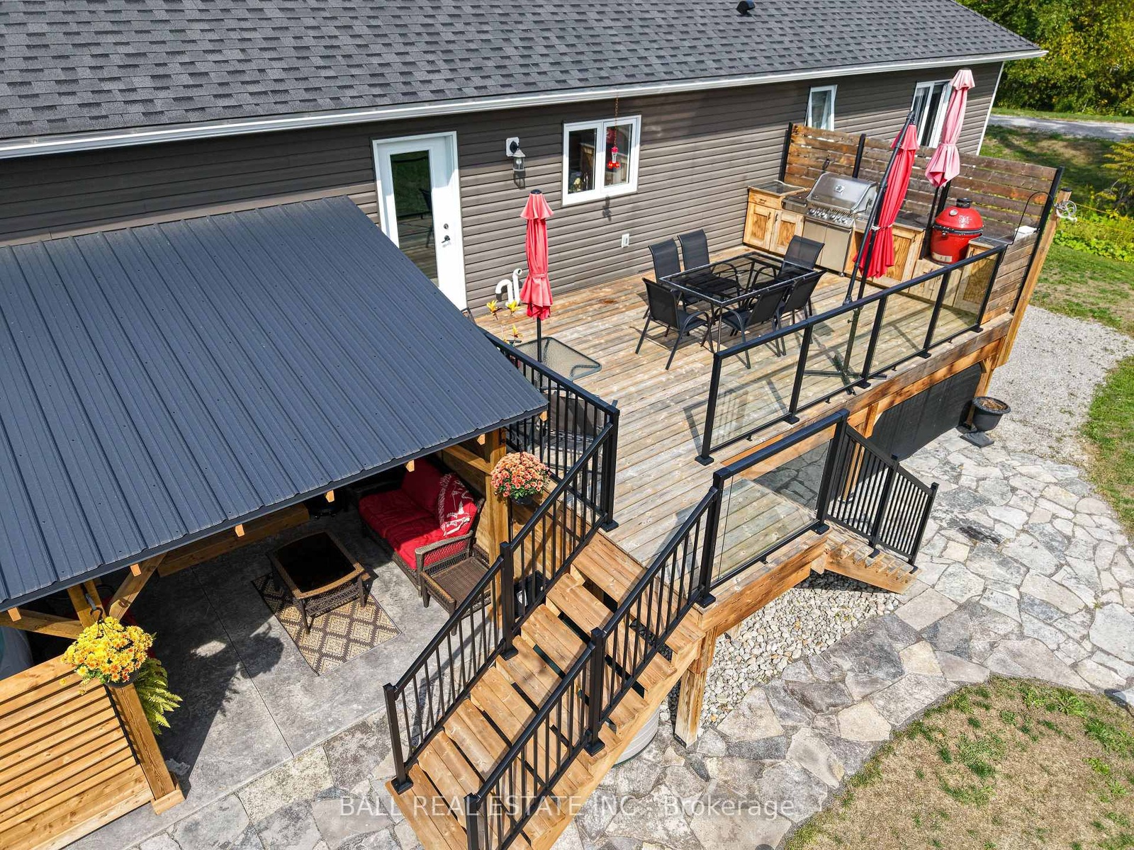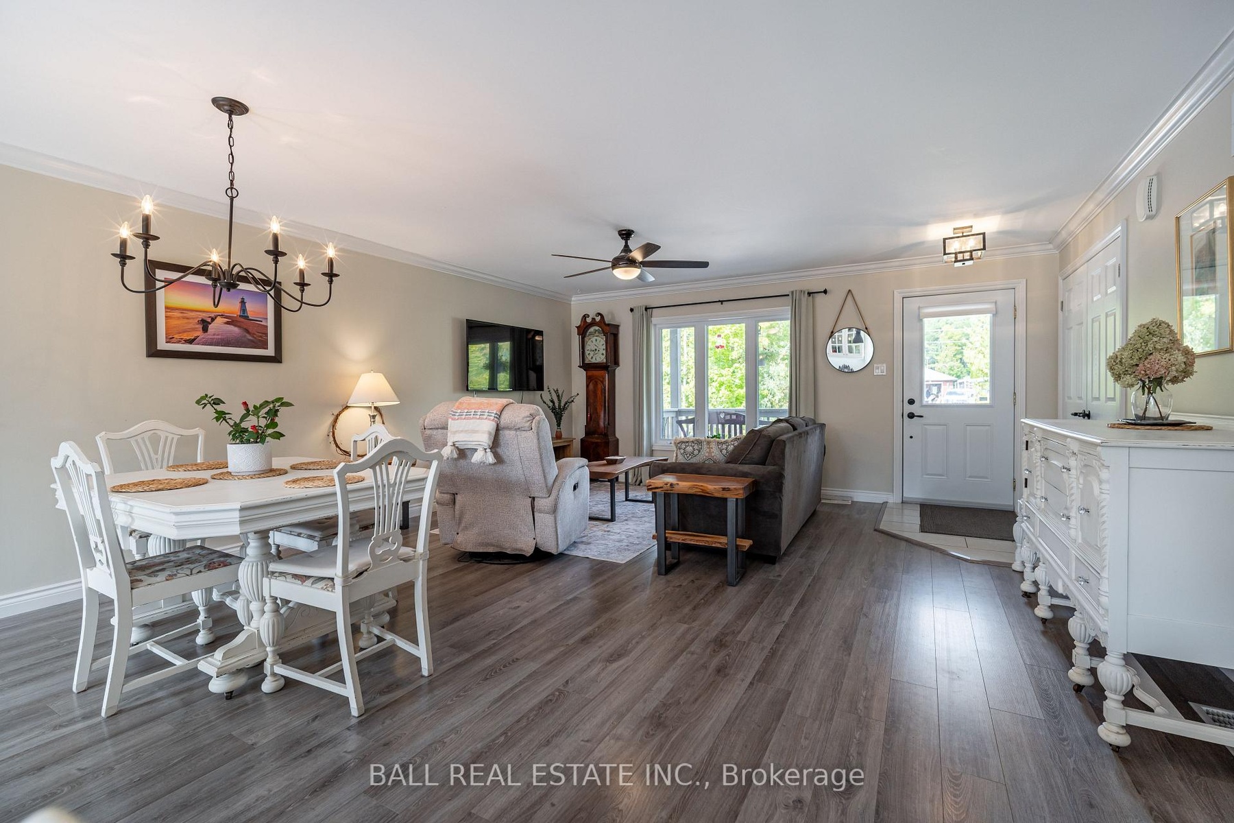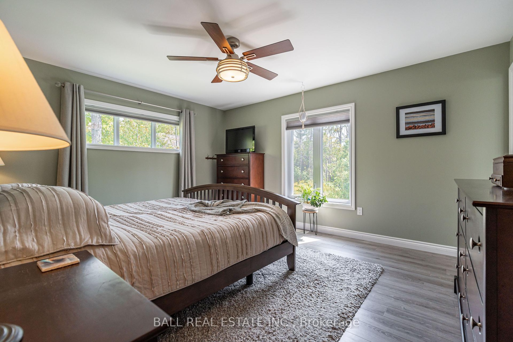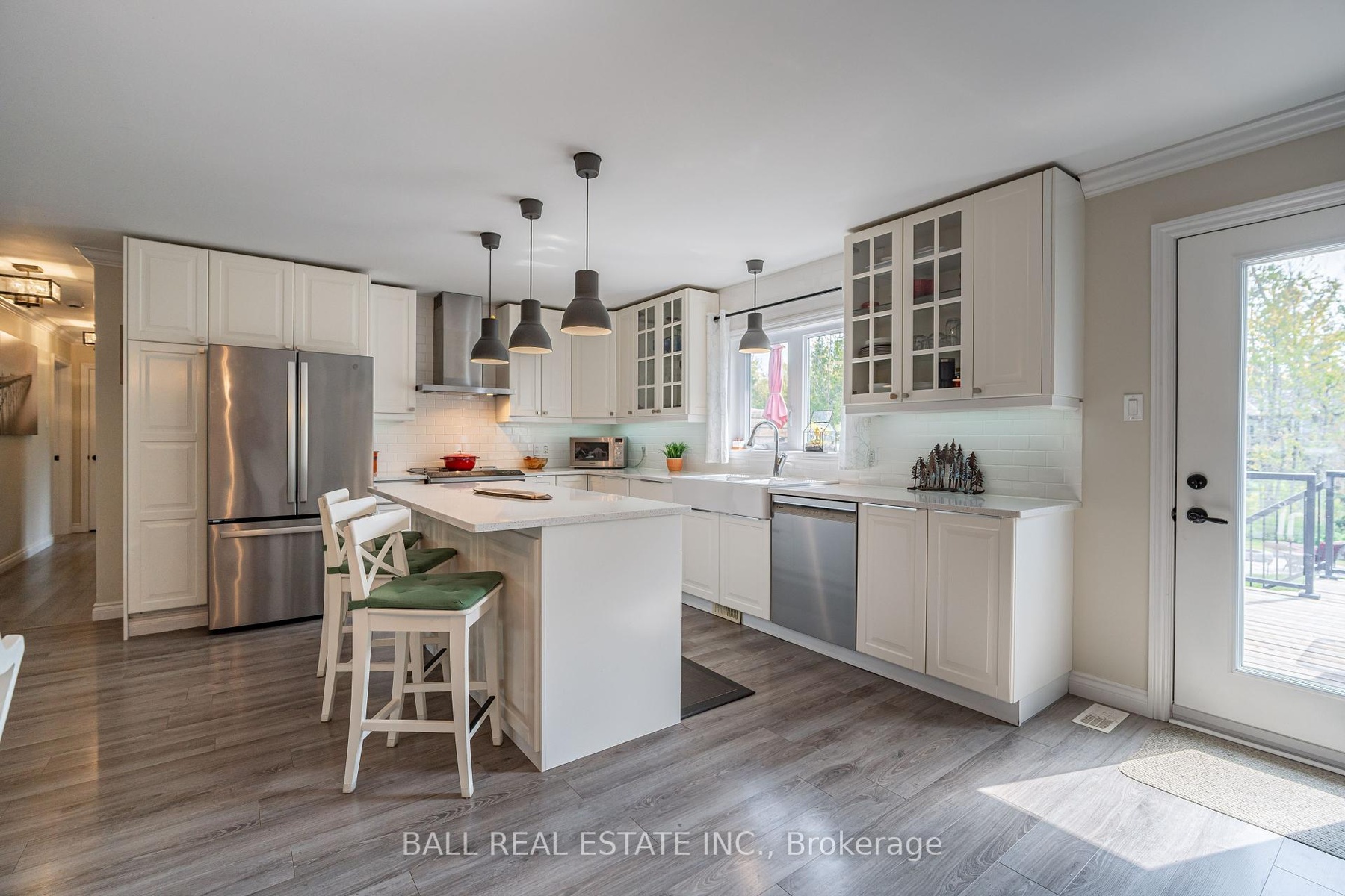 Stunning Custom Bungalow in Buckhorn Lakes Estates. Enjoy Waterfront Living with your very own dock on the Trent Severn Waterway! This beautifully crafted custom bungalow offers the perfect blend of luxury, comfort, and functionality and it's completely move-in ready. Step inside to a bright, open-concept living space designed for entertaining. The heart of the home features a chefs dream kitchen with quartz countertops, a farmhouse sink, soft-close cabinetry, brand new appliances and a spacious island with seating. Just off the kitchen, enjoy seamless indoor-outdoor living with upper deck and lower patio overlooking the private backyard ideal for summer BBQs and gatherings. Down the hall, you'll find a four-piece bathroom, three generously sized bedrooms, including a primary suite with a walk-in closet and en-suite bath. The laundry room is thoughtfully designed with vaulted ceilings, natural light, and ample storage. The fully finished basement expands your living space with full-height ceilings, large windows, a third bathroom with heated floors & shower, and a fourth bedroom perfect for guest & office. There's also a utility room, under-stair storage, and electric fireplace with built-in wiring for a mounted TV, making it the ultimate family hangout zone. Many updates including new Generac, deck extension, flag stone walkway and firepit, stamped concrete patio, carpet, electric fireplace and more! Outside, the backyard is a true retreat featuring a wood-heated she-shed and a new covered stamped concrete patio with hot tub. Large double garage with propane heat and upper storage level. Plus, enjoy access to Buckhorn Lake through the community association, complete with a dock for your watercraft & gear and access to a private boat launch and picnic pavilion. This home offers all the perks of waterfront living. A must-see property that truly has it all!