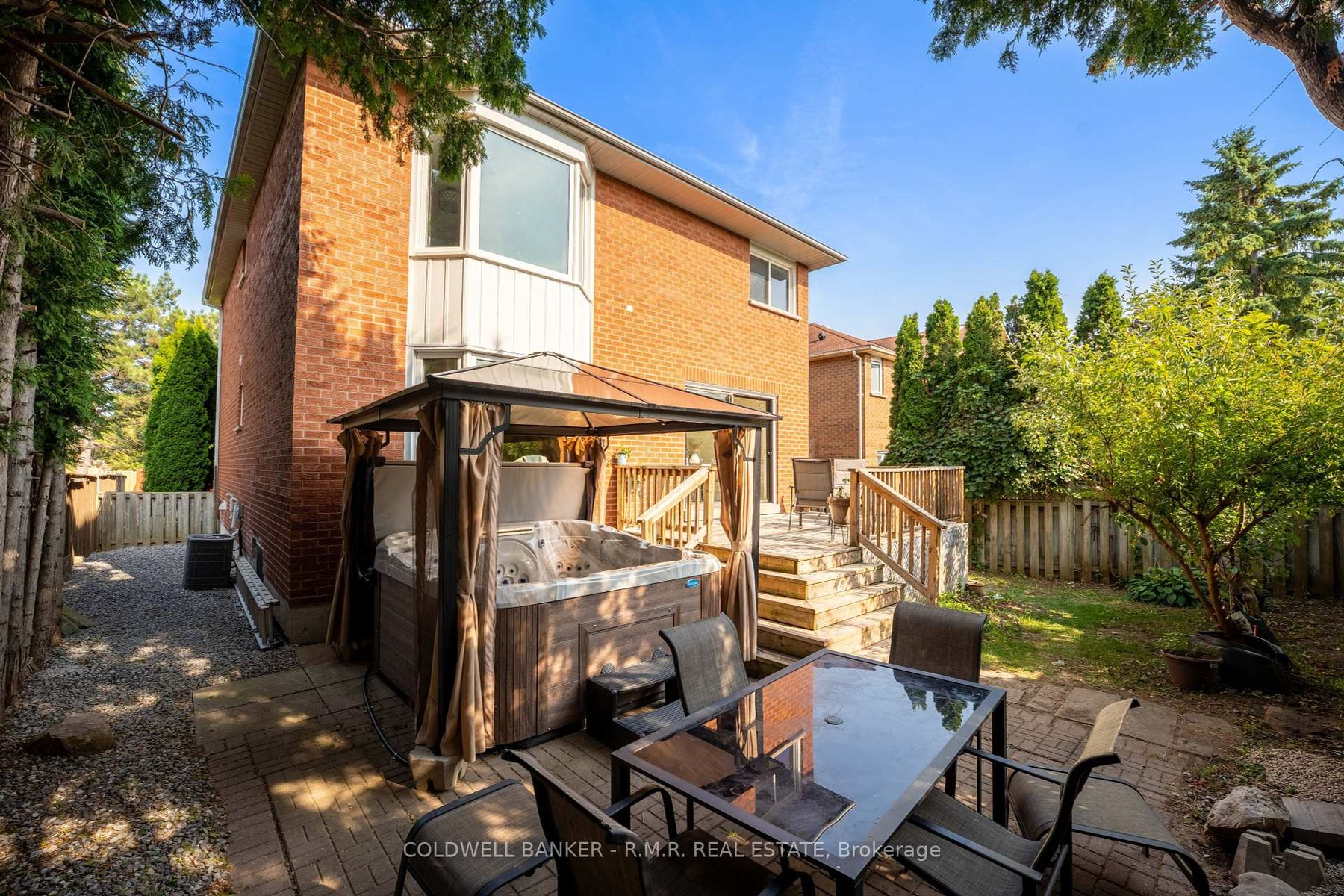 Don't miss the chance to call 1828 Westcreek Drive home, a well maintained property offering over 4,000 sqft of finished living space, tucked away in Pickering's highly coveted Highbush community. This 4+3 bedroom, 4 bathroom residence is ideally positioned within walking distance to Westcreek Public School, parks, and scenic trails, while bordering Toronto for an easy commute. Perfectly situated in one of Pickering's most desirable neighbourhoods, it blends sophistication, functionality, and convenience for todays modern family. Beautiful landscaping, interlocking pathways, and updated garage doors create a warm welcome to the home. Inside, natural light pours through a bright and inviting layout designed for both comfort and style. The main floor features elegant hardwood floors, pot lights, California shutters, and a vaulted-ceiling family room with fireplace that sets the stage for memorable gatherings. The kitchen is equipped with refreshed cabinetry, granite countertops, stainless steel appliances, and a generous breakfast area with walkout to the backyard deck. Outside, a private retreat awaits with a gazebo and hot tub, perfect for entertaining or relaxing year-round. Upstairs, four spacious bedrooms provide plenty of room for the whole family. The primary suite offers a walk-in closet and a spa-like ensuite with a soaker tub and glass shower, while the additional bedrooms are equally well-appointed. The fully finished legal three-bedroom basement in-law suite, completed with permits, offers incredible versatility. With its own kitchen, laundry, and private entrance, it is perfectly suited for multi-generational living or as an income-generating apartment. Notable updates add both comfort and value, including the high-efficiency Trane furnace (2018), a new 200-amp electrical panel (2021), additional attic insulation (2021), tankless hot water heater (2022), new kitchen cabinetry (2025), and hot tub (2023).